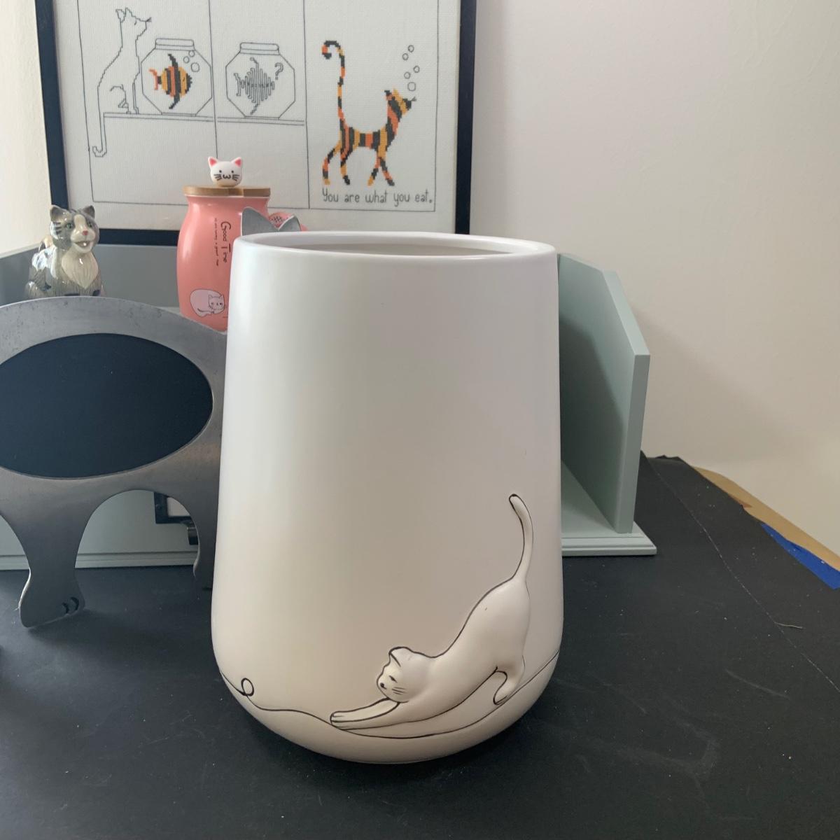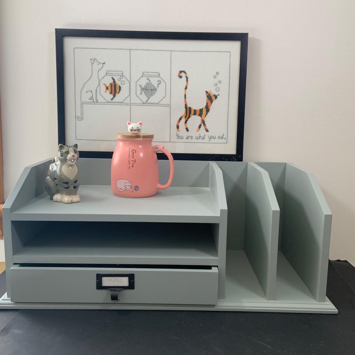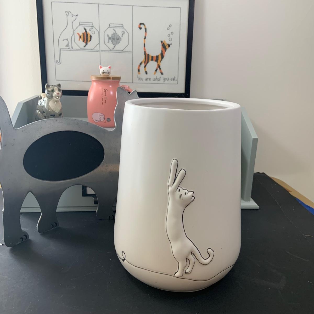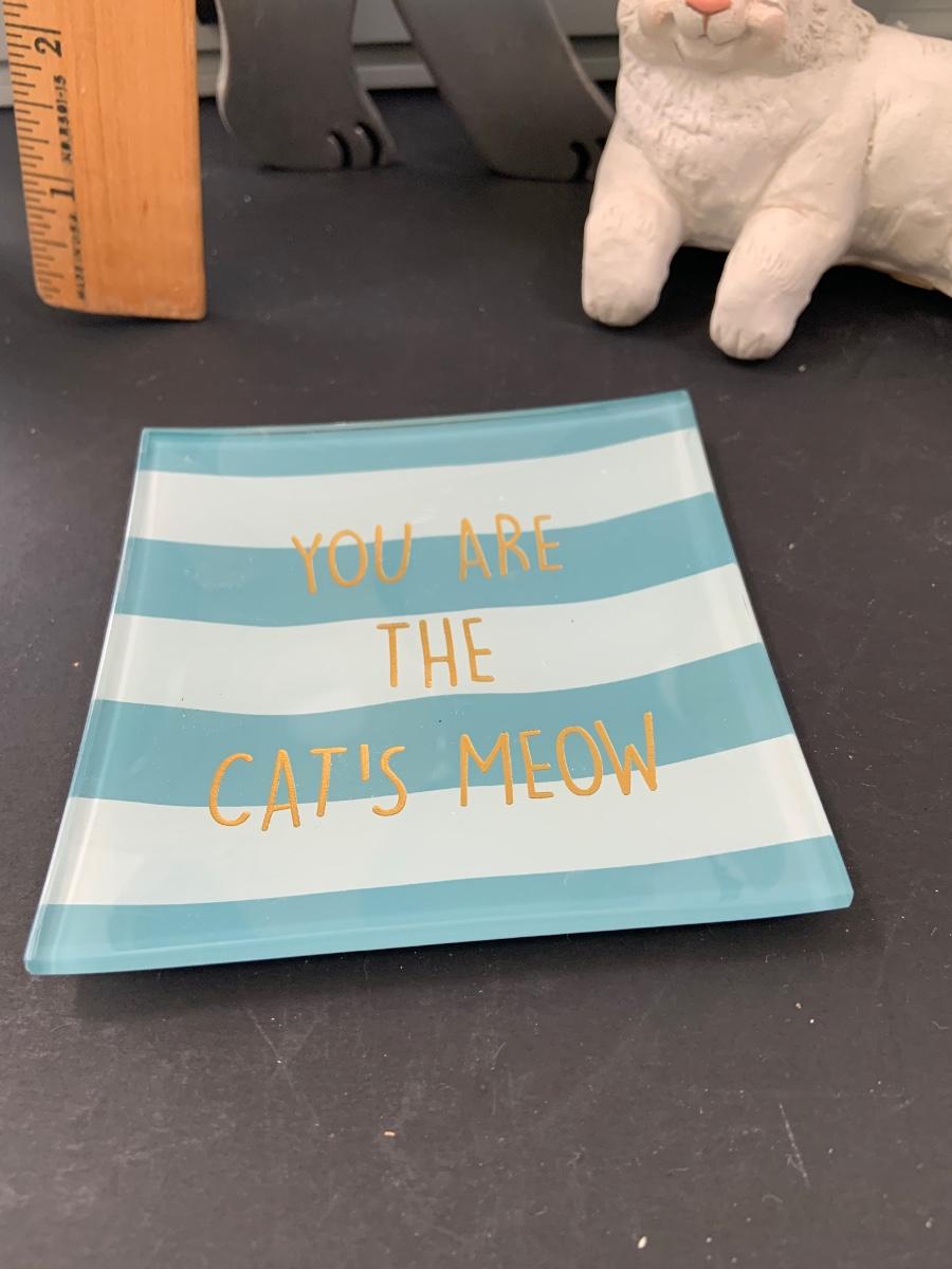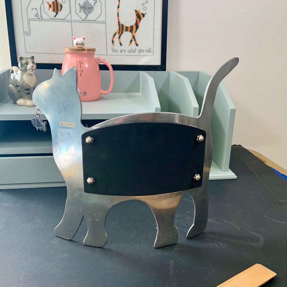 LOT 136: Cat Collection- Framed Cross-stitch, Office Decor, Figurines & More