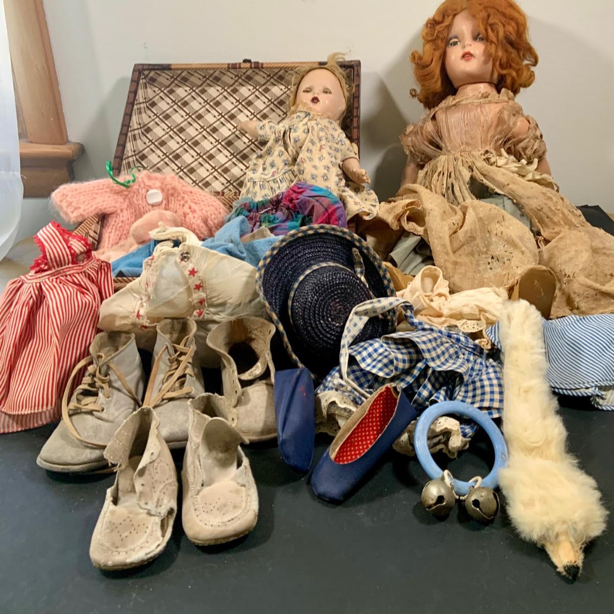 LOT 140: Antique / Vintage Dolls with Doll Clothes and Trunk