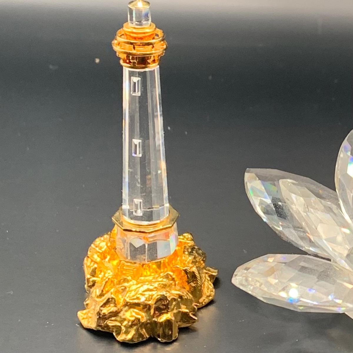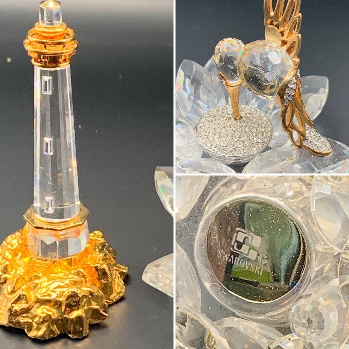 LOT:145: Swarovski Lighthouse and Hummingbird on a Flower- Both Pieces Need Repaired