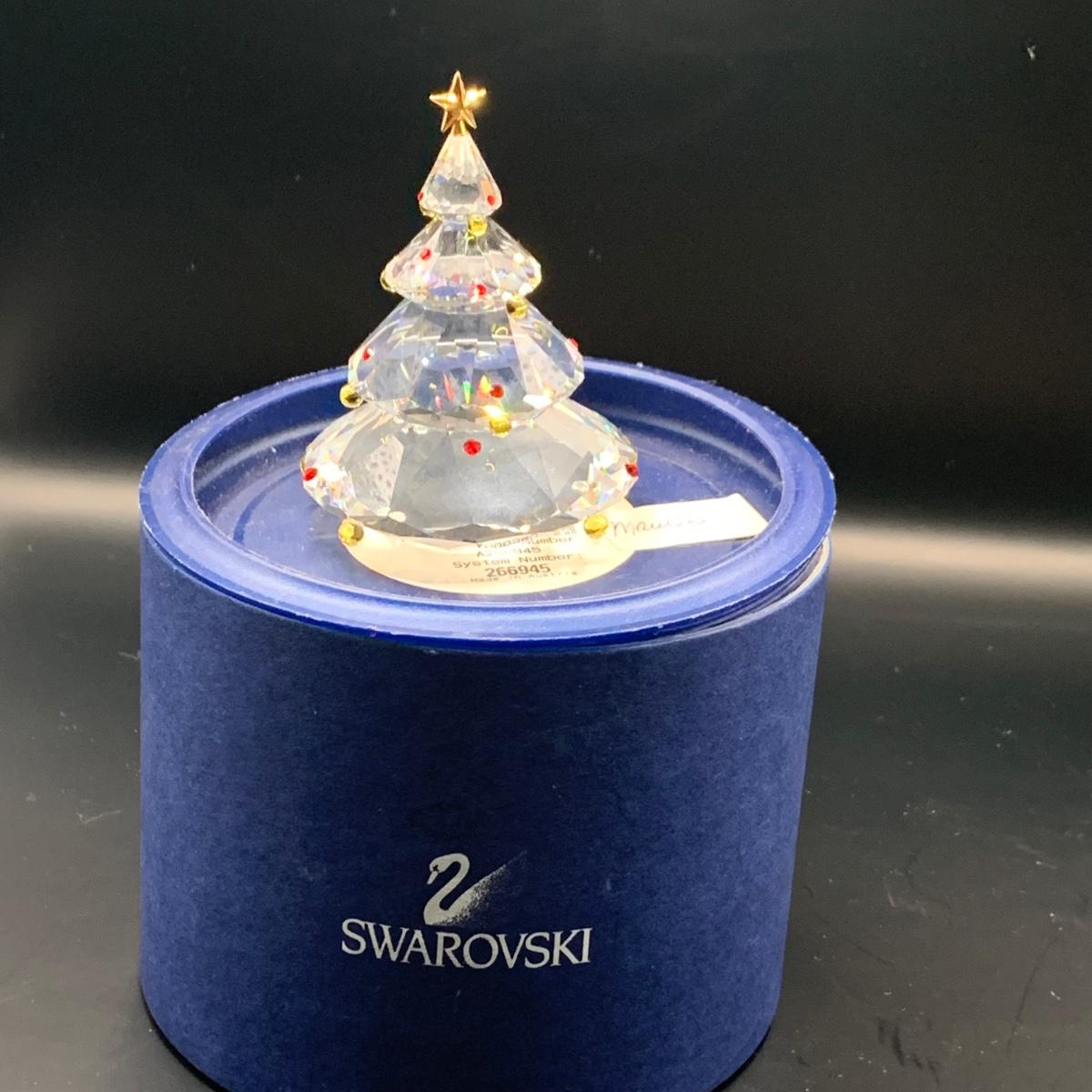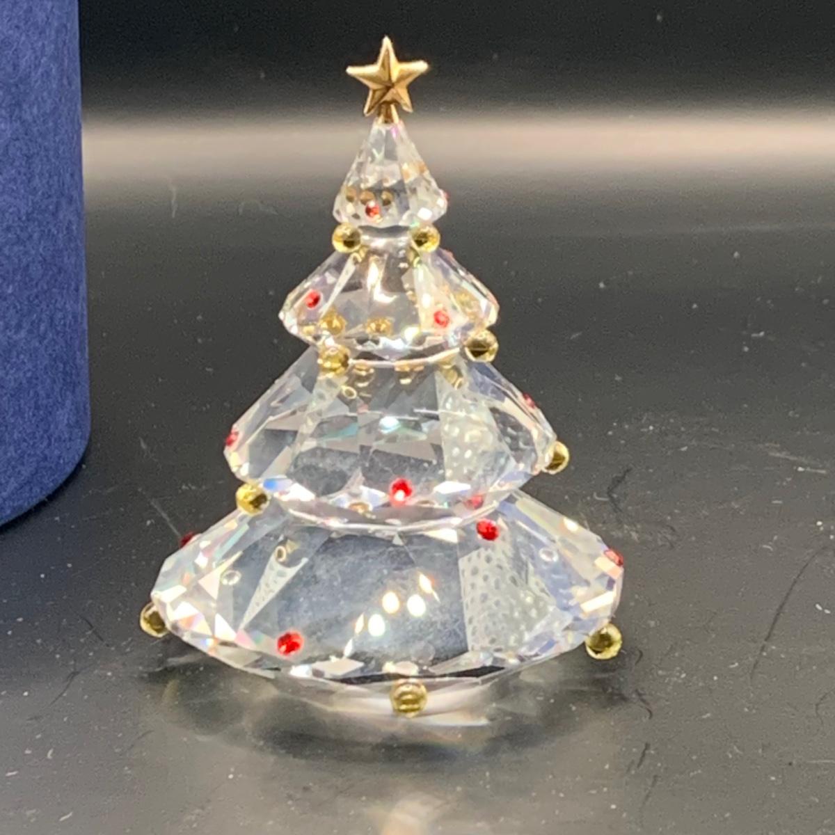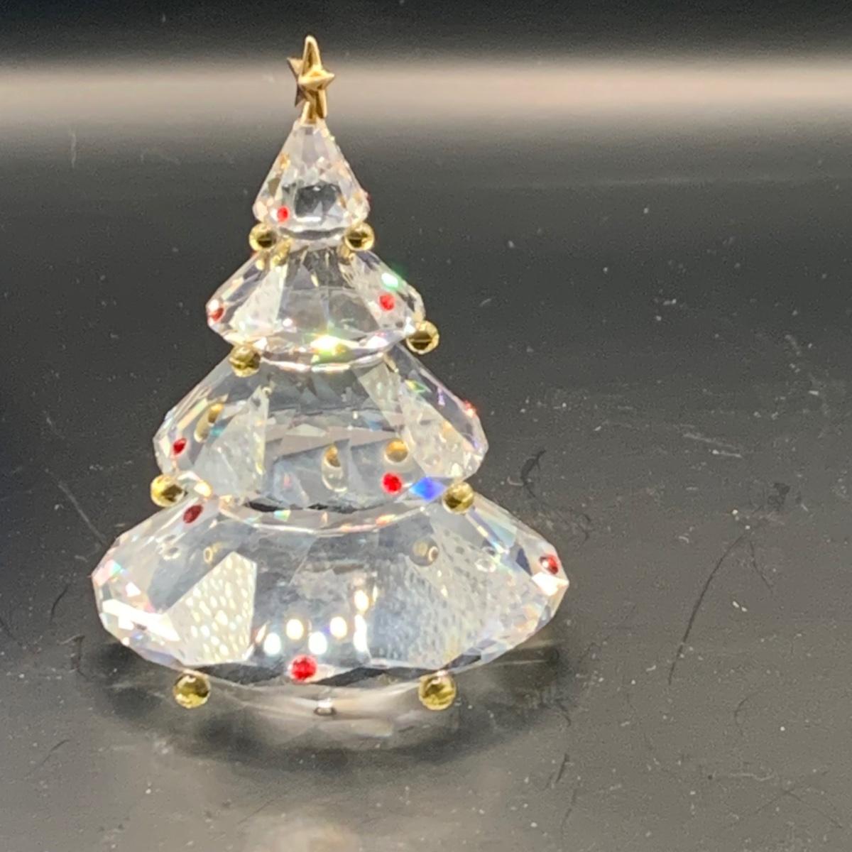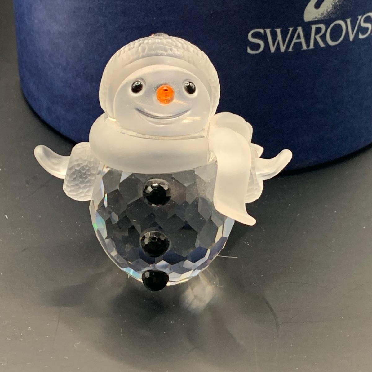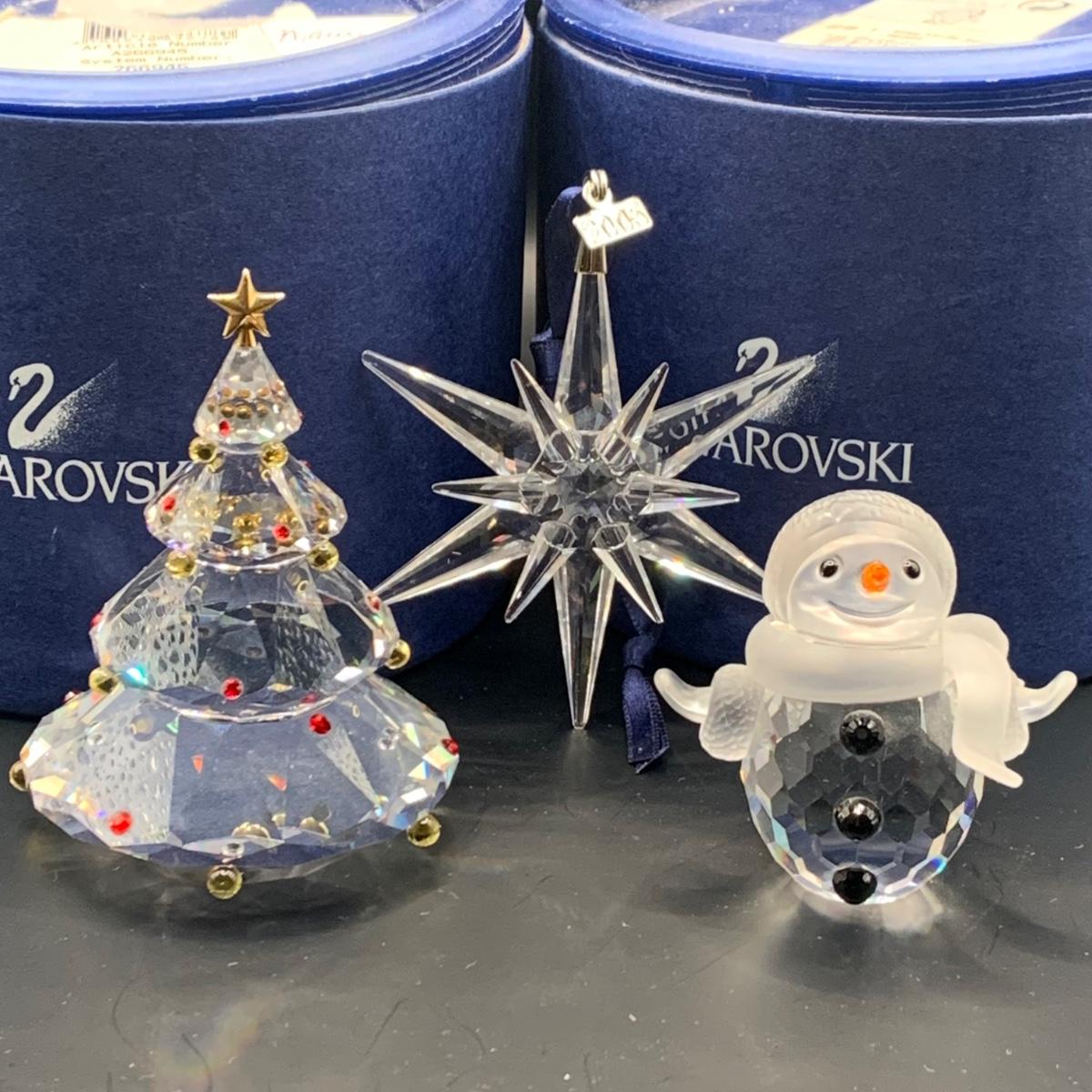 LOT:146: Swarovski Holiday Crystal Snowman and Tree with Boxes and a Crystal Snowflake Ornament