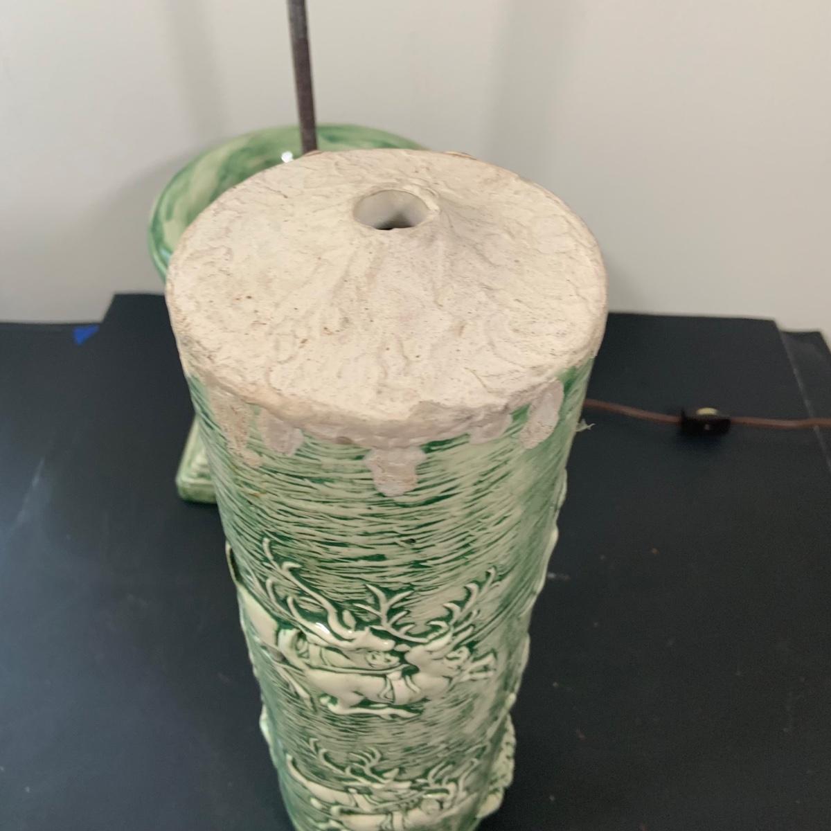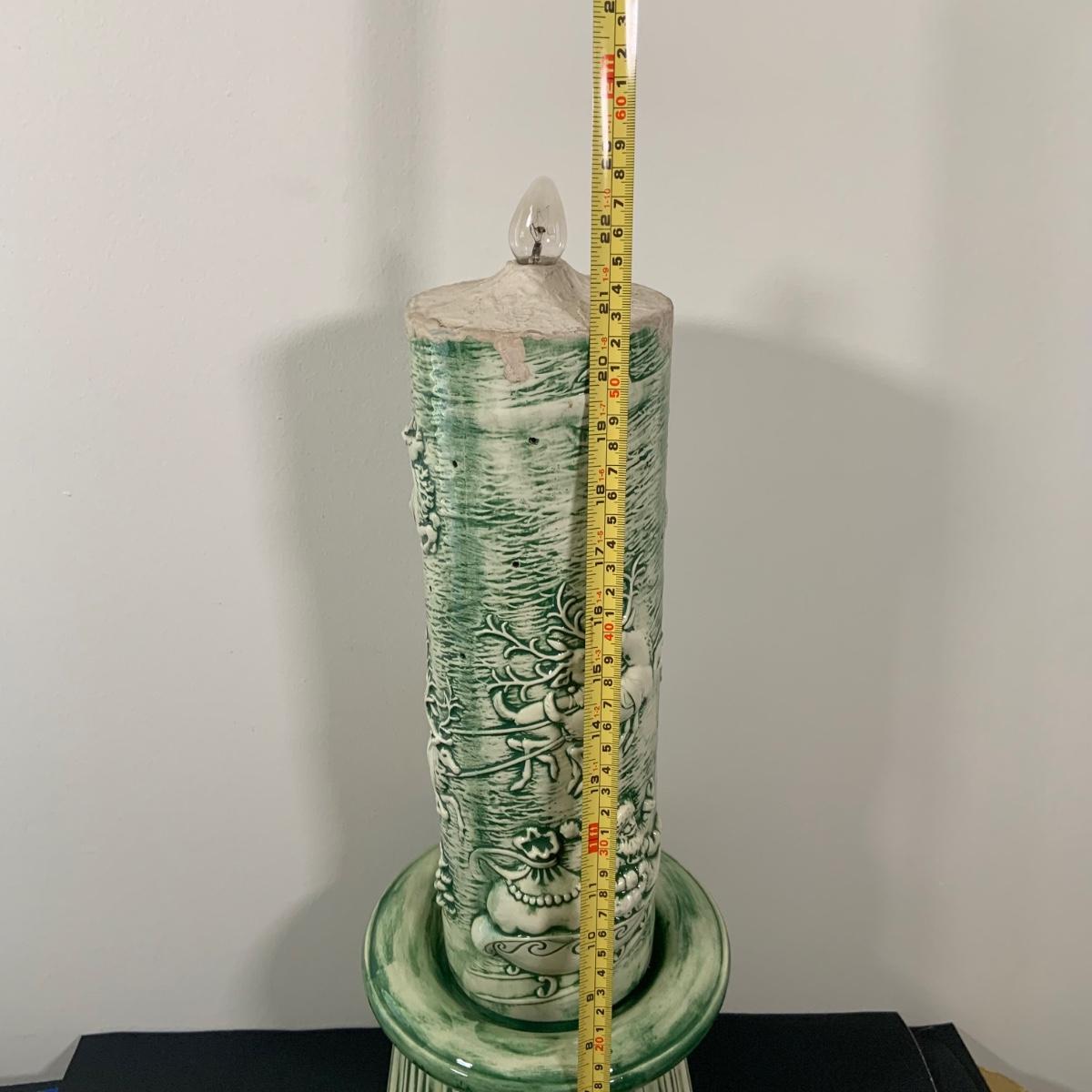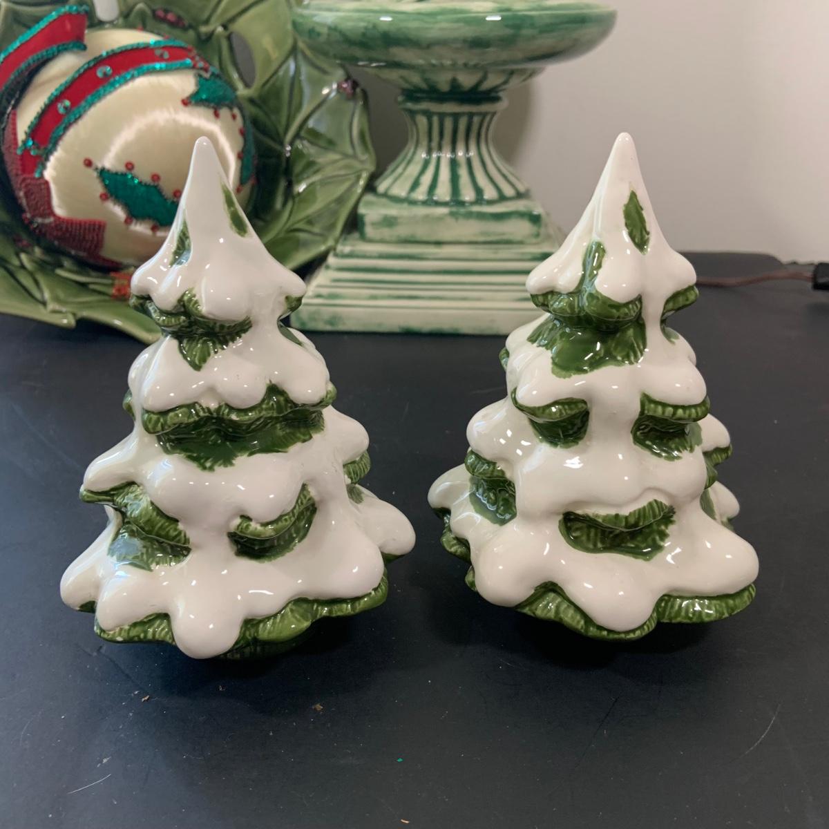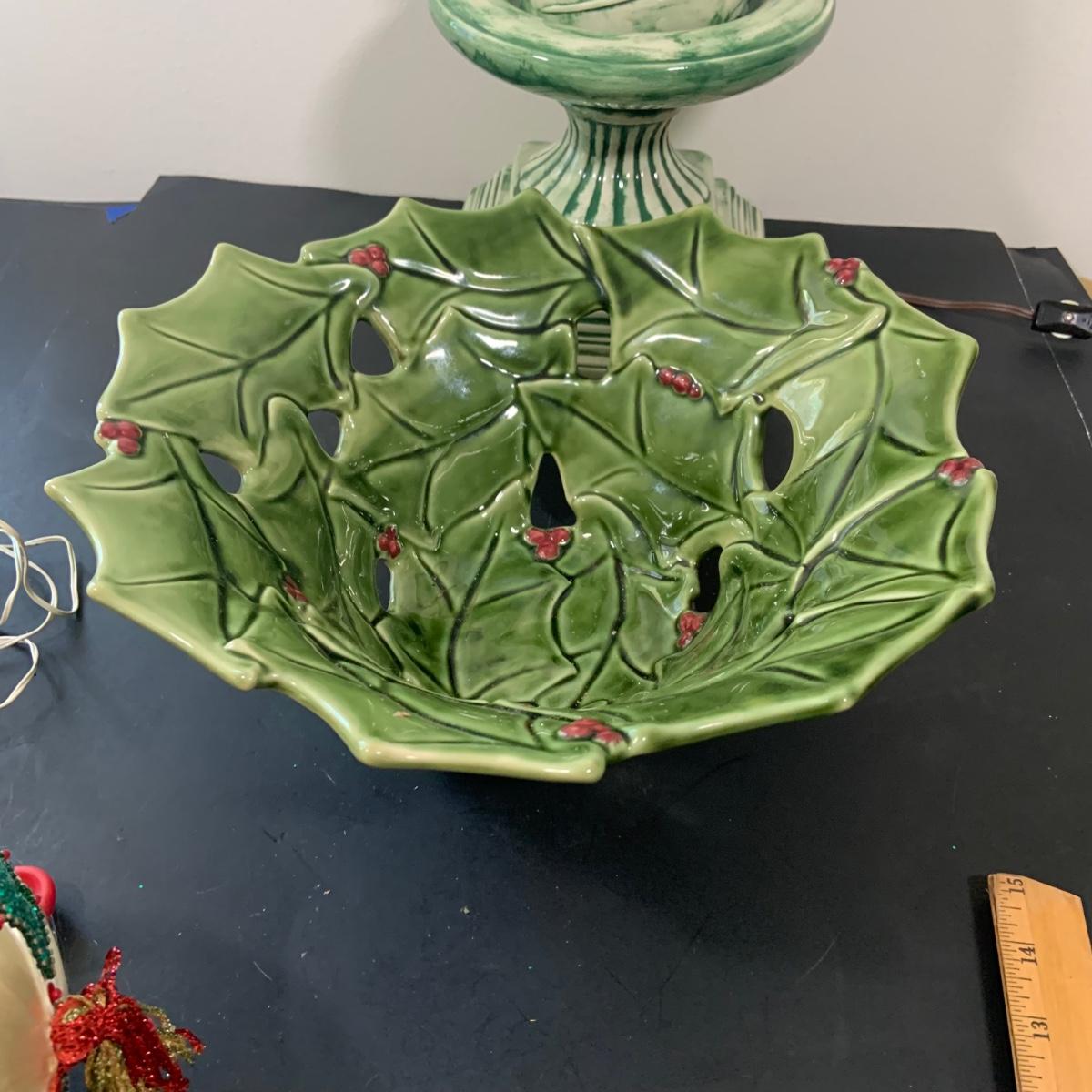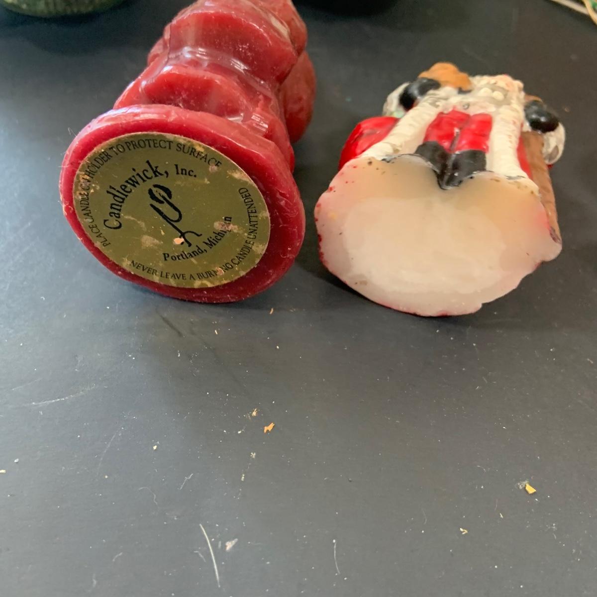 LOT:148: Collection of Vintage Christmas Decor and More Includng a Very Large Ceramic Alantic Mold Candle Lamp, Vintage Knee Hugger Elf, Santa Wax Candles Light-up Angel Tree Topper and More