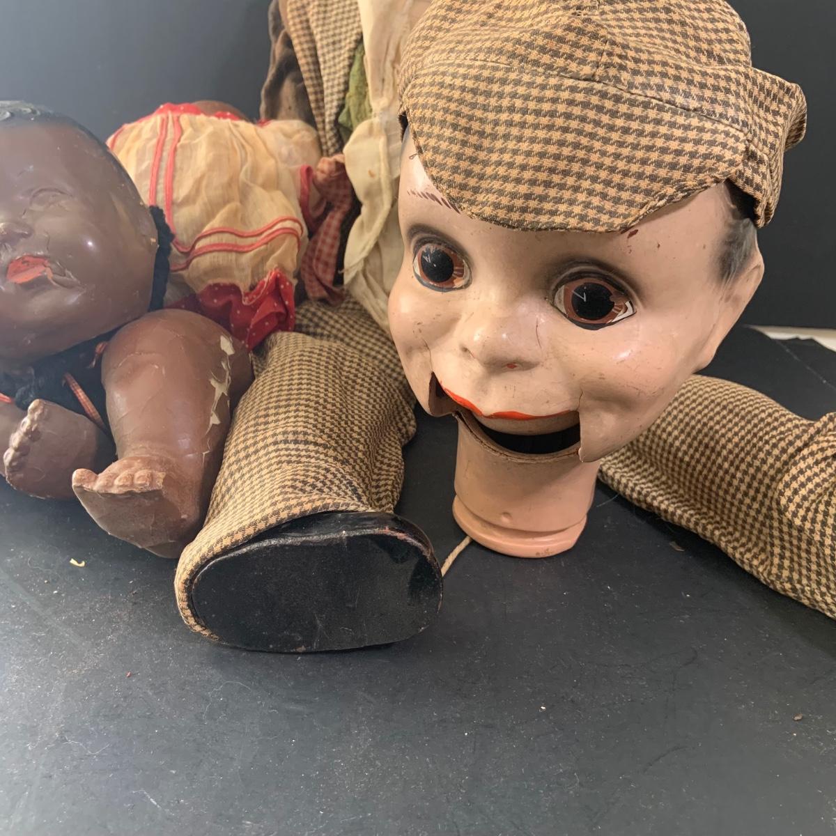 LOT152:: Vintage/Antique Dapper Dan Charlie McCarthy Vantriliquest Doll Filled with Saw Dust and a 1932 Black Patsy Composit Baby DollDoll
