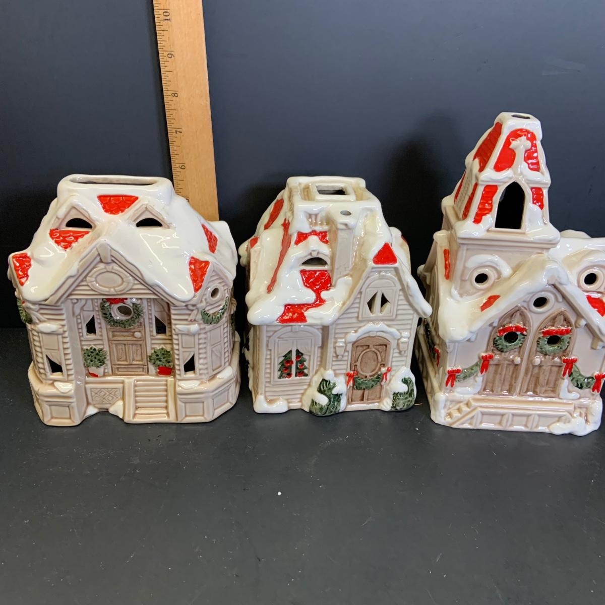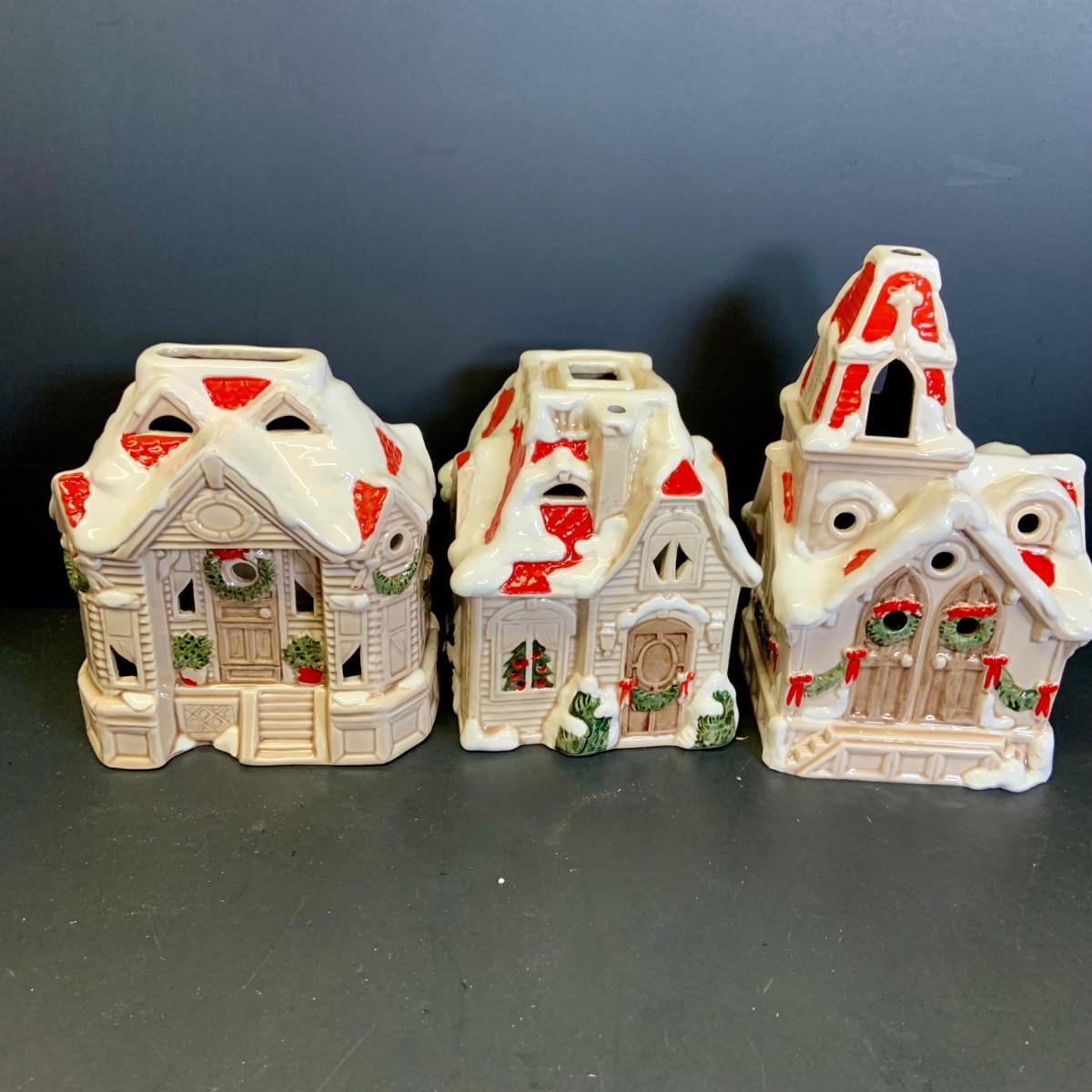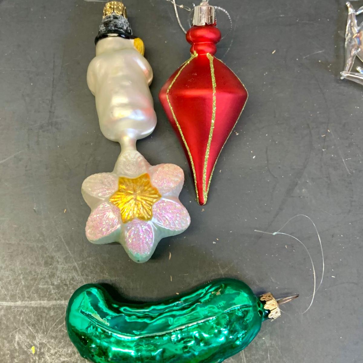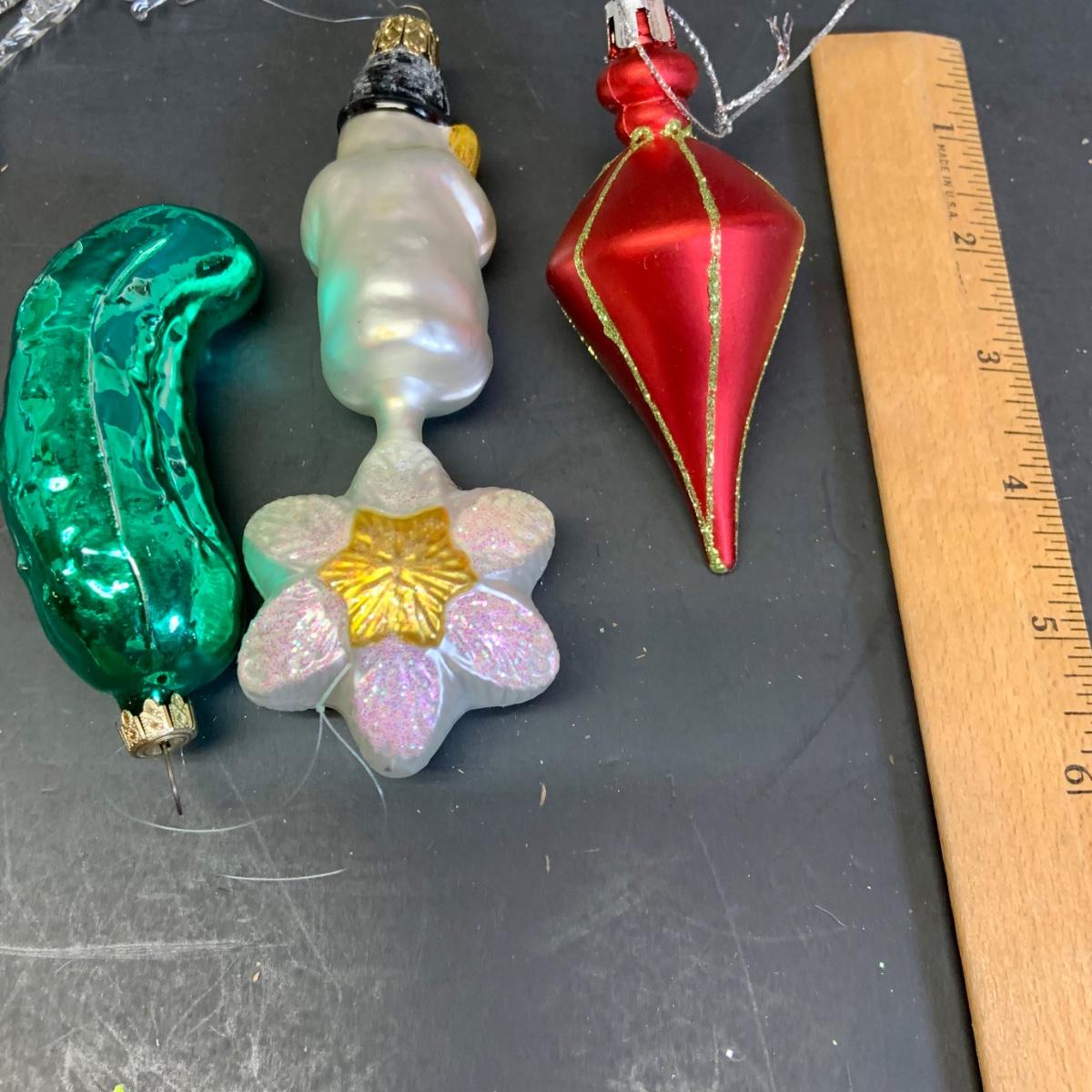 LOT:161: Byers Choice Santa Caroler, Fitz and Floyd Christmas House Candle Holder with Original Boxes, Gorham God in His Heaven Dolls Boxed Ornaments,and Mercury Glass Style Ornaments