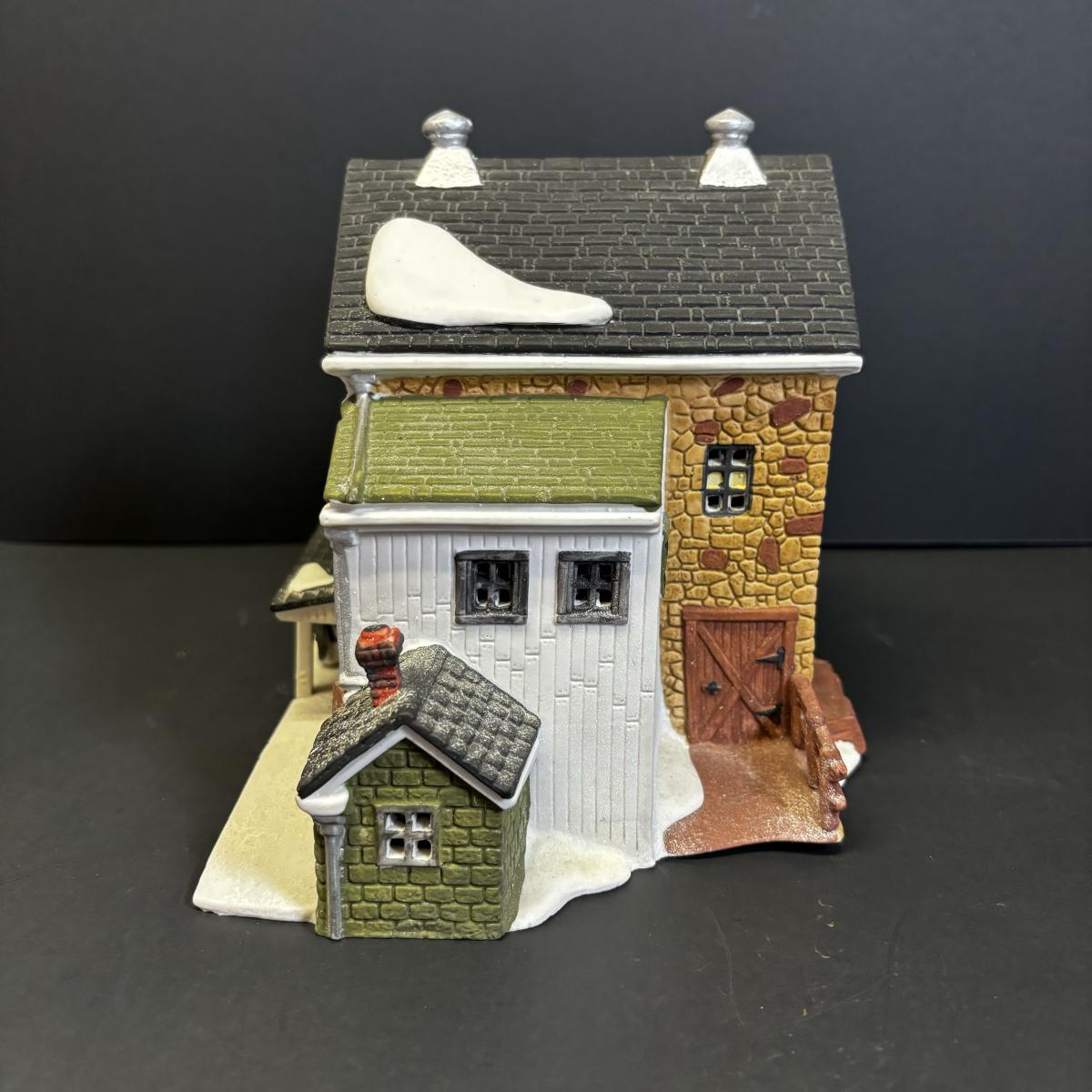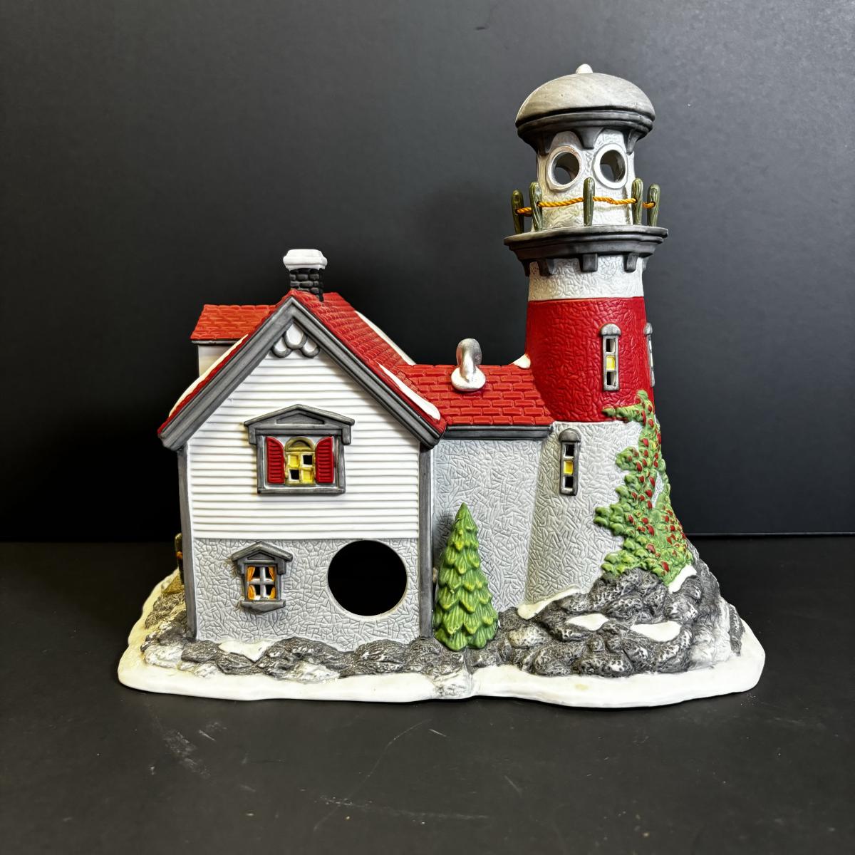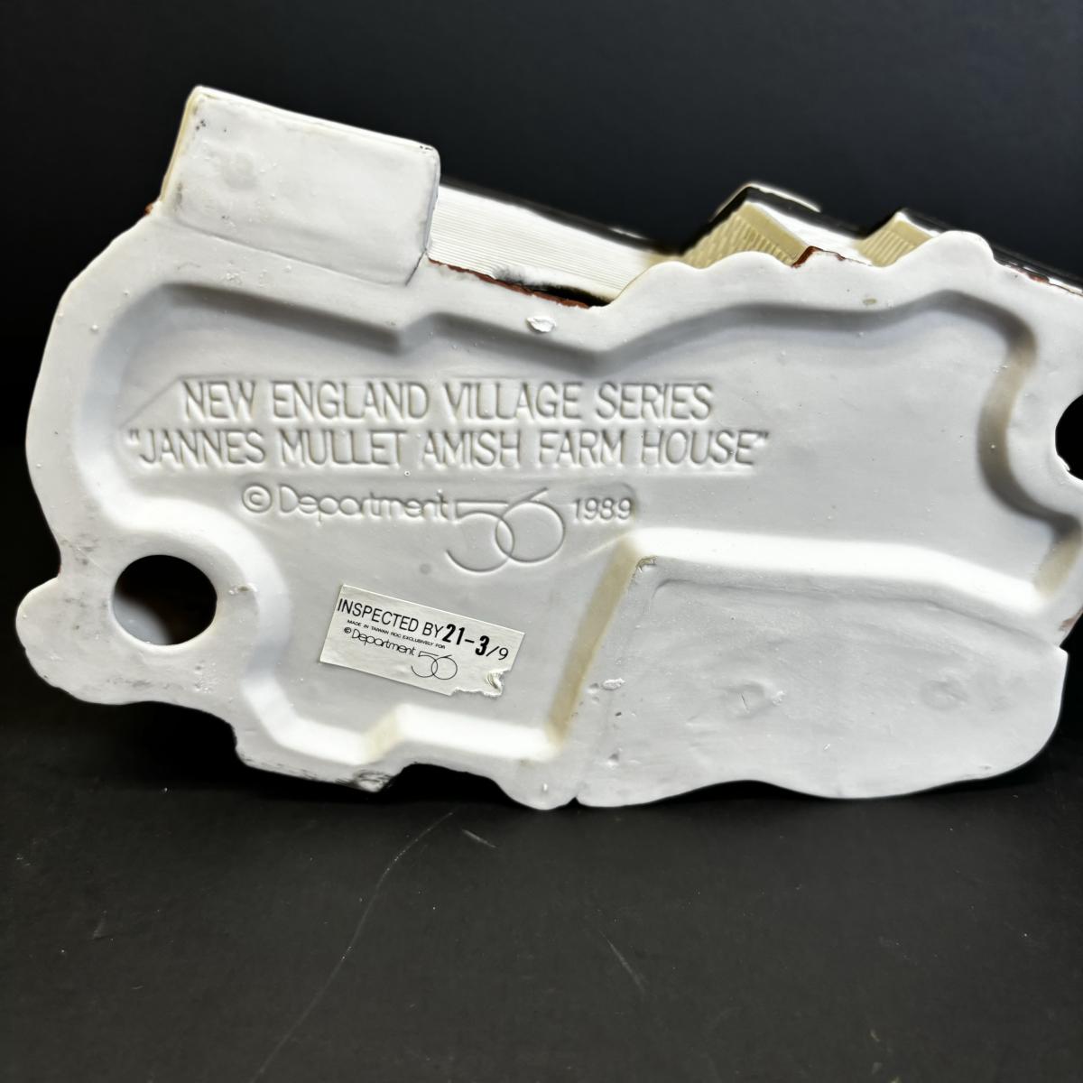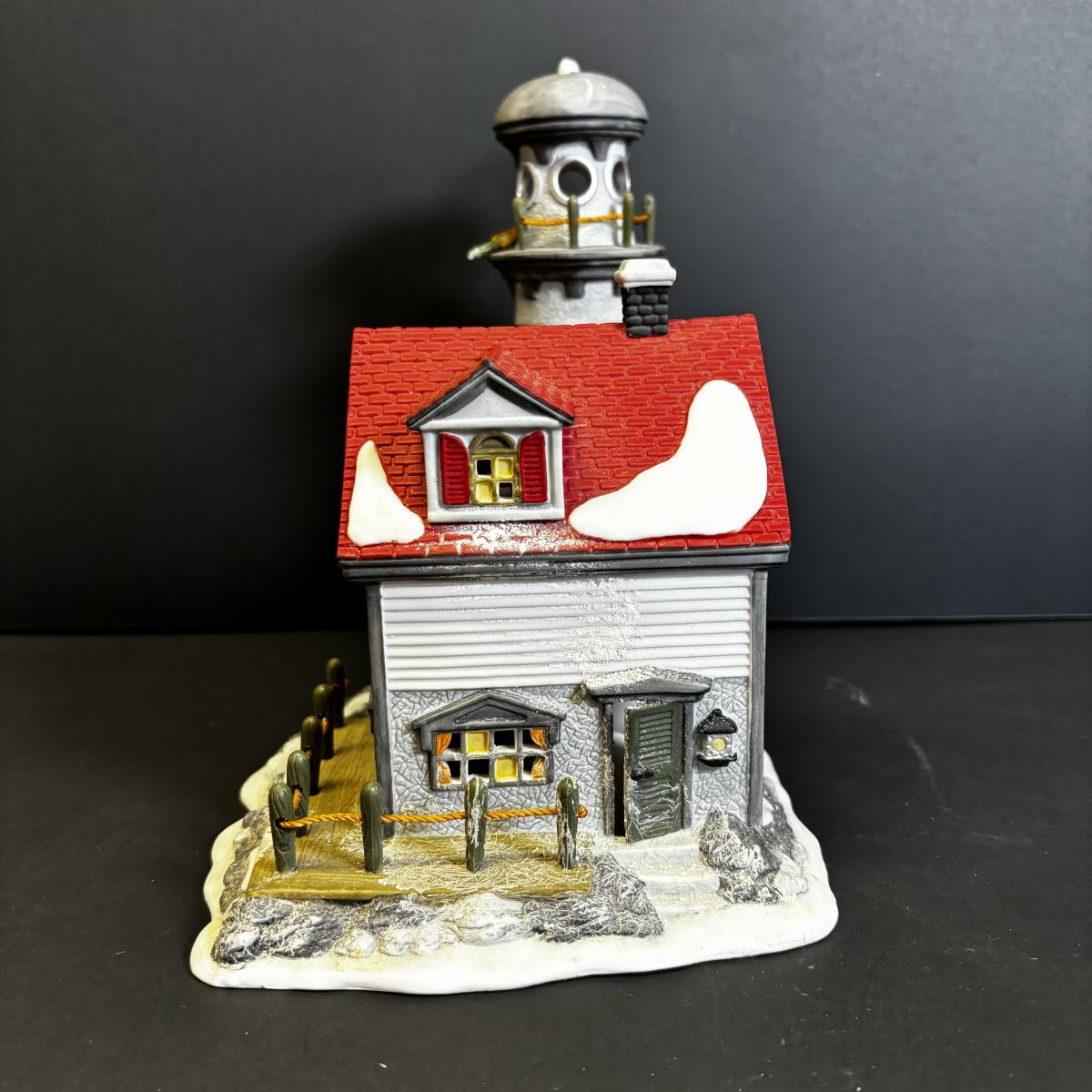 LOT 169: Vintage Department 56 New England Village Series Pigeonhead Lighthouse w/ Jannes Mullet Amish Farm House & Barn