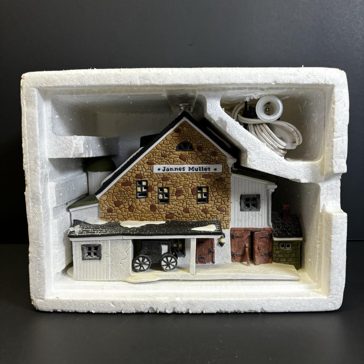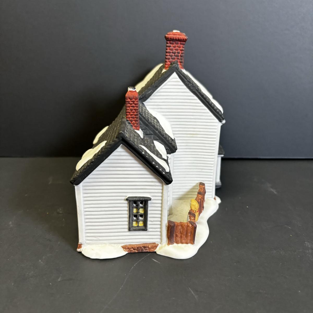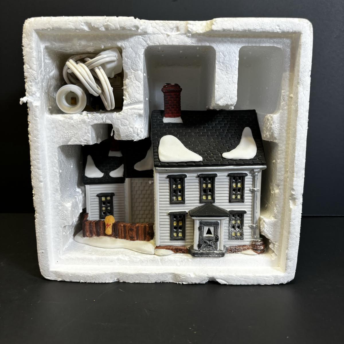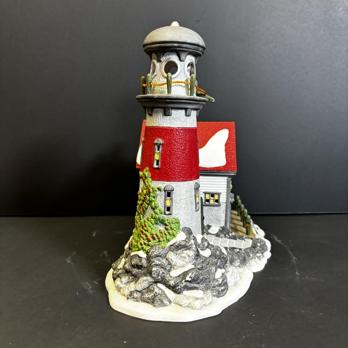 LOT 169: Vintage Department 56 New England Village Series Pigeonhead Lighthouse w/ Jannes Mullet Amish Farm House & Barn