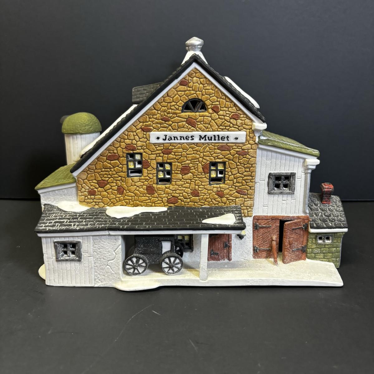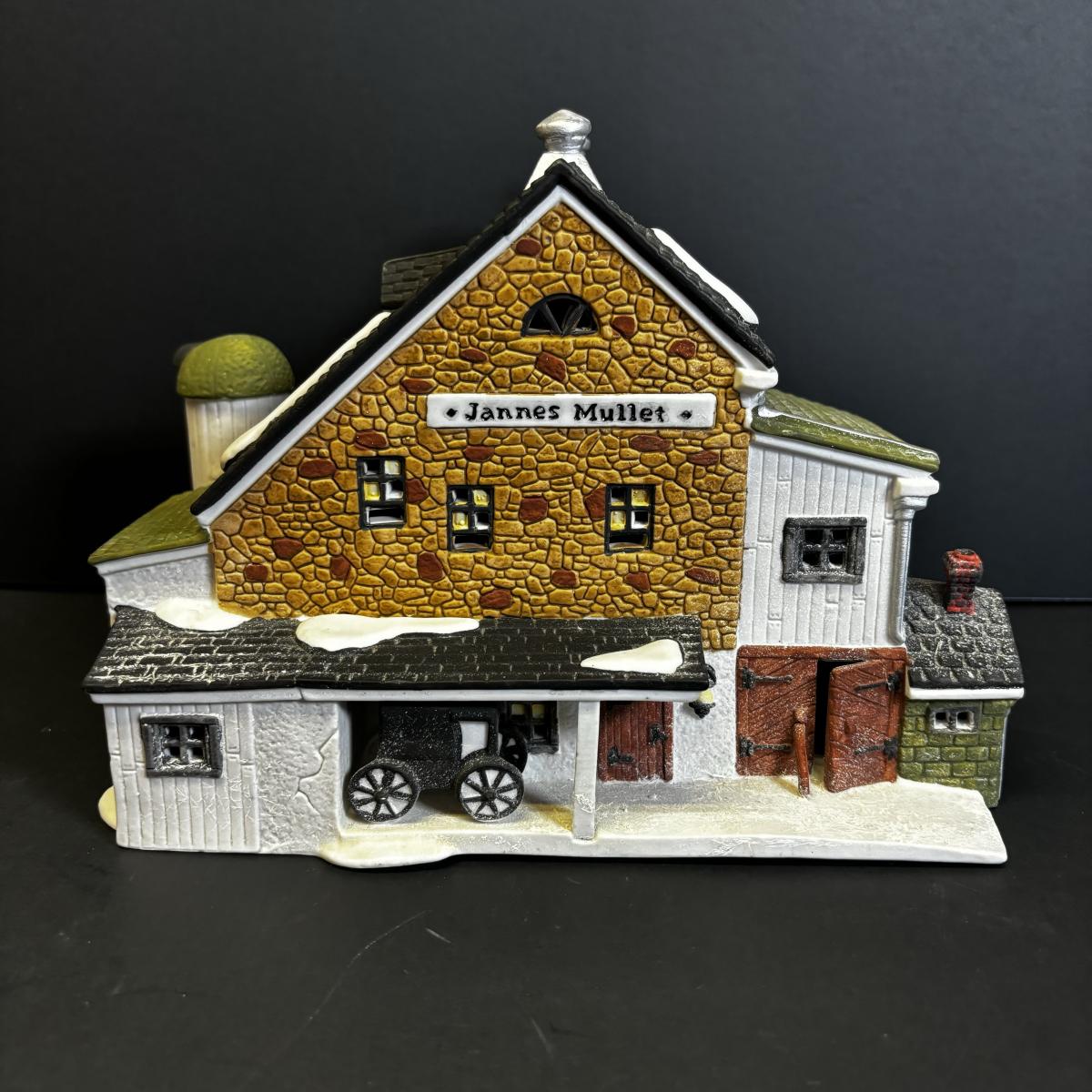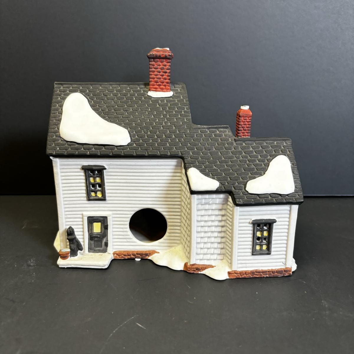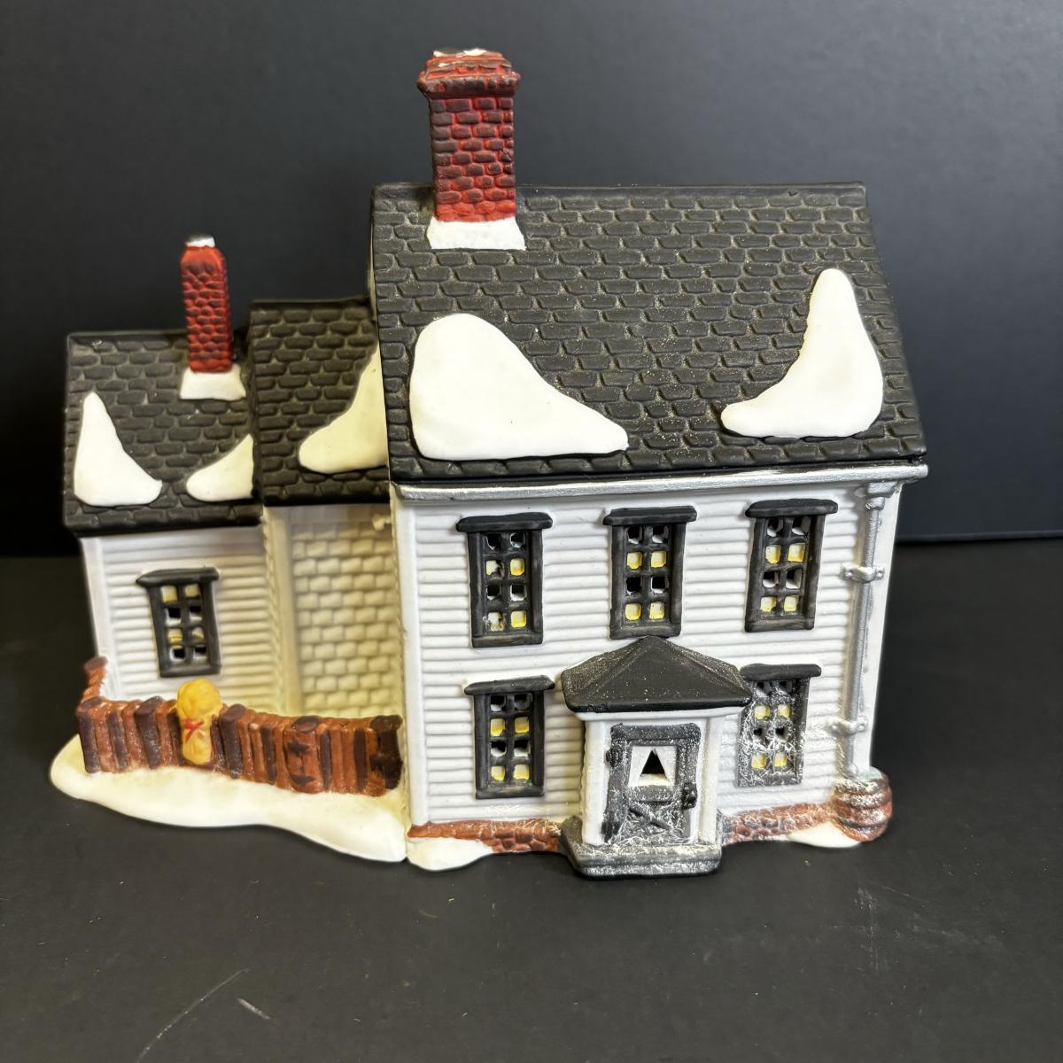 LOT 169: Vintage Department 56 New England Village Series Pigeonhead Lighthouse w/ Jannes Mullet Amish Farm House & Barn