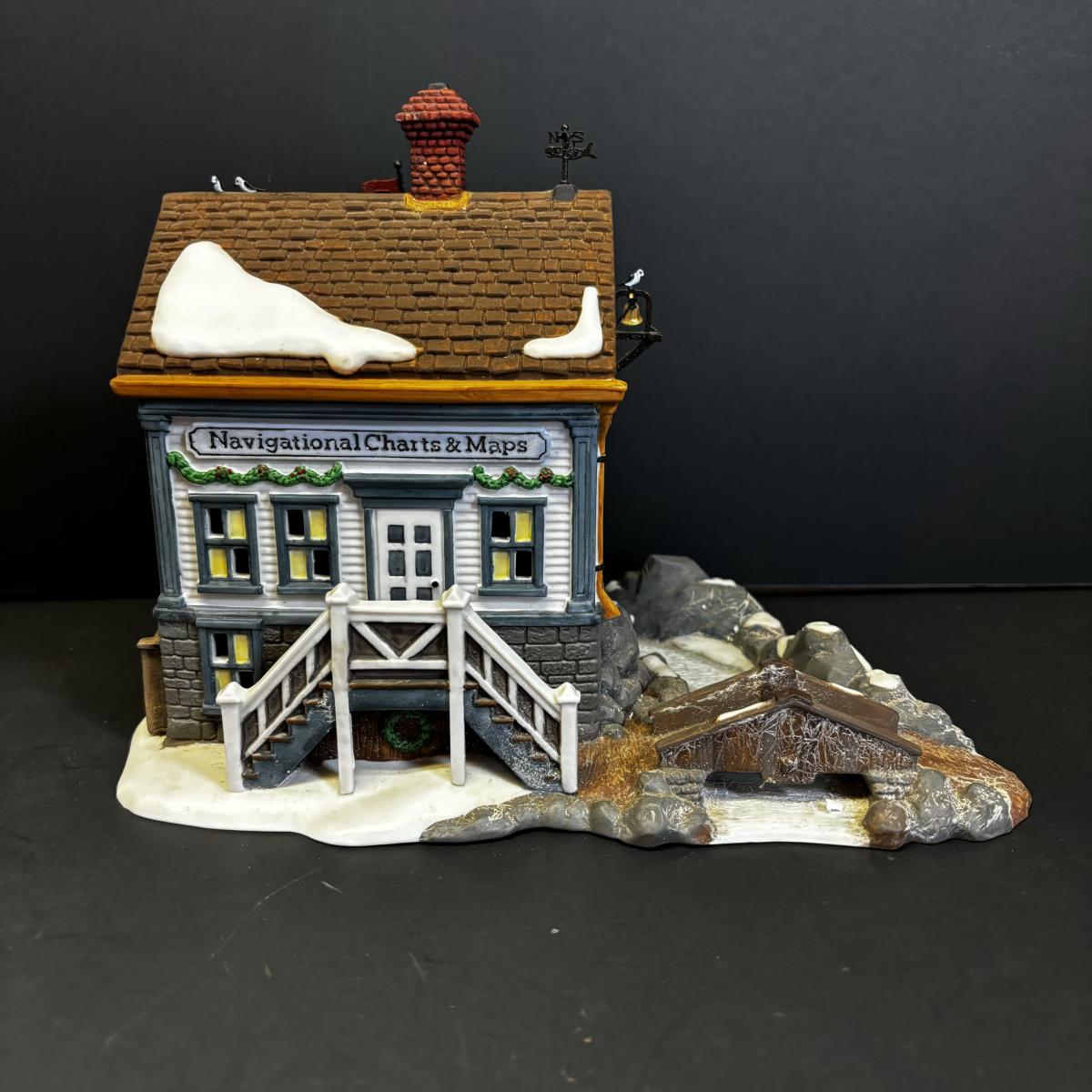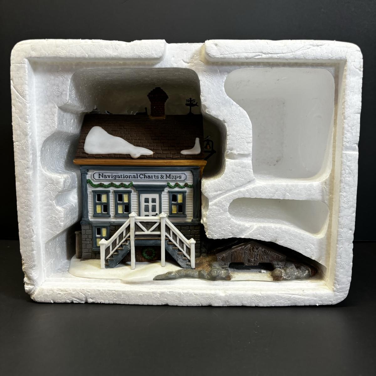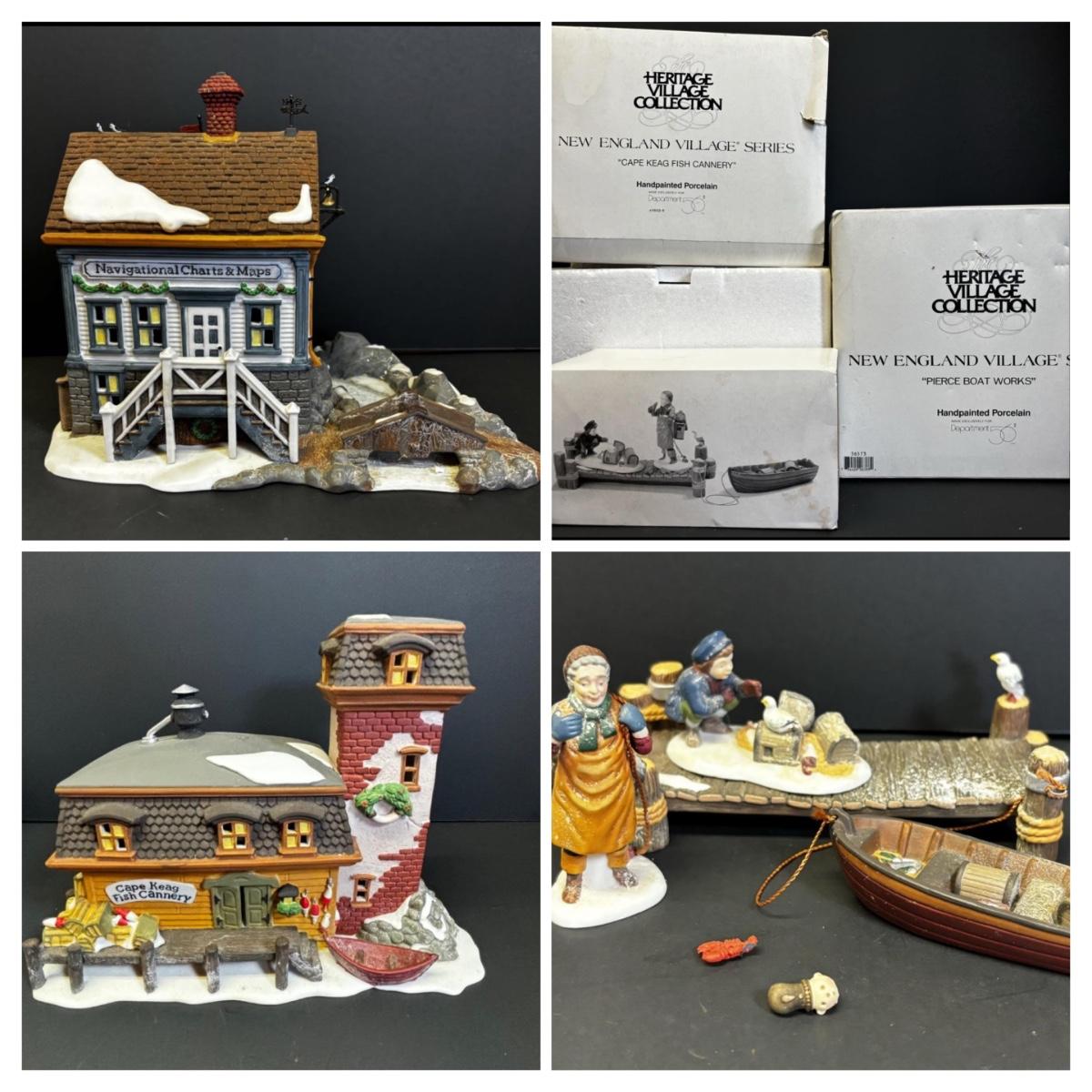 LOT 170: Vintage Department 56 New England Village Cape Keag Fish Cannery, Pierce Boat Works & Navigational Charts & Maps