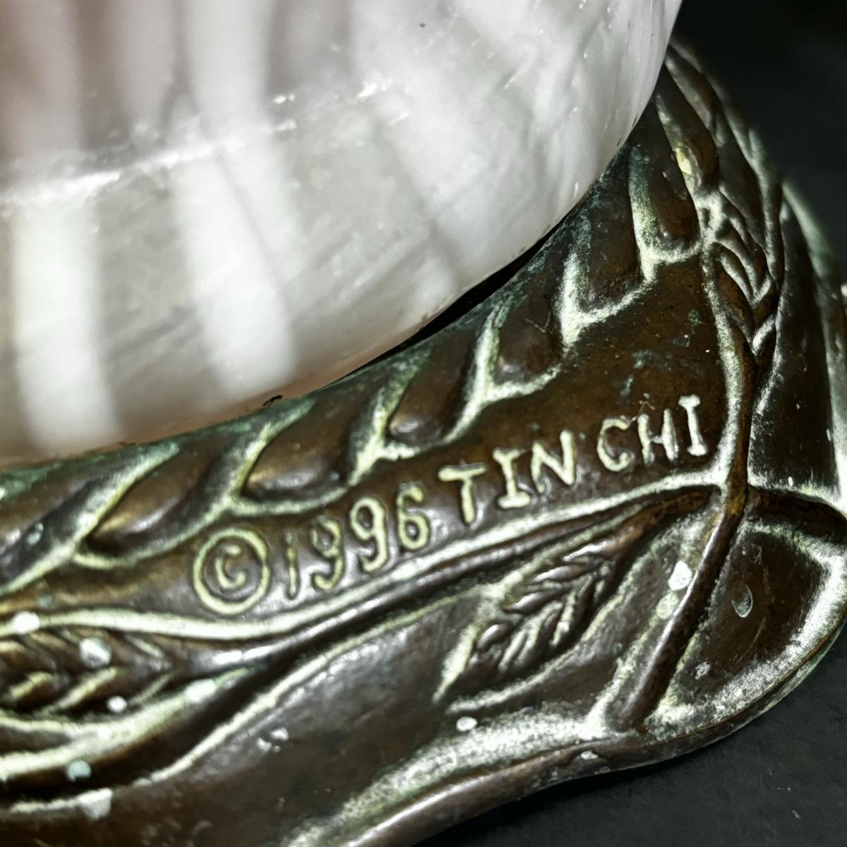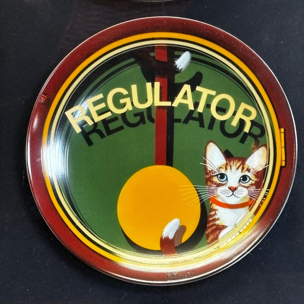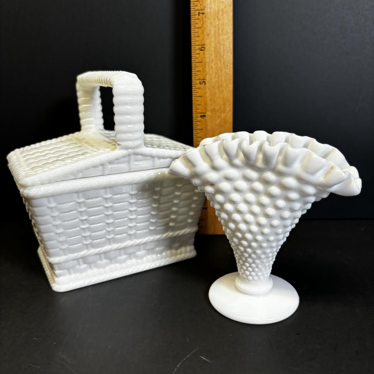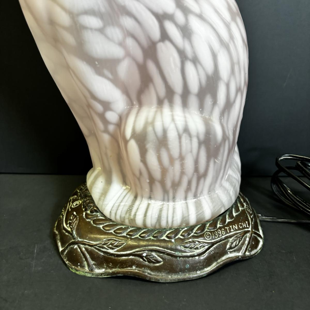 LOT 173: Vintage Andrea by Sadek 1996 Tin Chi Cat Lamp, Anna Perenna 'Dickory' and 'Tick Tock Clock' Set & Milk Glass Basket and Vase