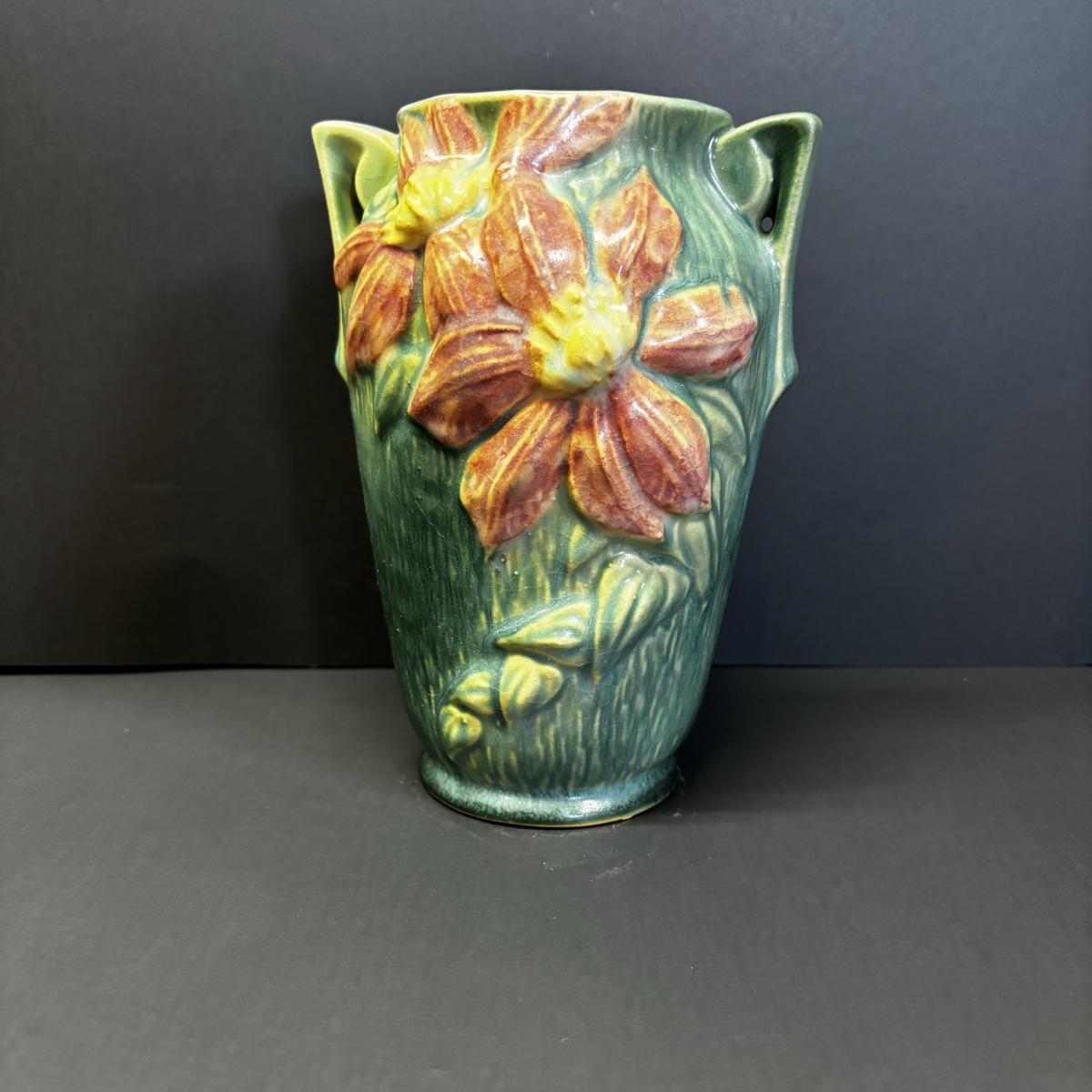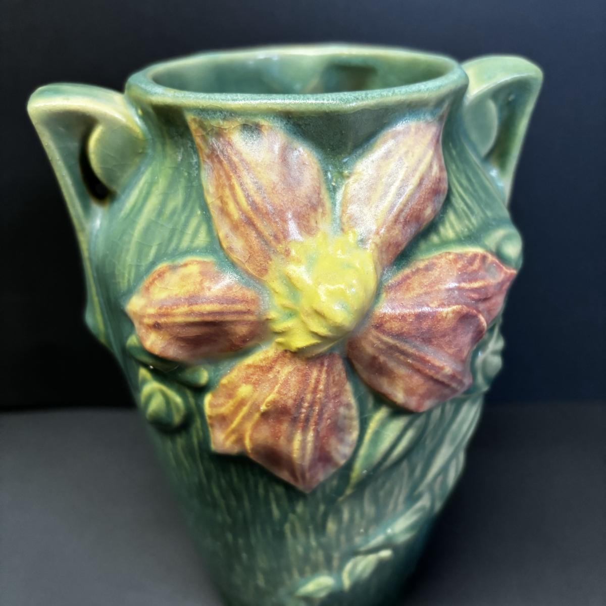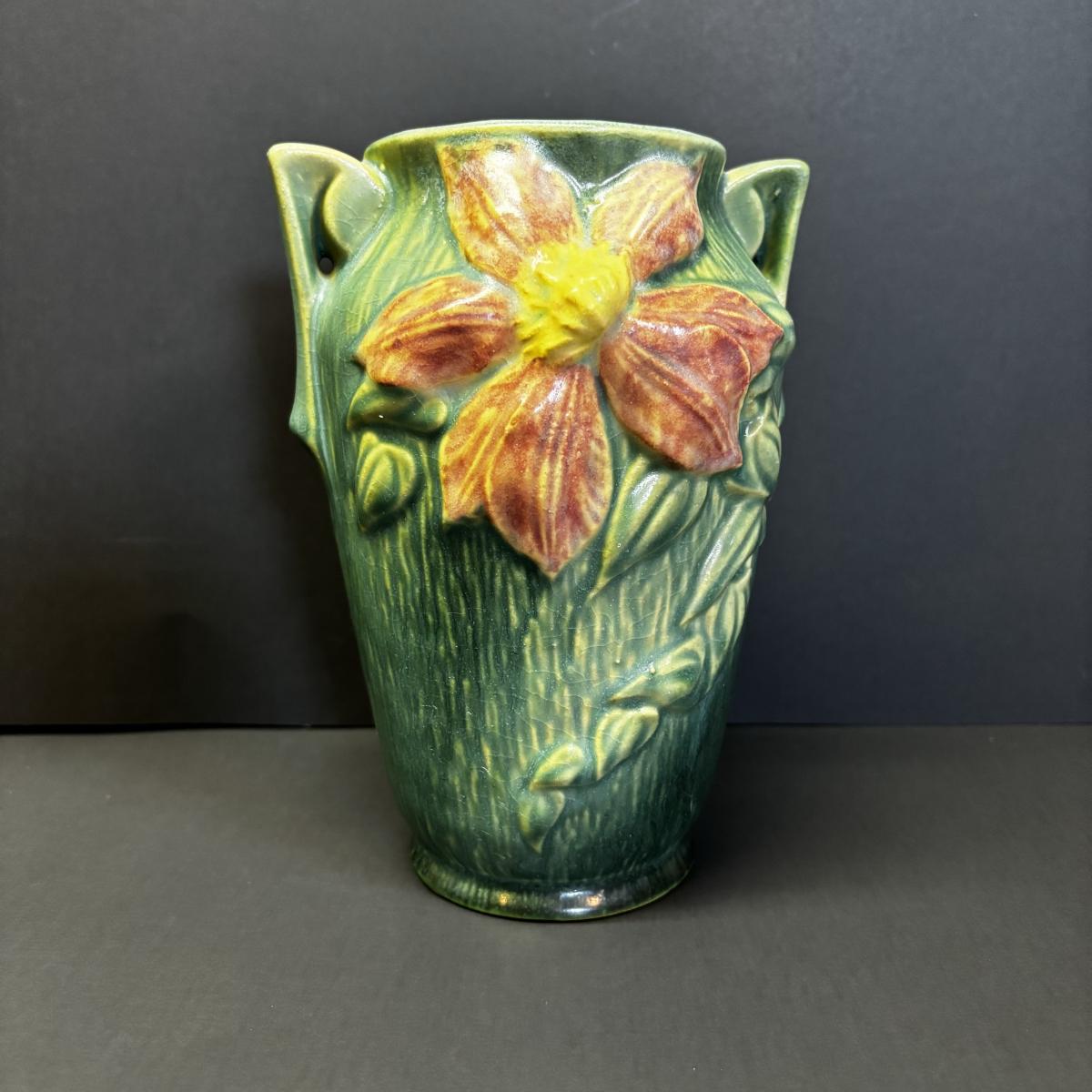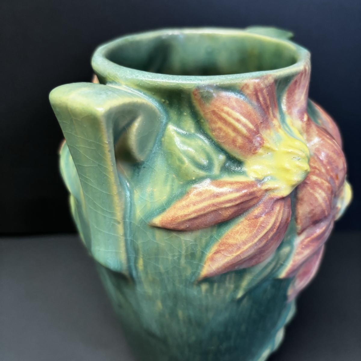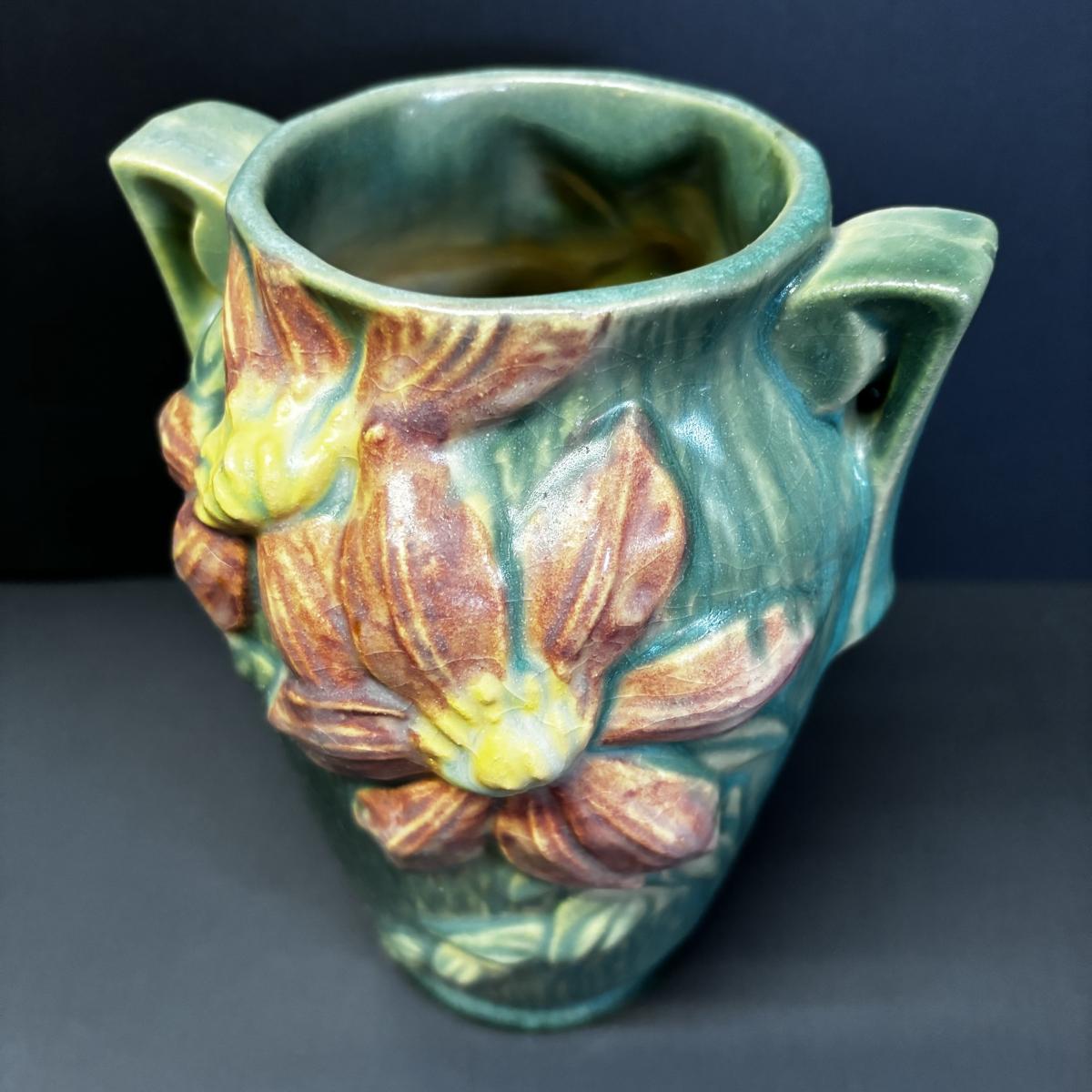 LOT 175: Roseville Art Pottery Clematis Double-Handled Vase