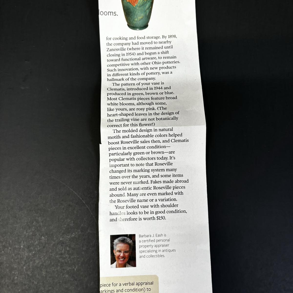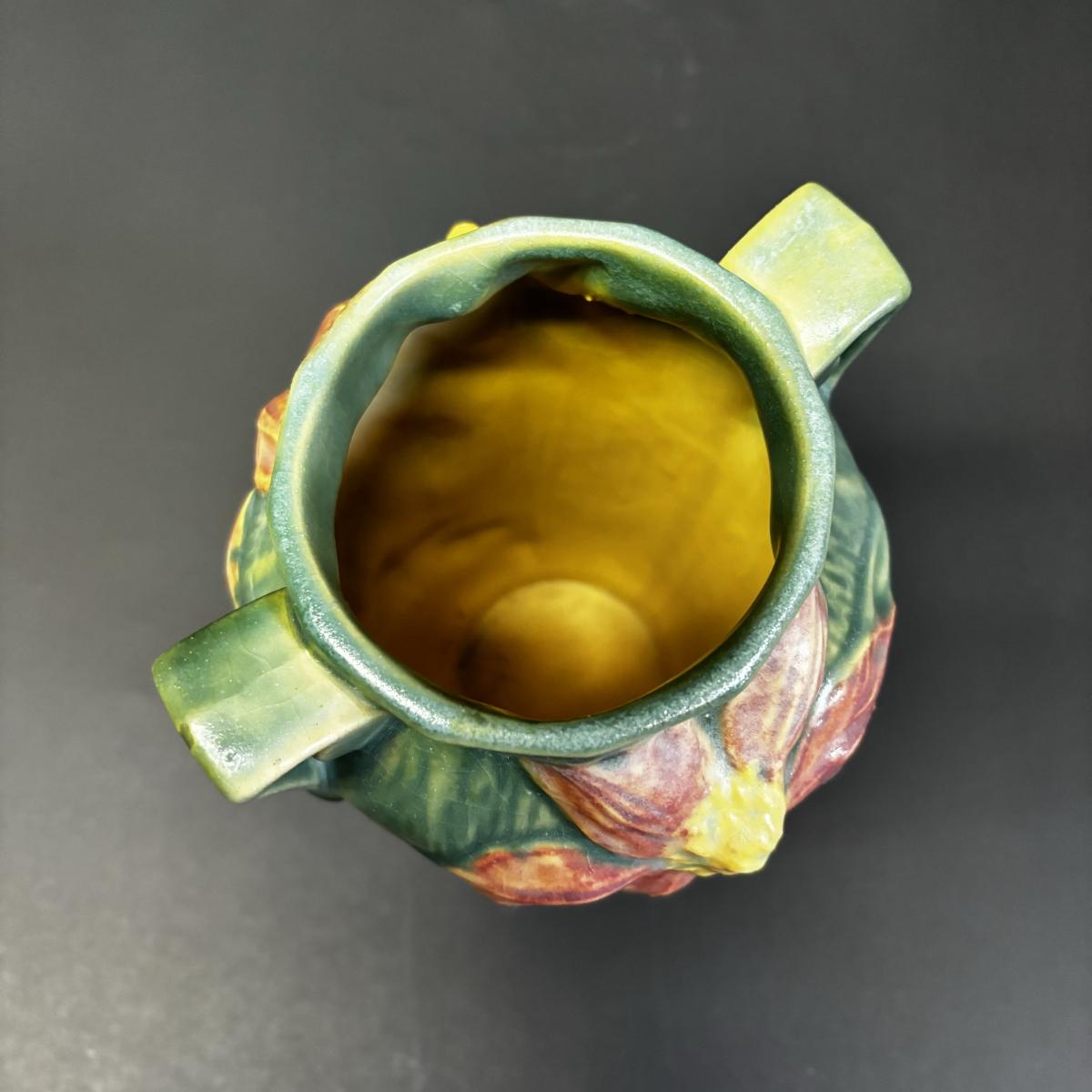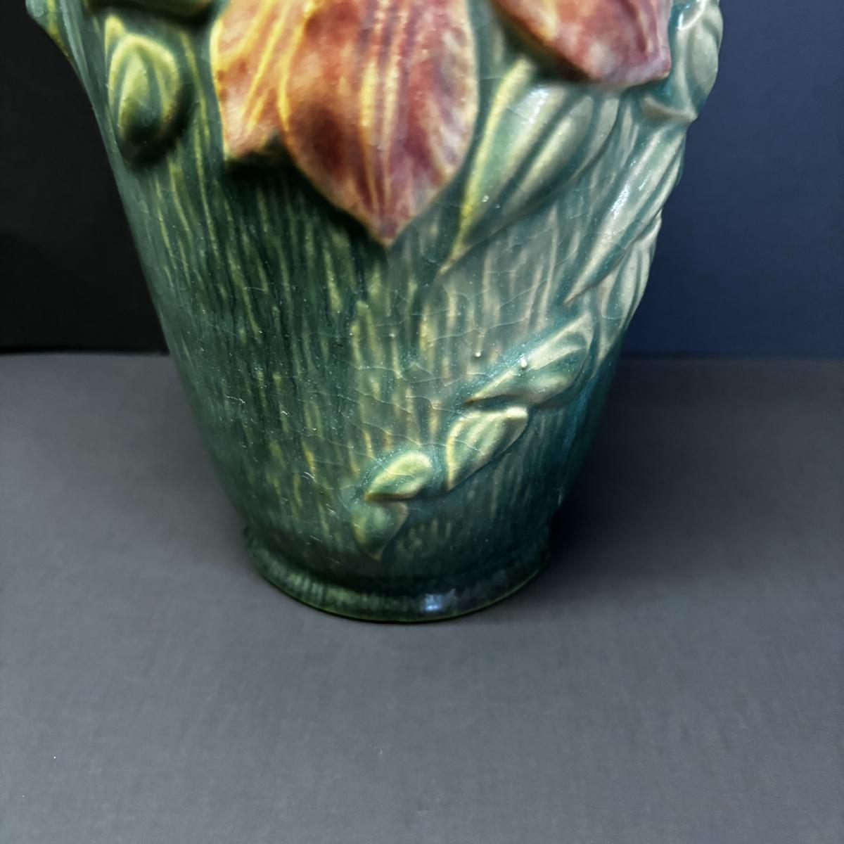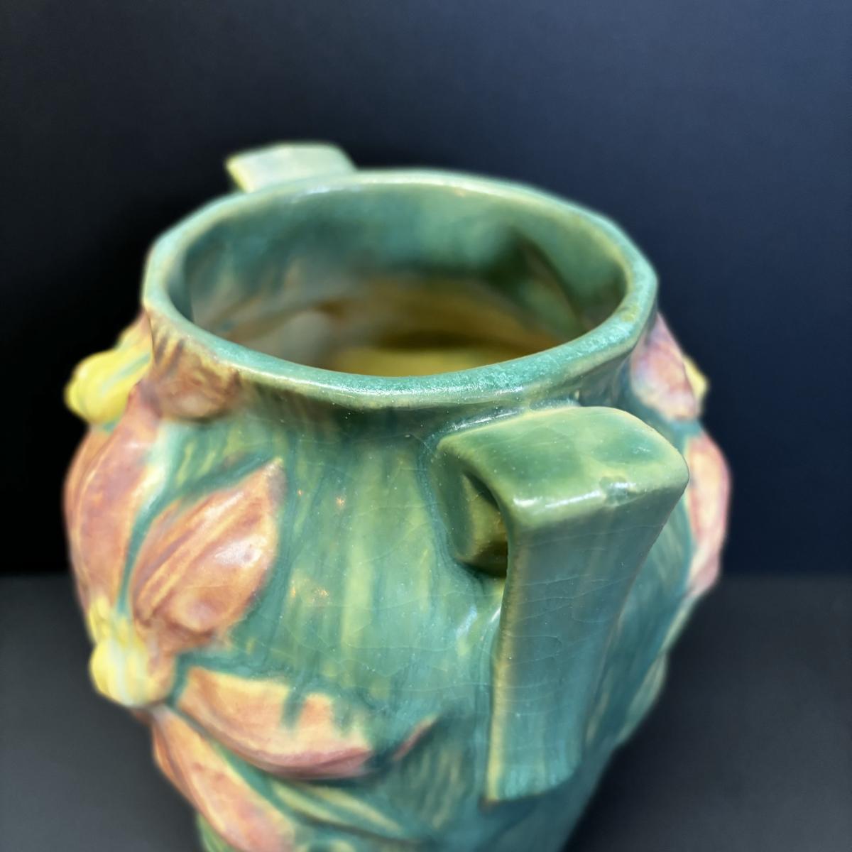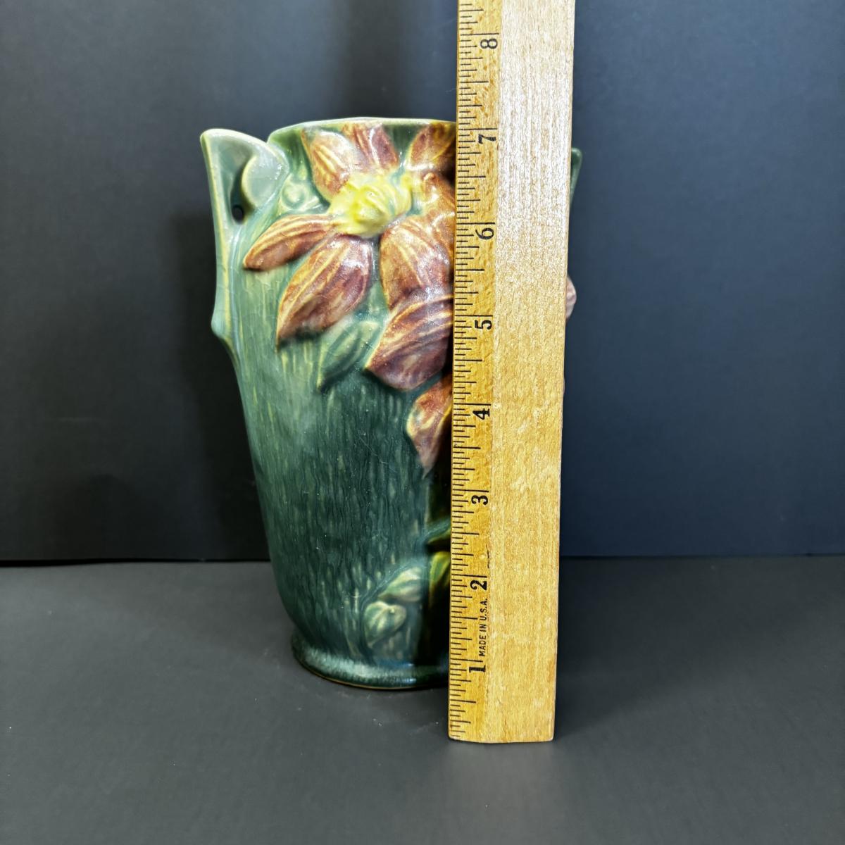 LOT 175: Roseville Art Pottery Clematis Double-Handled Vase