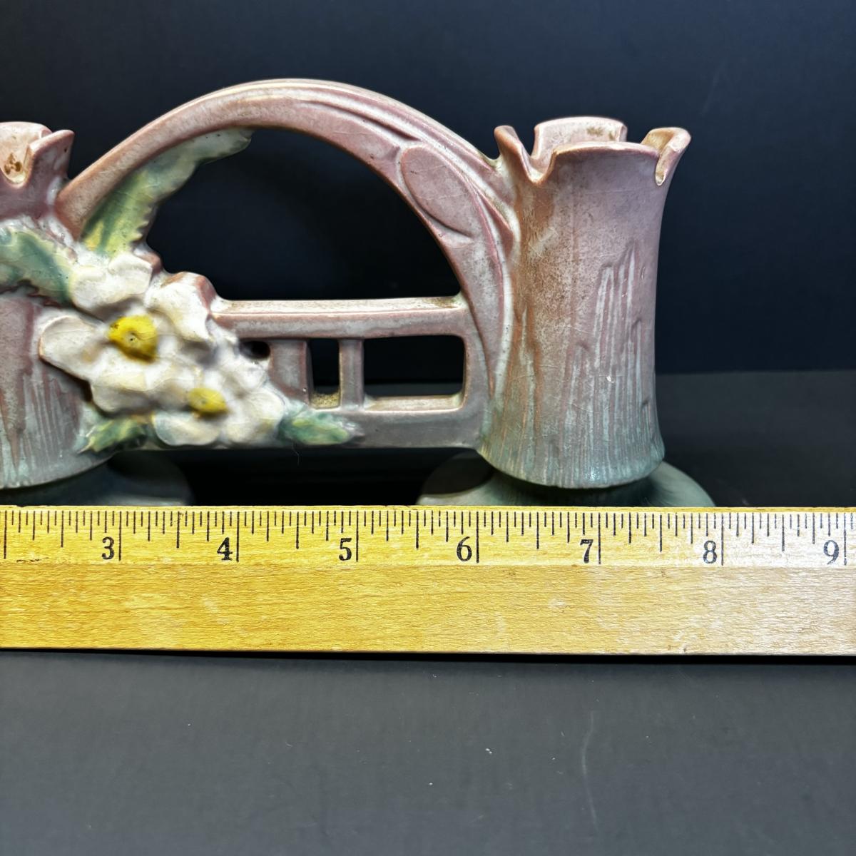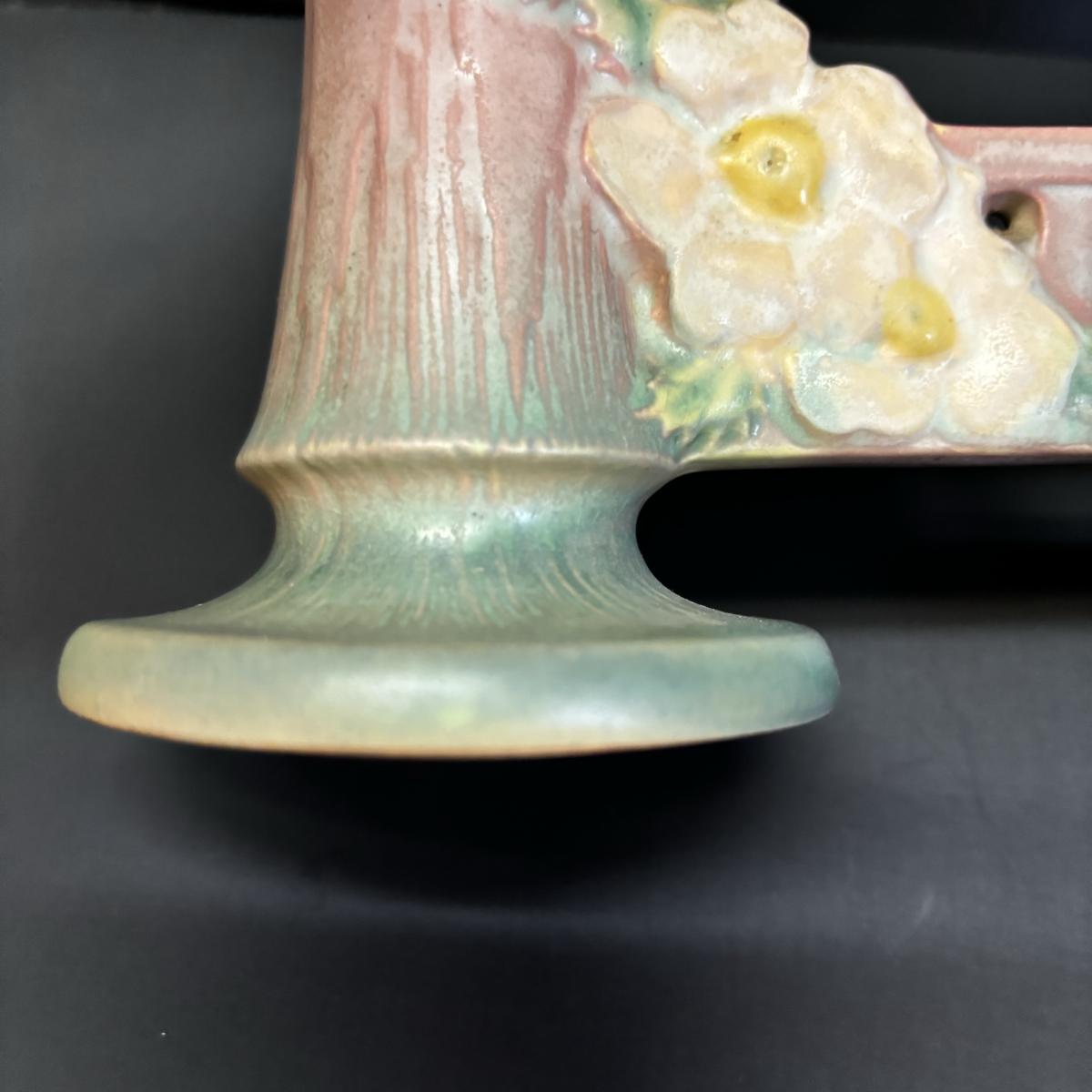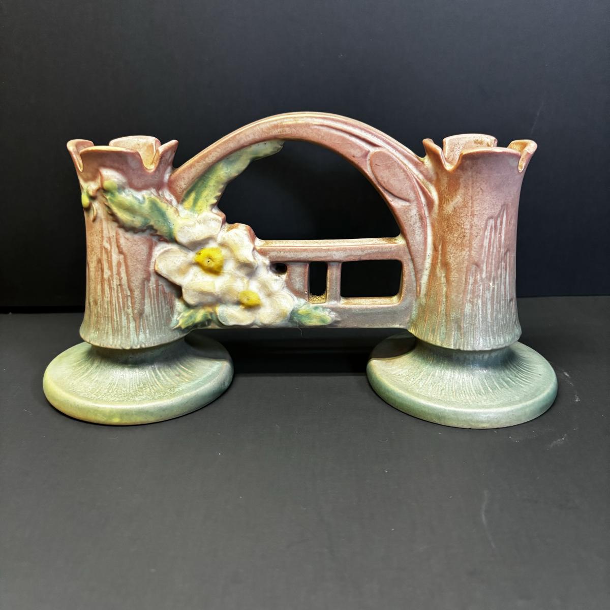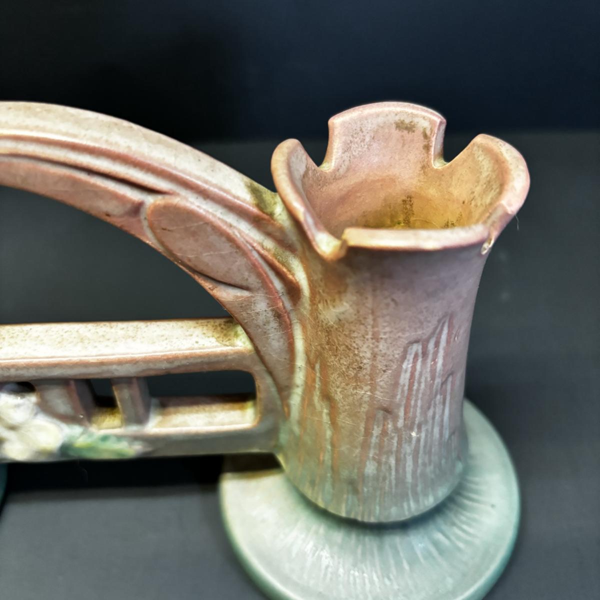 LOT 176: Roseville Art Pottery White Rose Gate Bud Vase