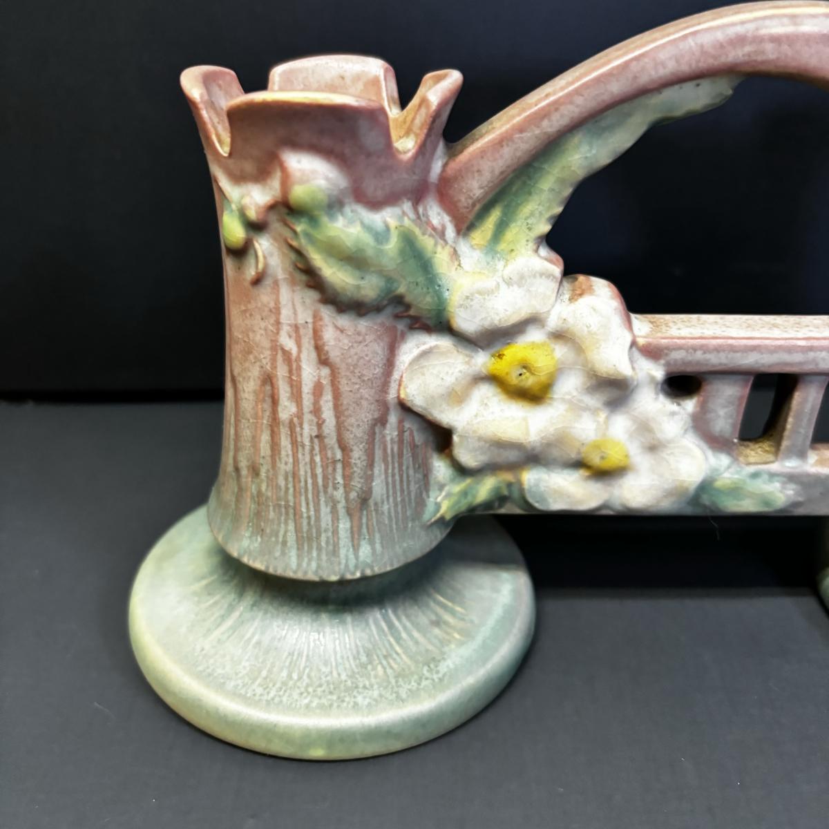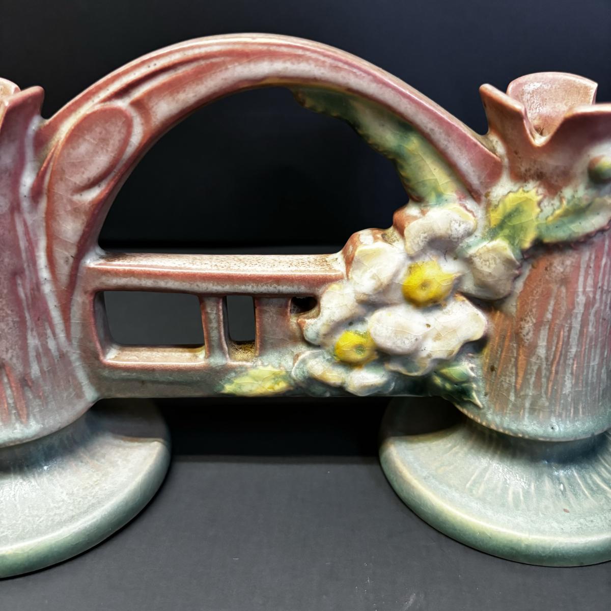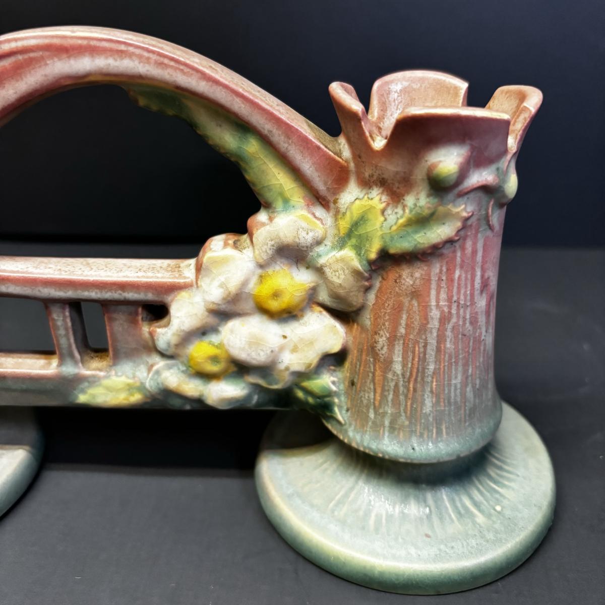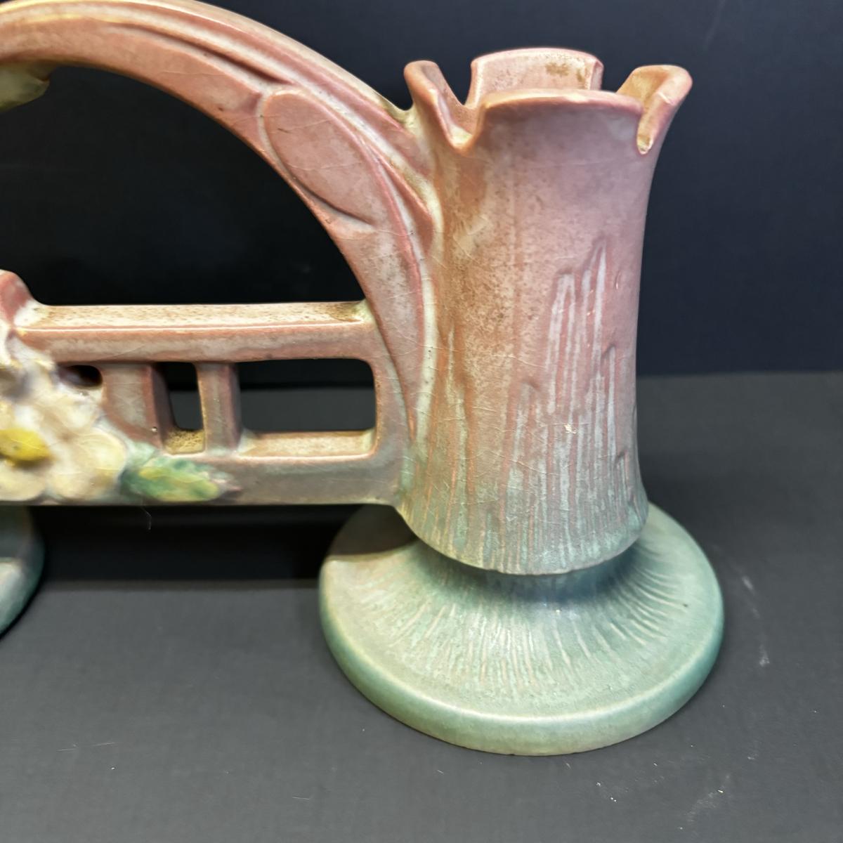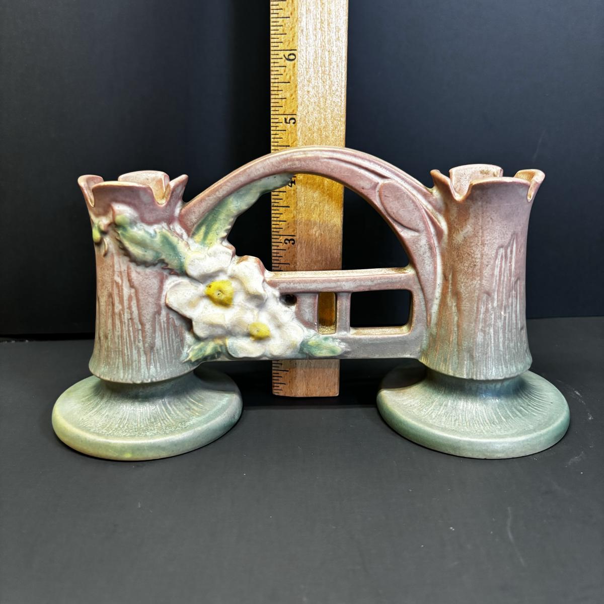 LOT 176: Roseville Art Pottery White Rose Gate Bud Vase