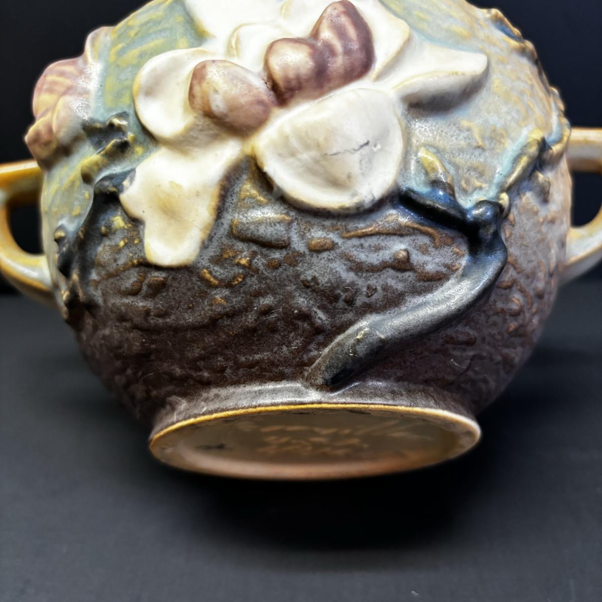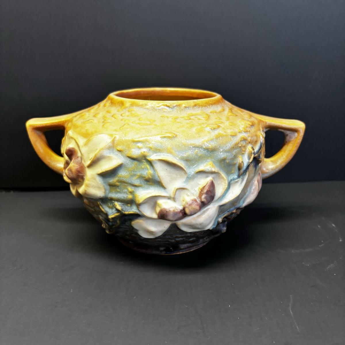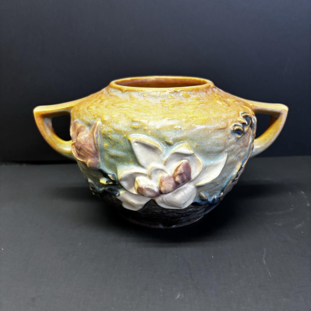 LOT 177: Roseville Art Pottery Magnolia Double Handled Jardiniere Bowl