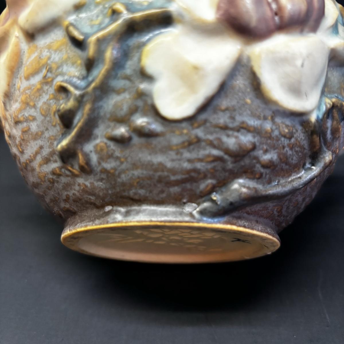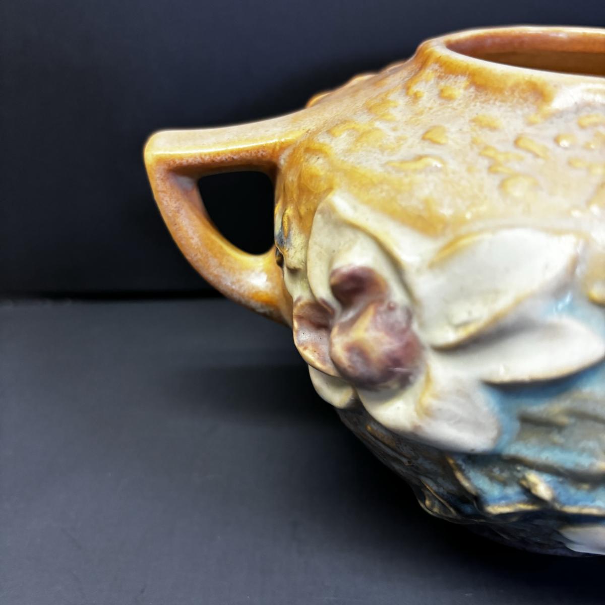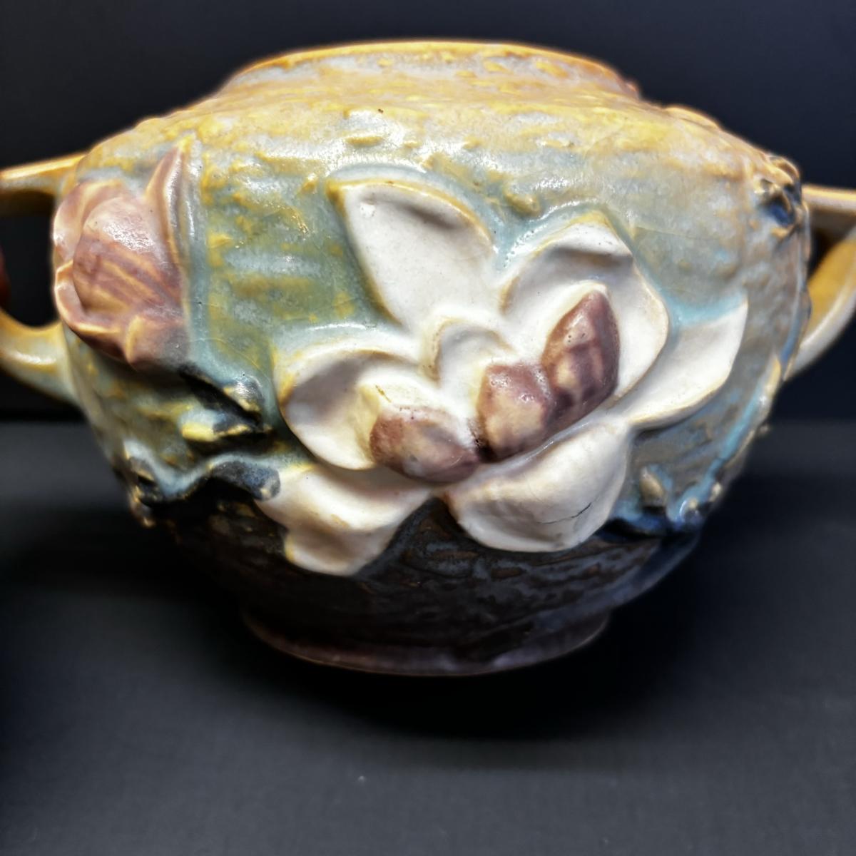 LOT 177: Roseville Art Pottery Magnolia Double Handled Jardiniere Bowl