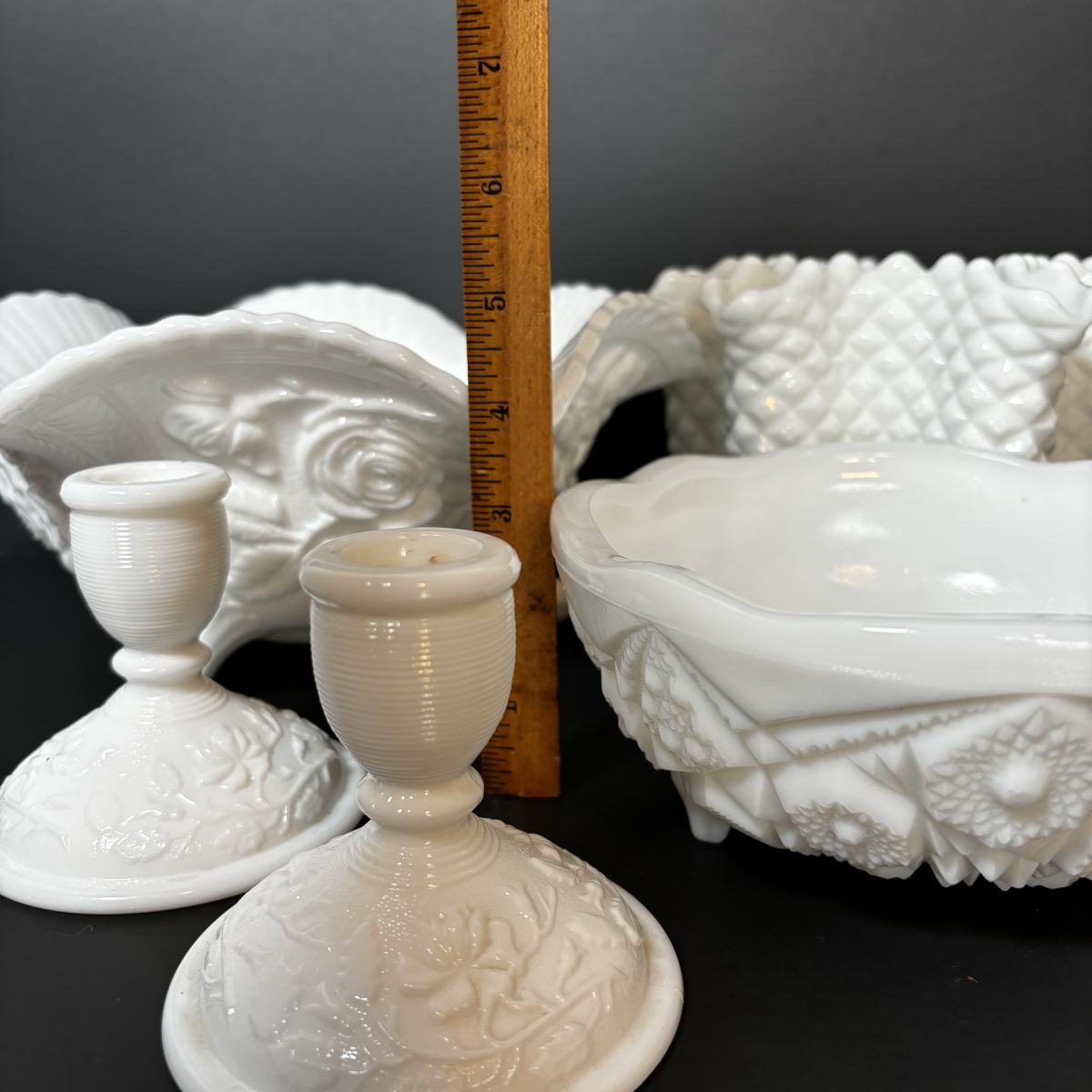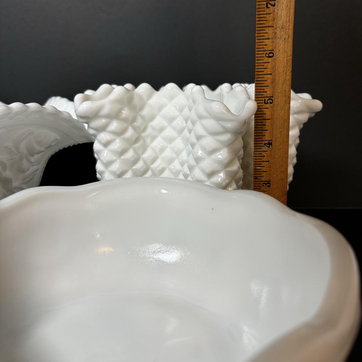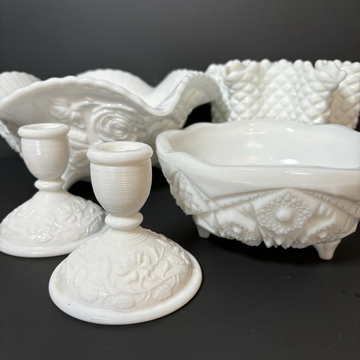 LOT 187: Vintage Milk Glass Collection: Imperial Glass Footed Rose Bowl, Westmoreland & More