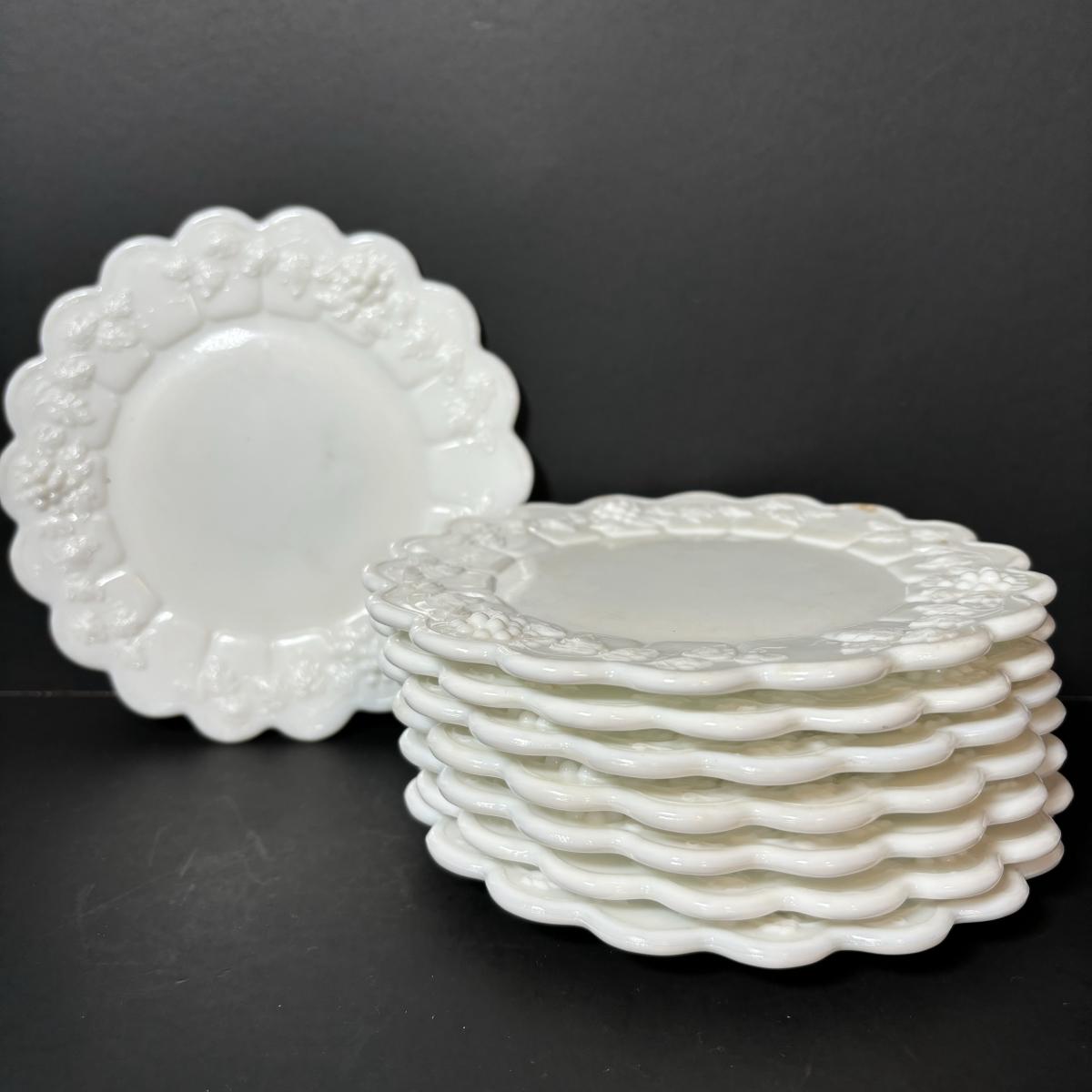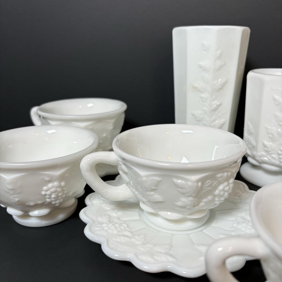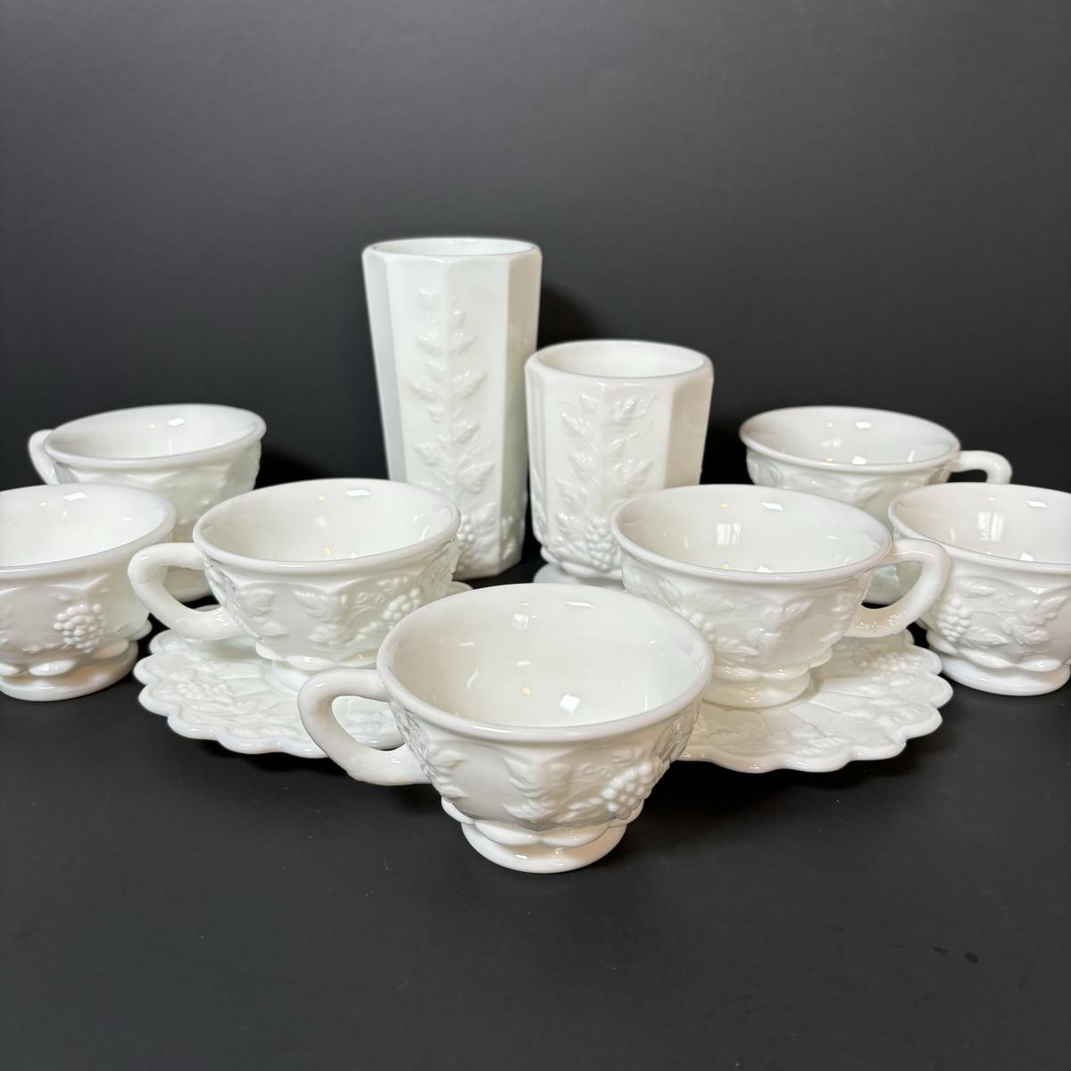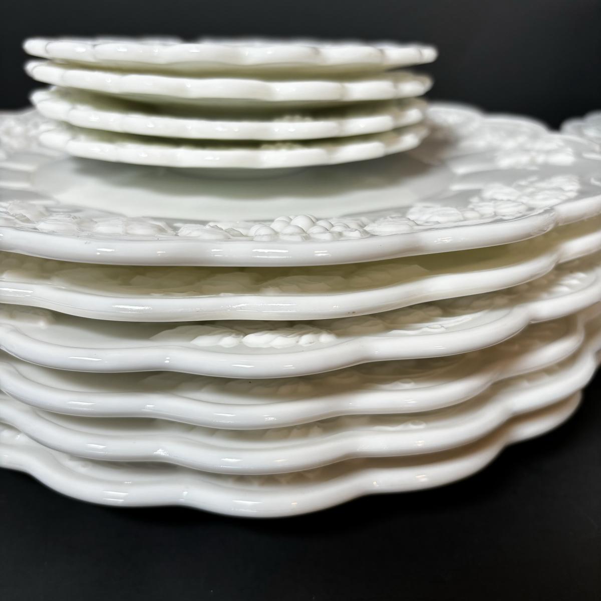 LOT 189: Westmoreland Grape Pattern Dish Set: Dinner, Salad, & Dessert Plates, Cups w/Saucers