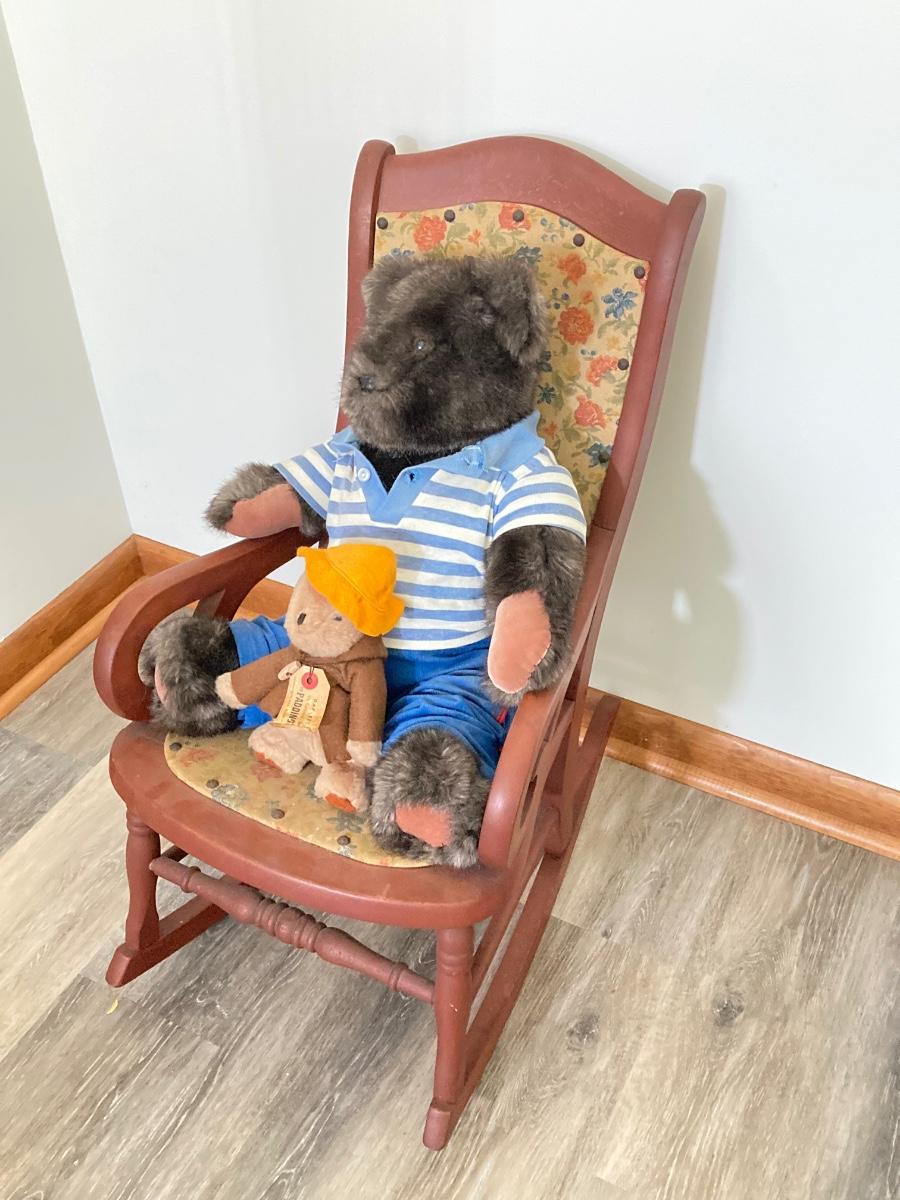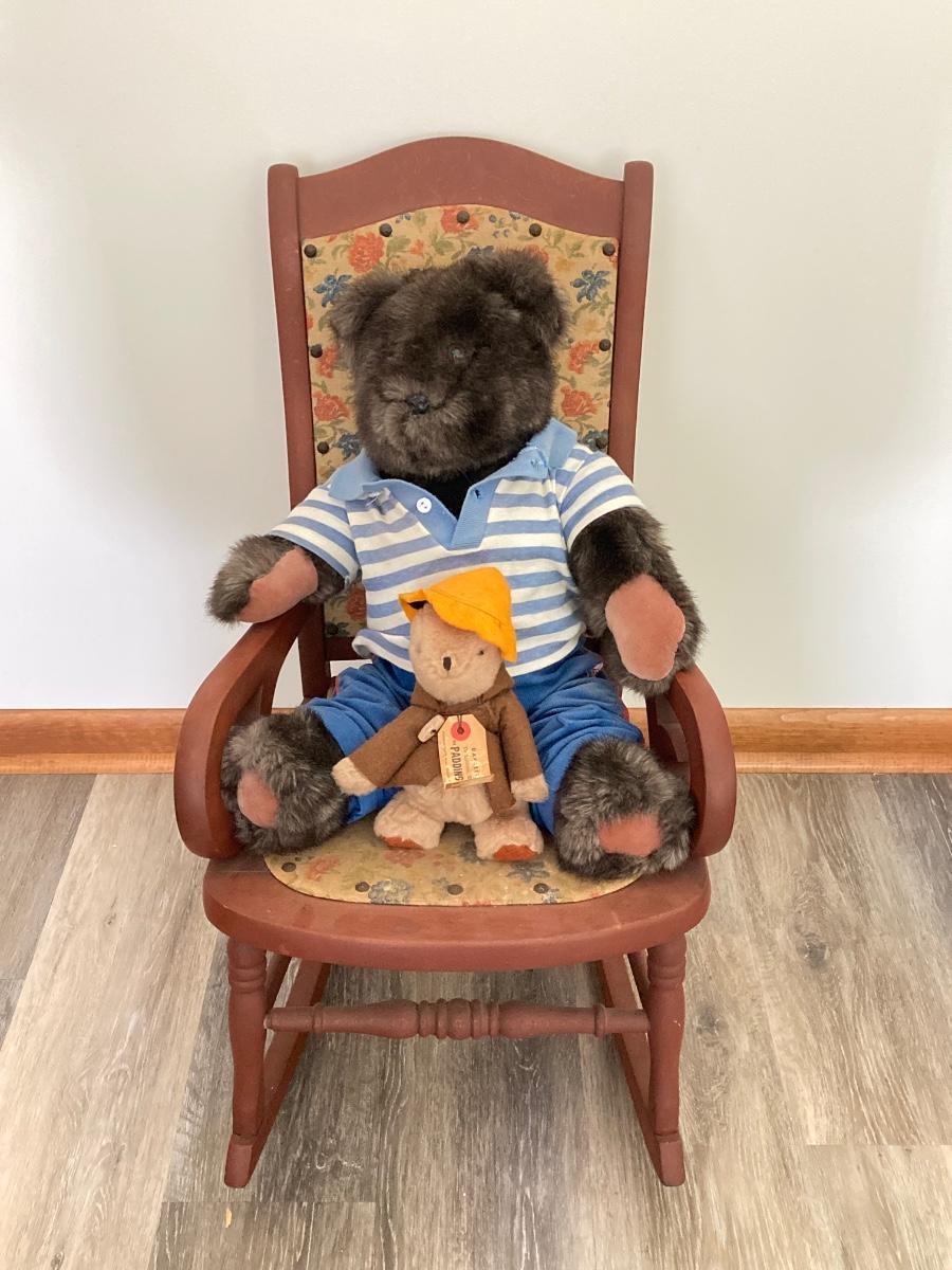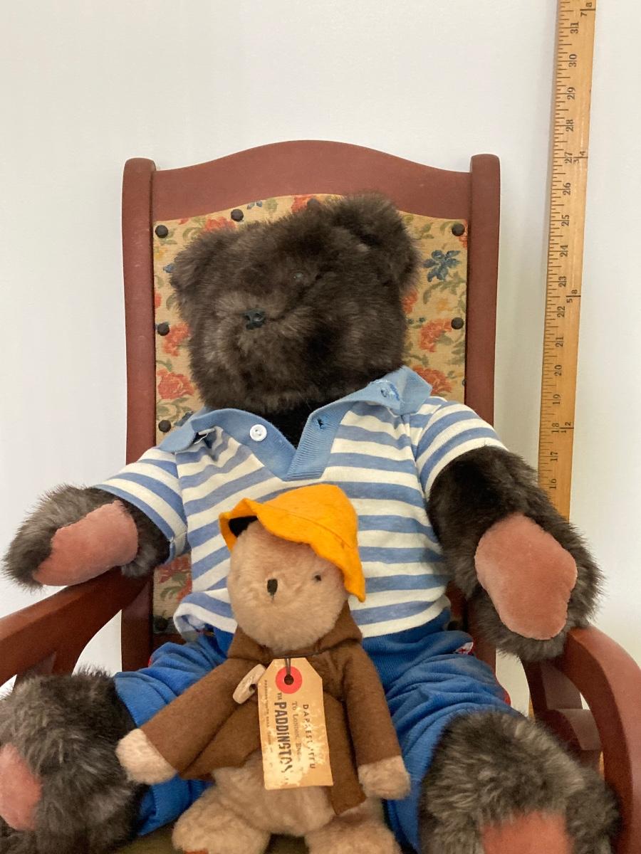 LOT 220: Vintage Child / Doll Rocking Chair with Paddington Bear & Large Brown Bear