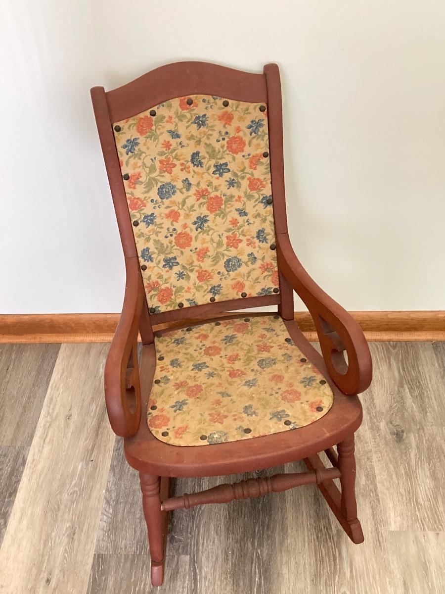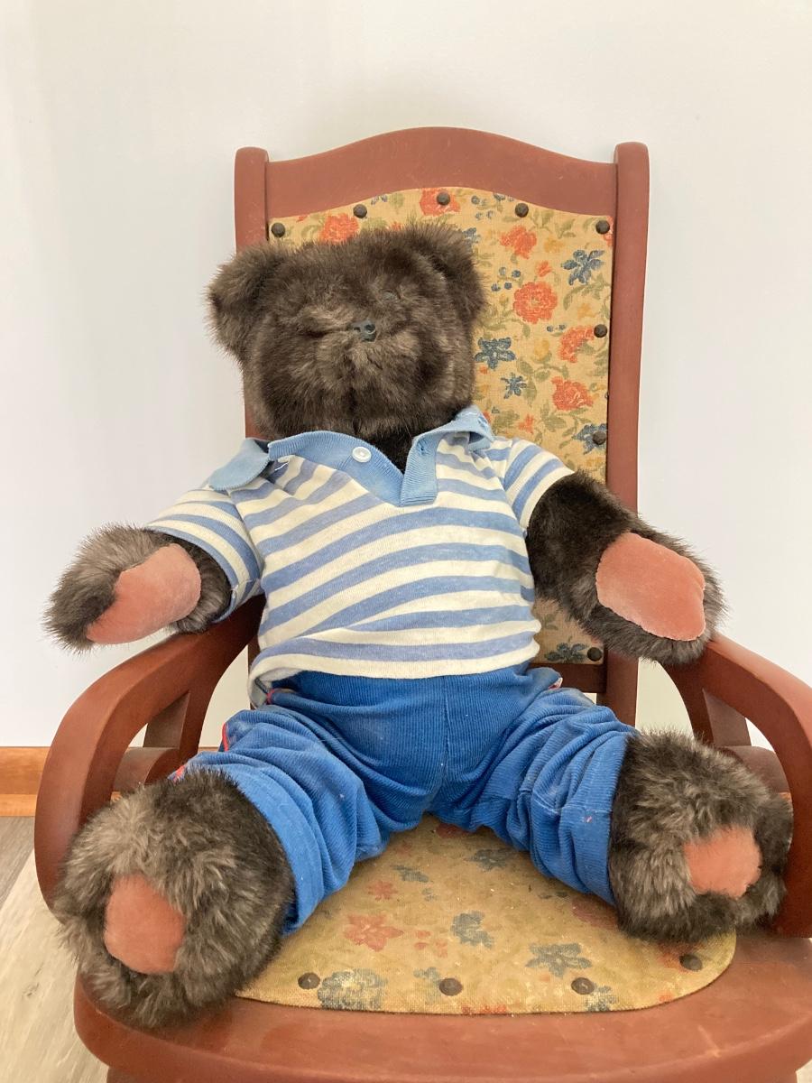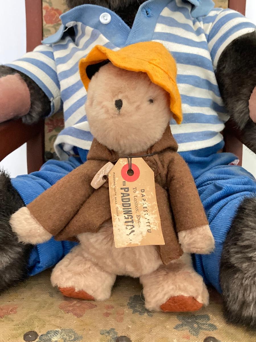 LOT 220: Vintage Child / Doll Rocking Chair with Paddington Bear & Large Brown Bear