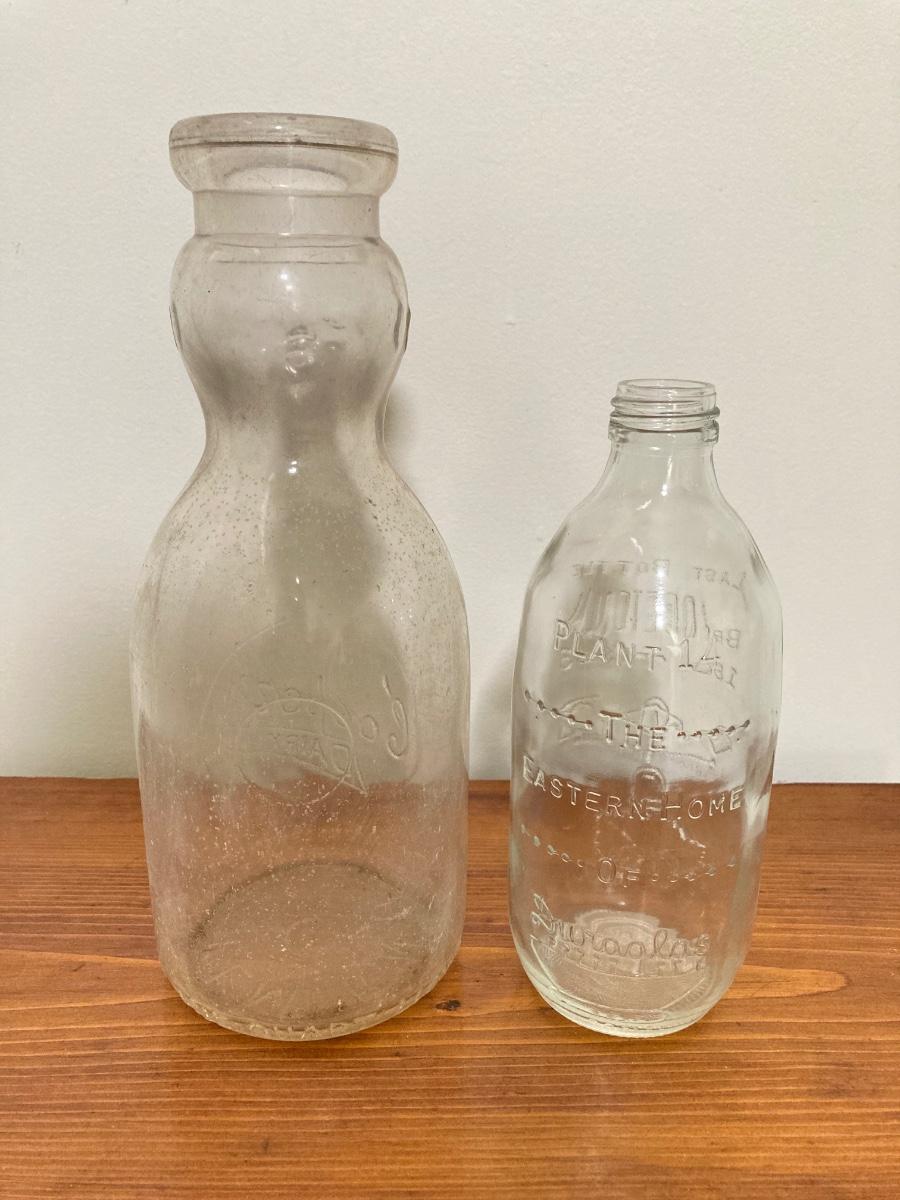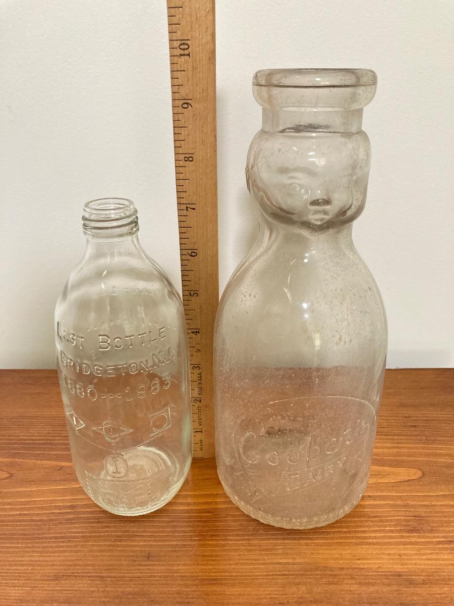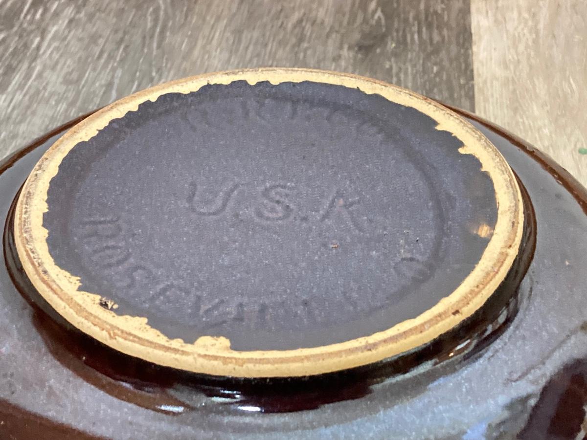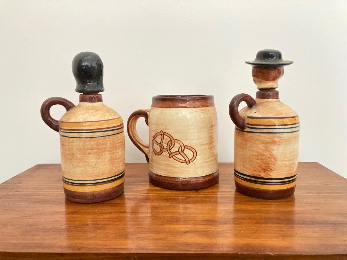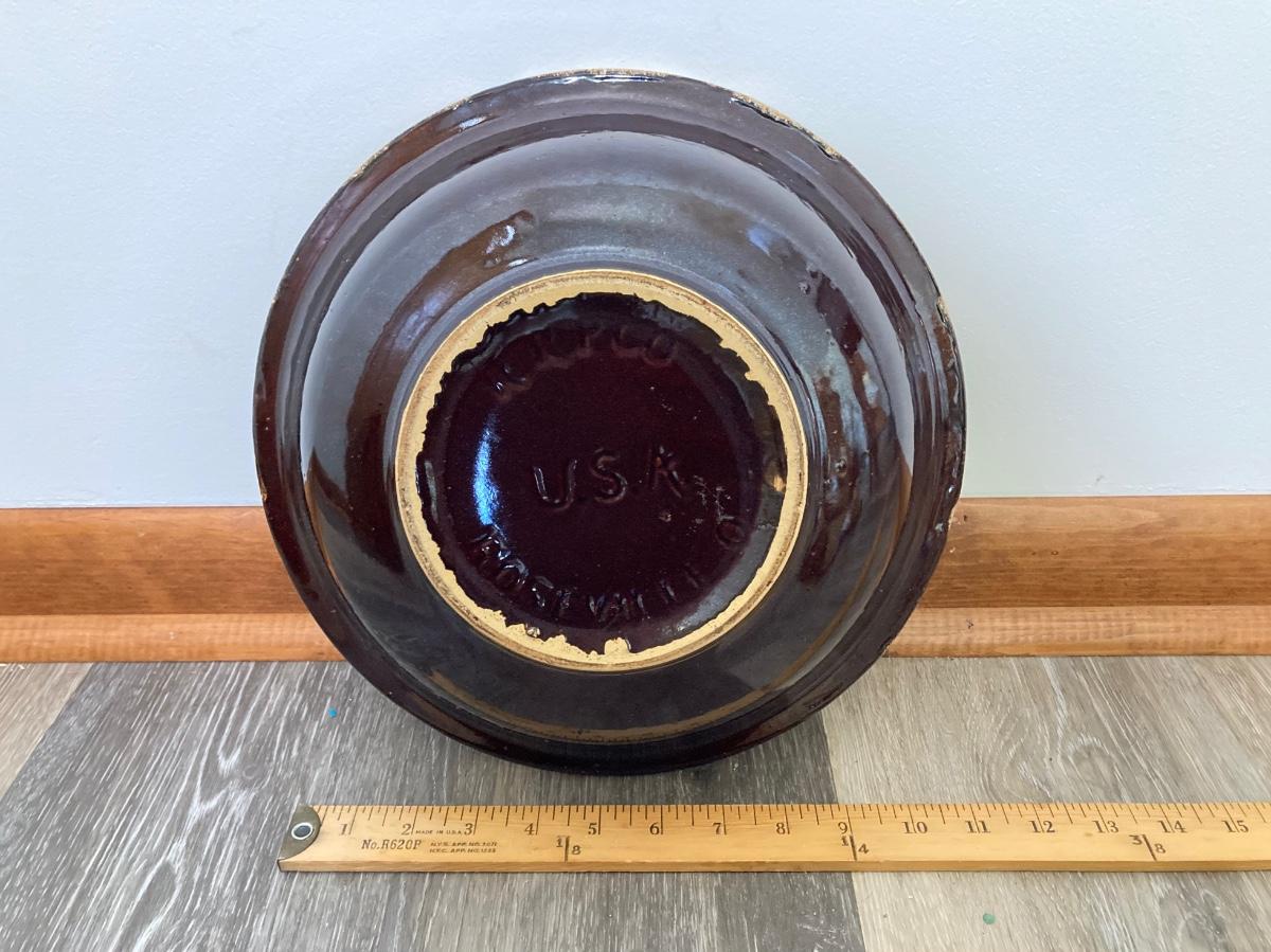 LOT 228: Vintage Roseville Bowl with Brown Drip Pitcher, Pennsbury Pottery Cruets and Mug, Cop the Cream Milk Bottle & More