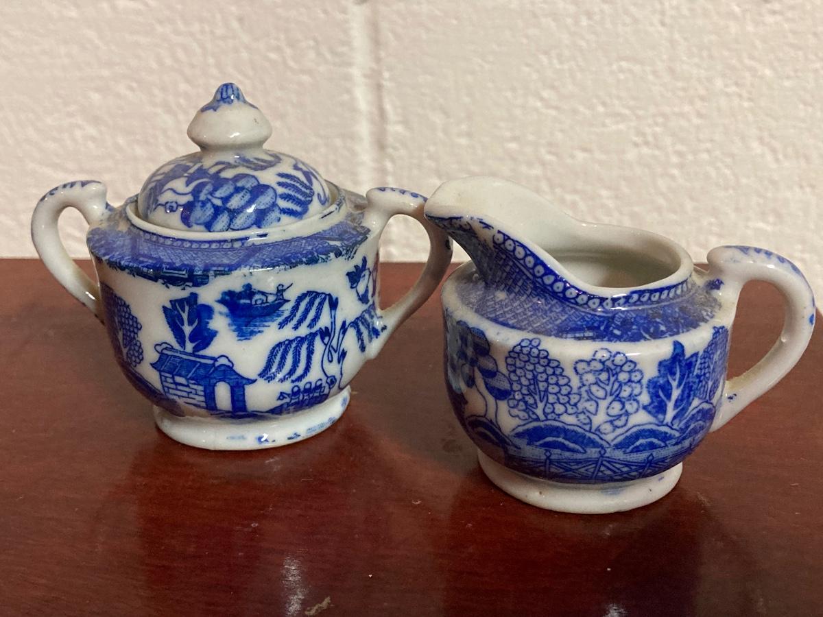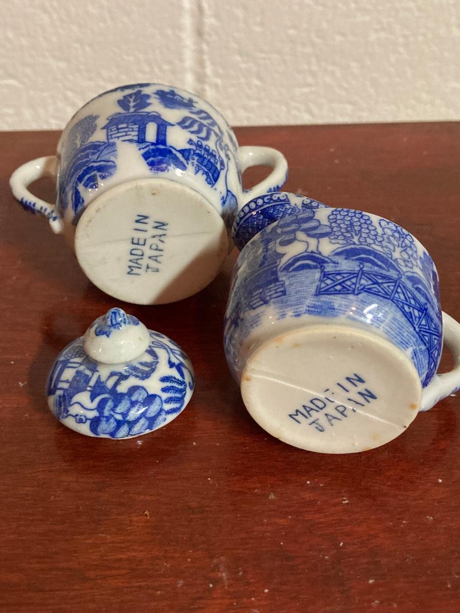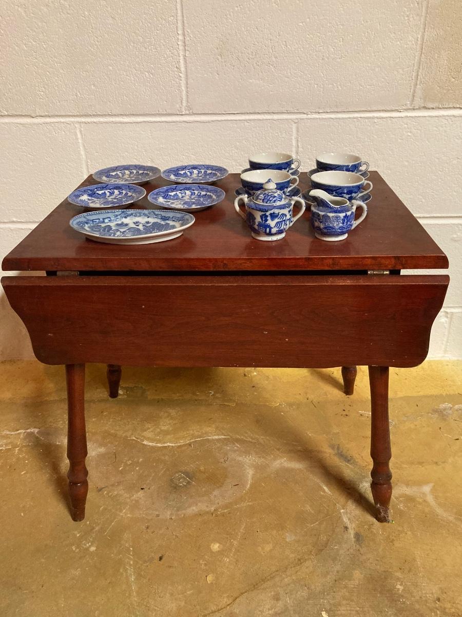 LOT 229: Vintage Drop Leaf Table with Porcelain Children's Dishes Made in Japan