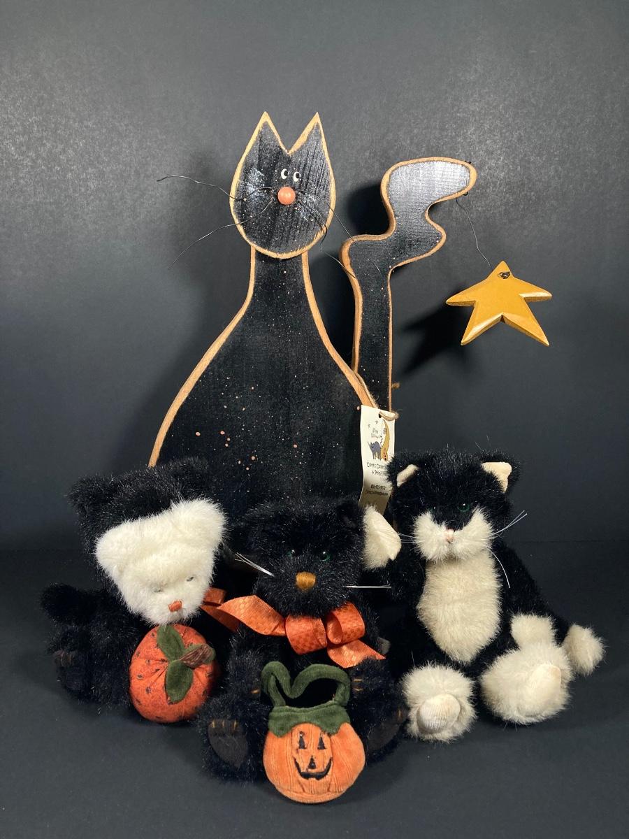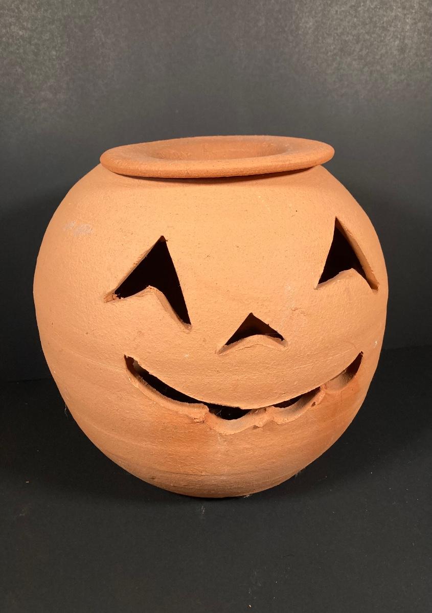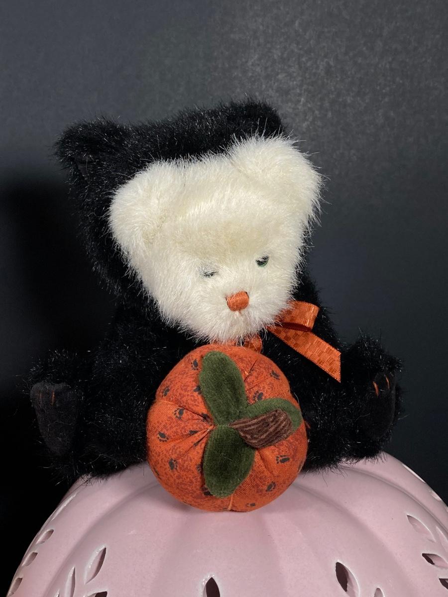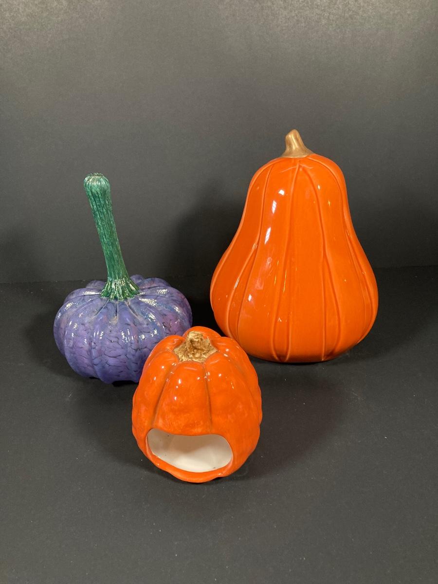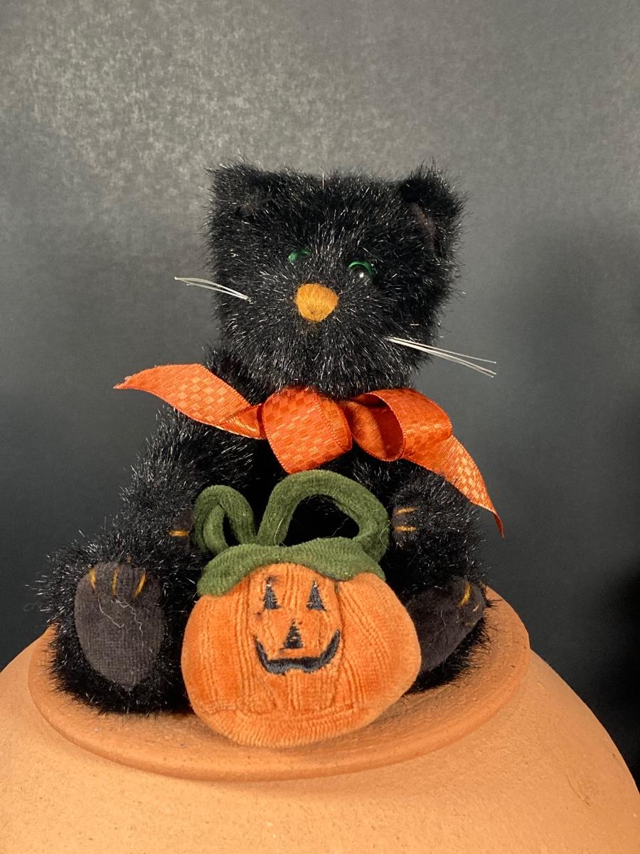 LOT 233: Wheaton Art Glass Pumpkin, Boyd's Bears Halloween Plush, Terra Cotta Jack'O'Lantern Jar & More
