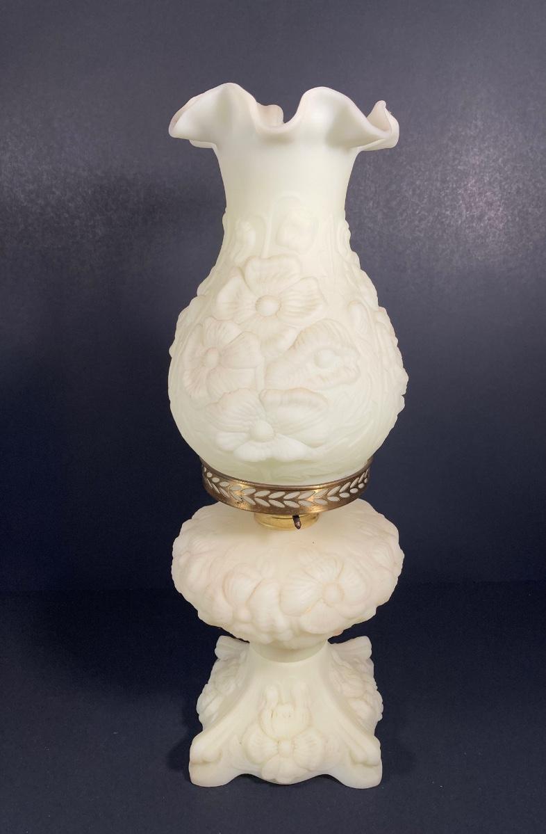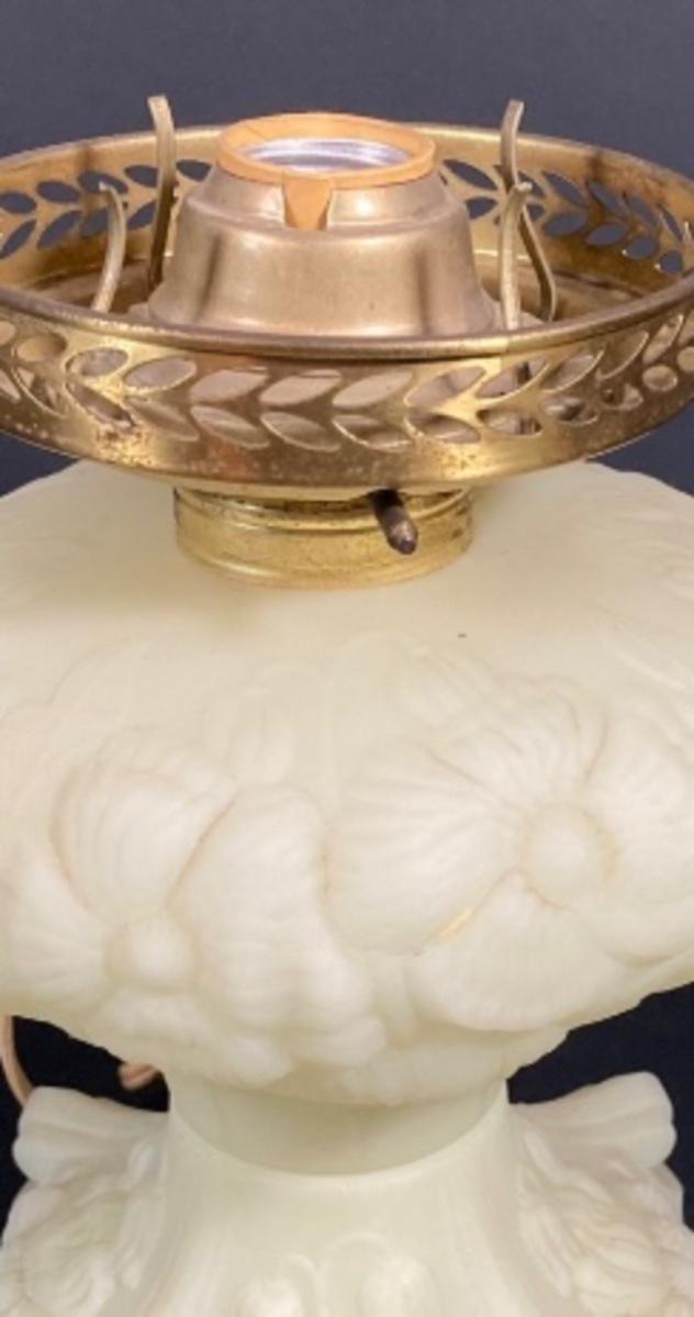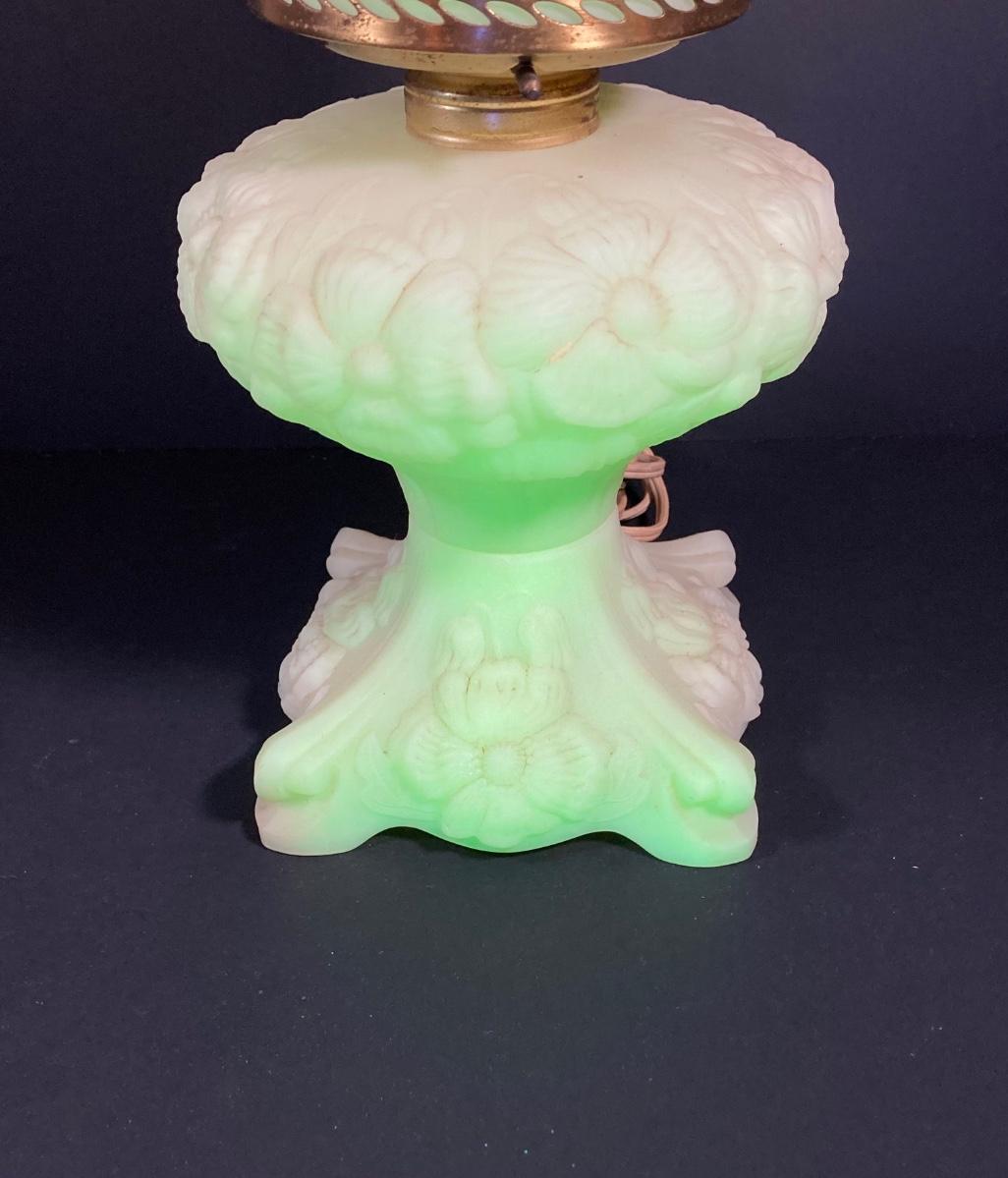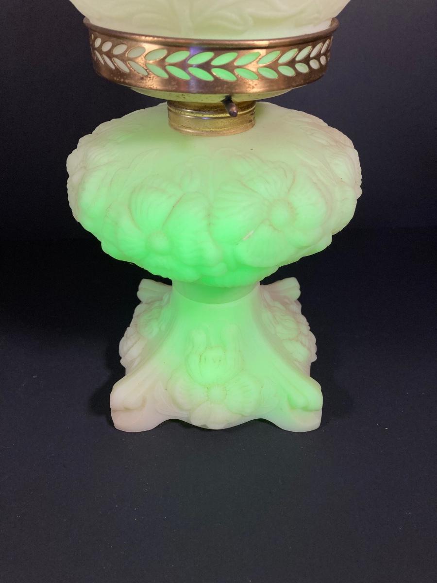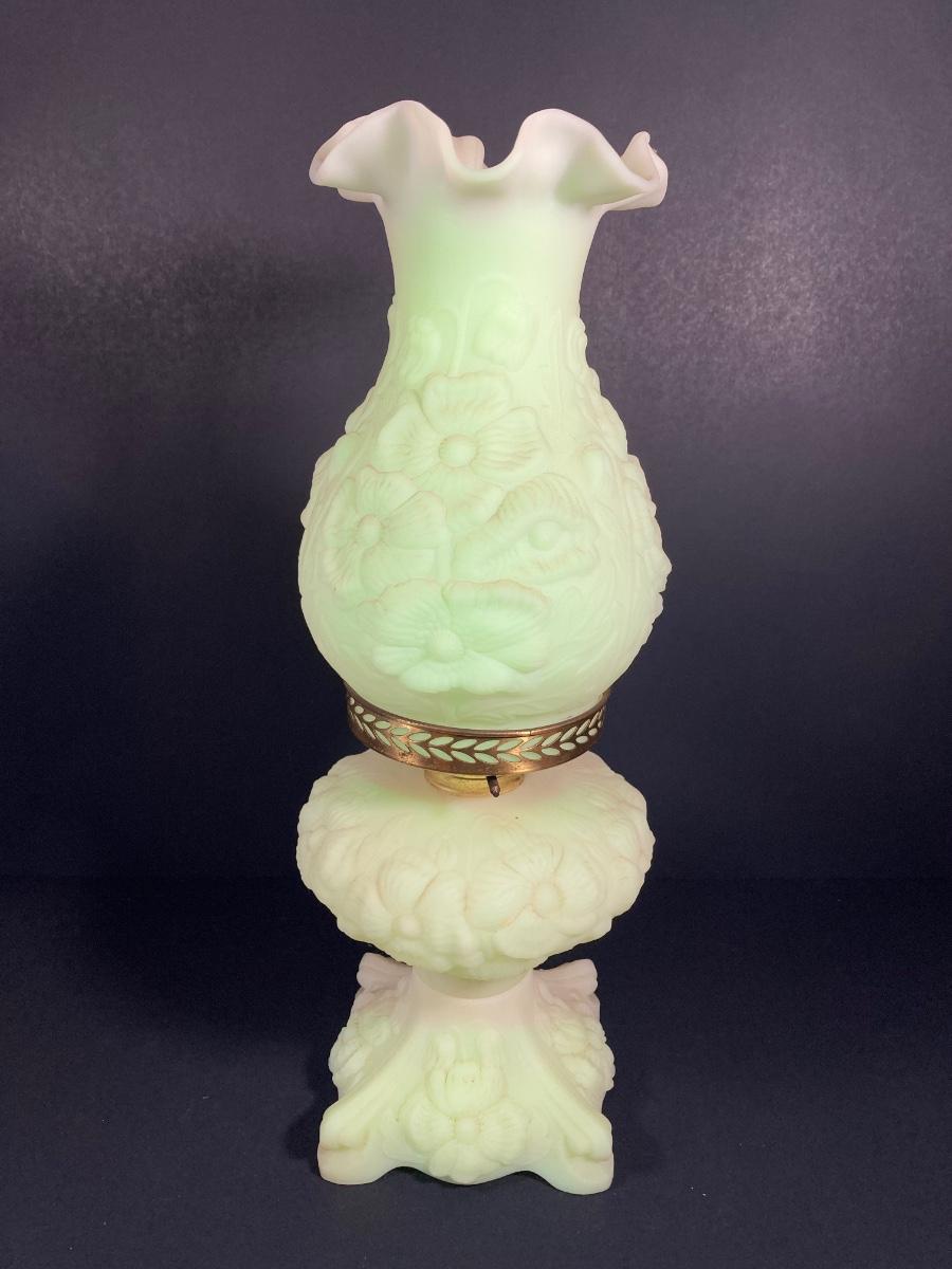 LOT 234: Fenton Uranium Custard Glass Gone with the Wind Poppy Lamp