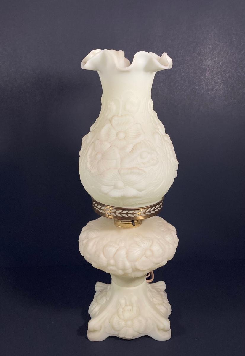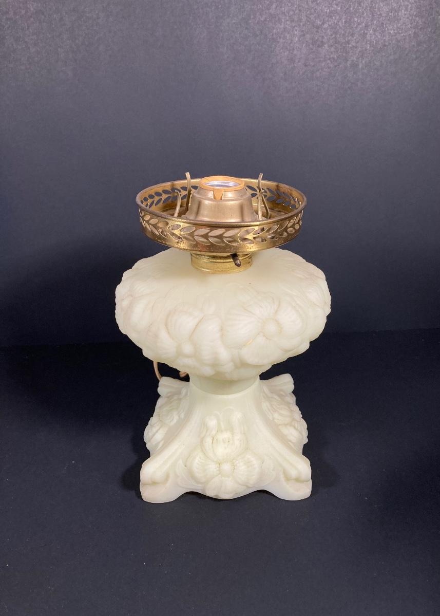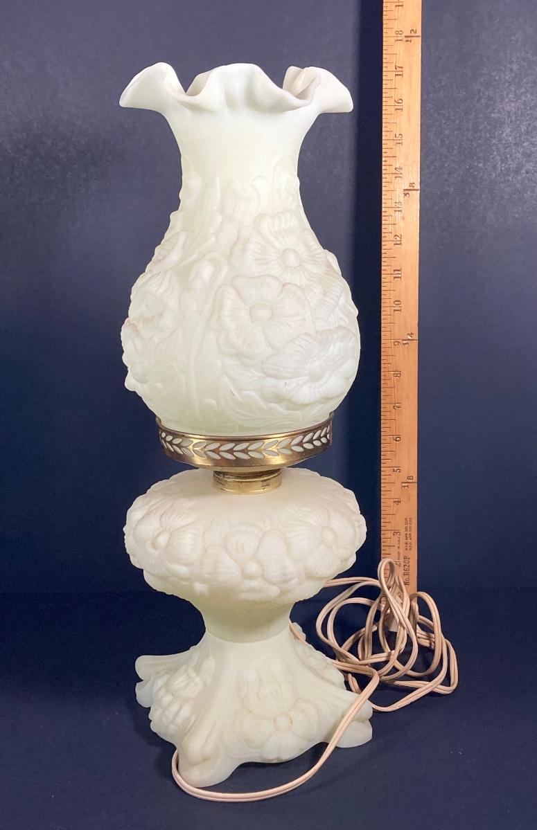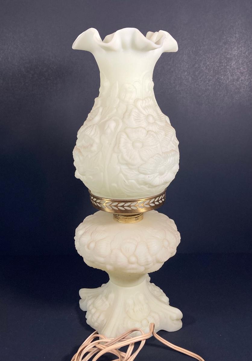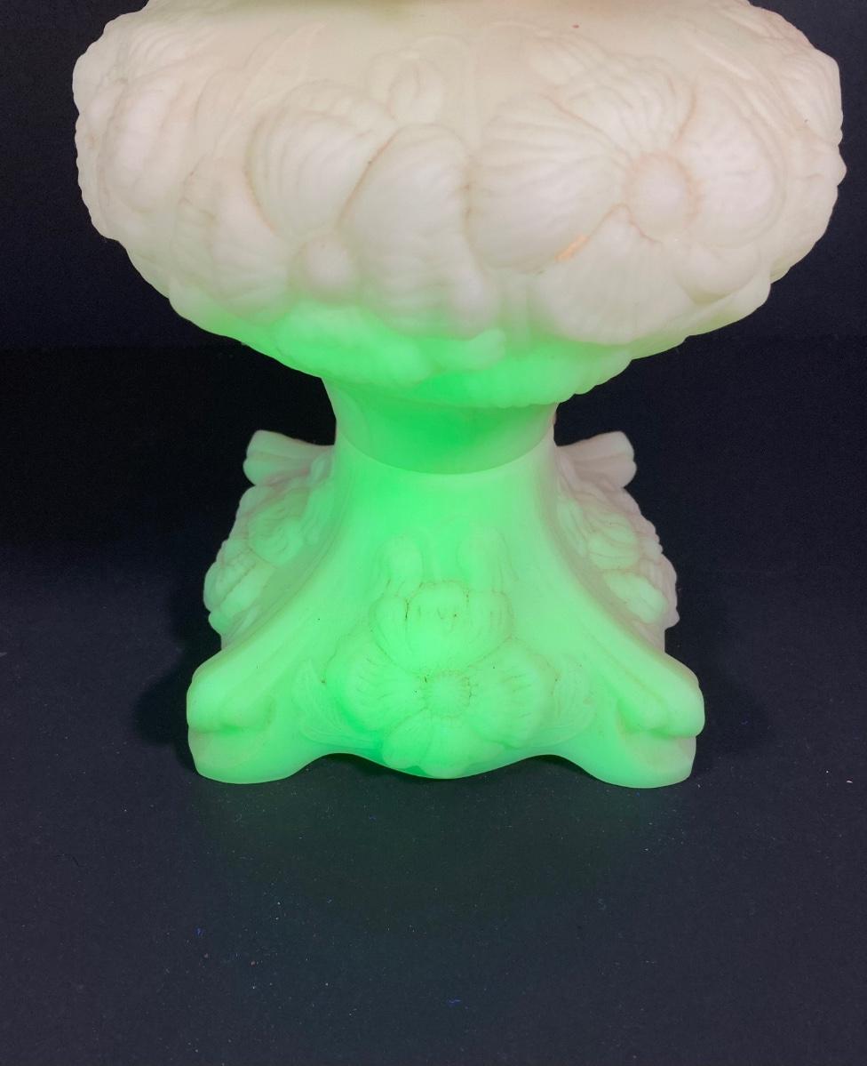 LOT 234: Fenton Uranium Custard Glass Gone with the Wind Poppy Lamp