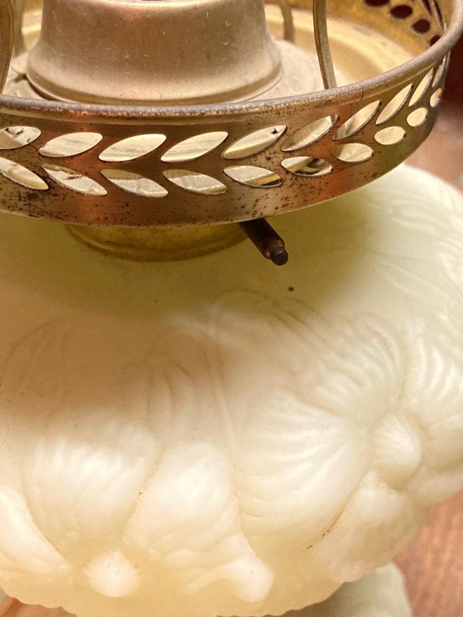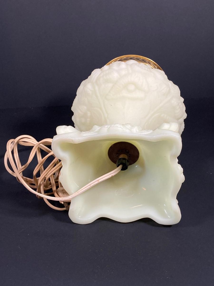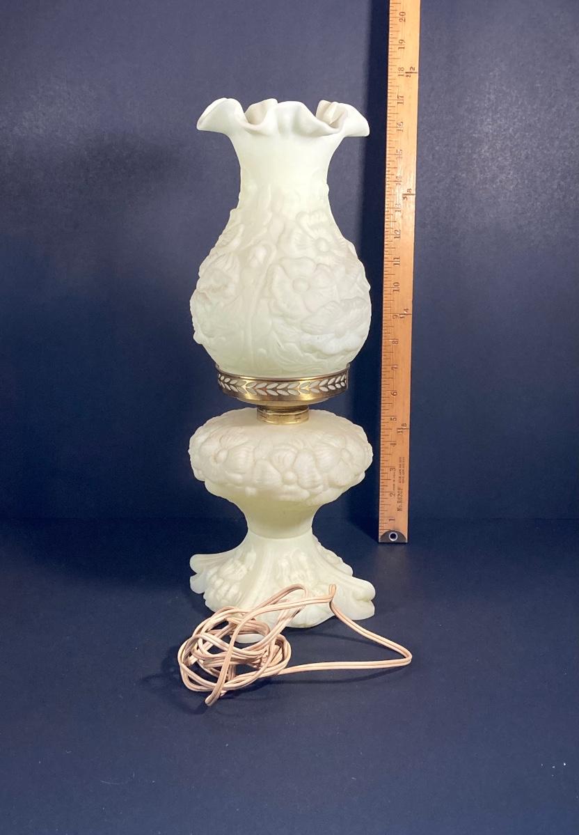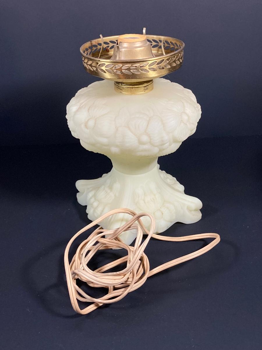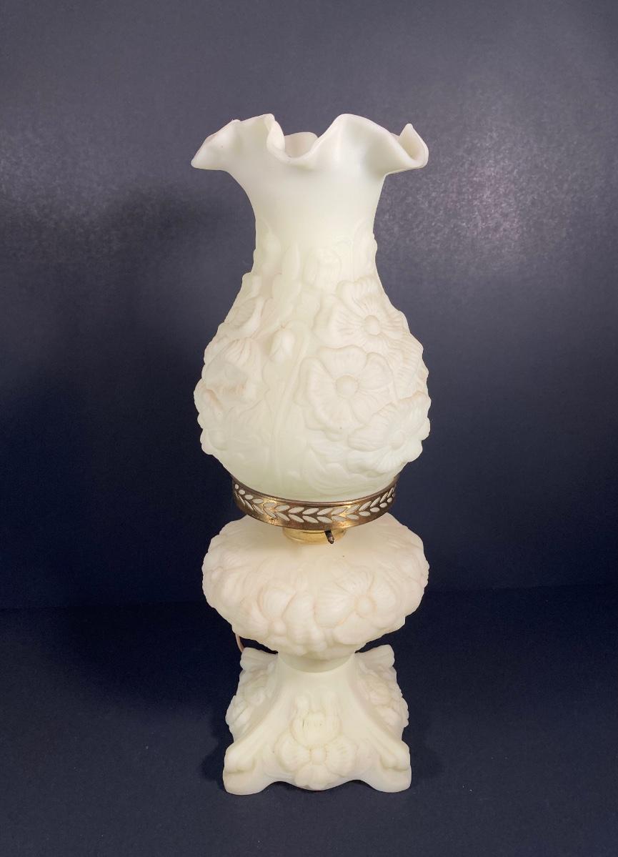 LOT 234: Fenton Uranium Custard Glass Gone with the Wind Poppy Lamp