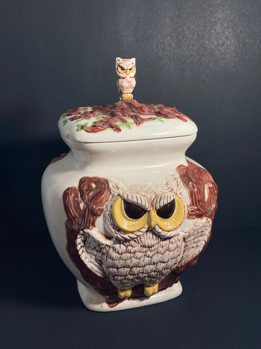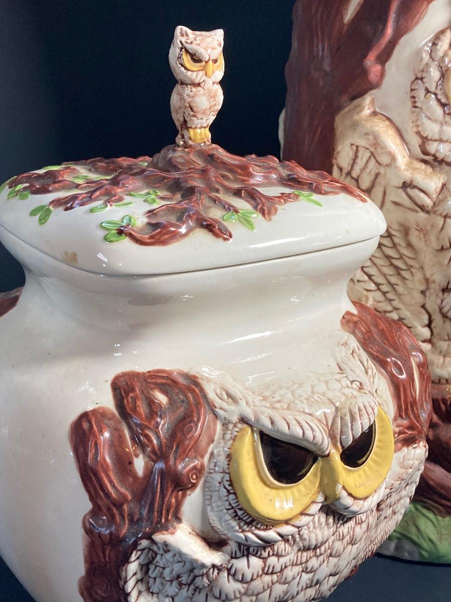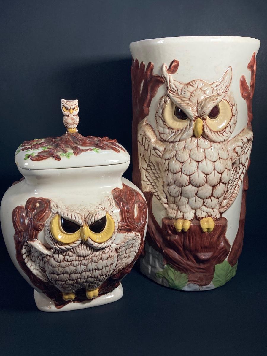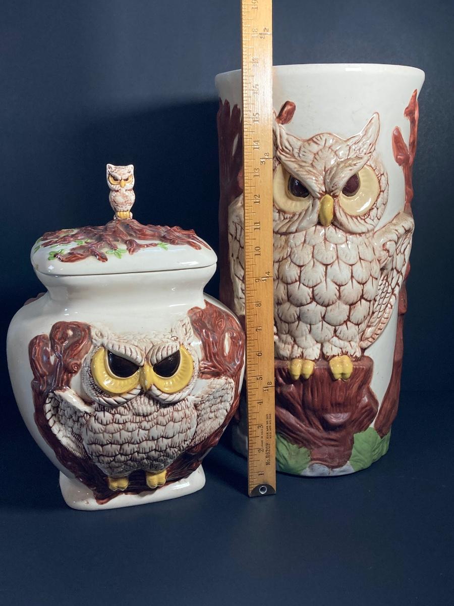 LOT 237: Vintage 70s Ceramic Owl Cookie Jar and Umbrella Stand