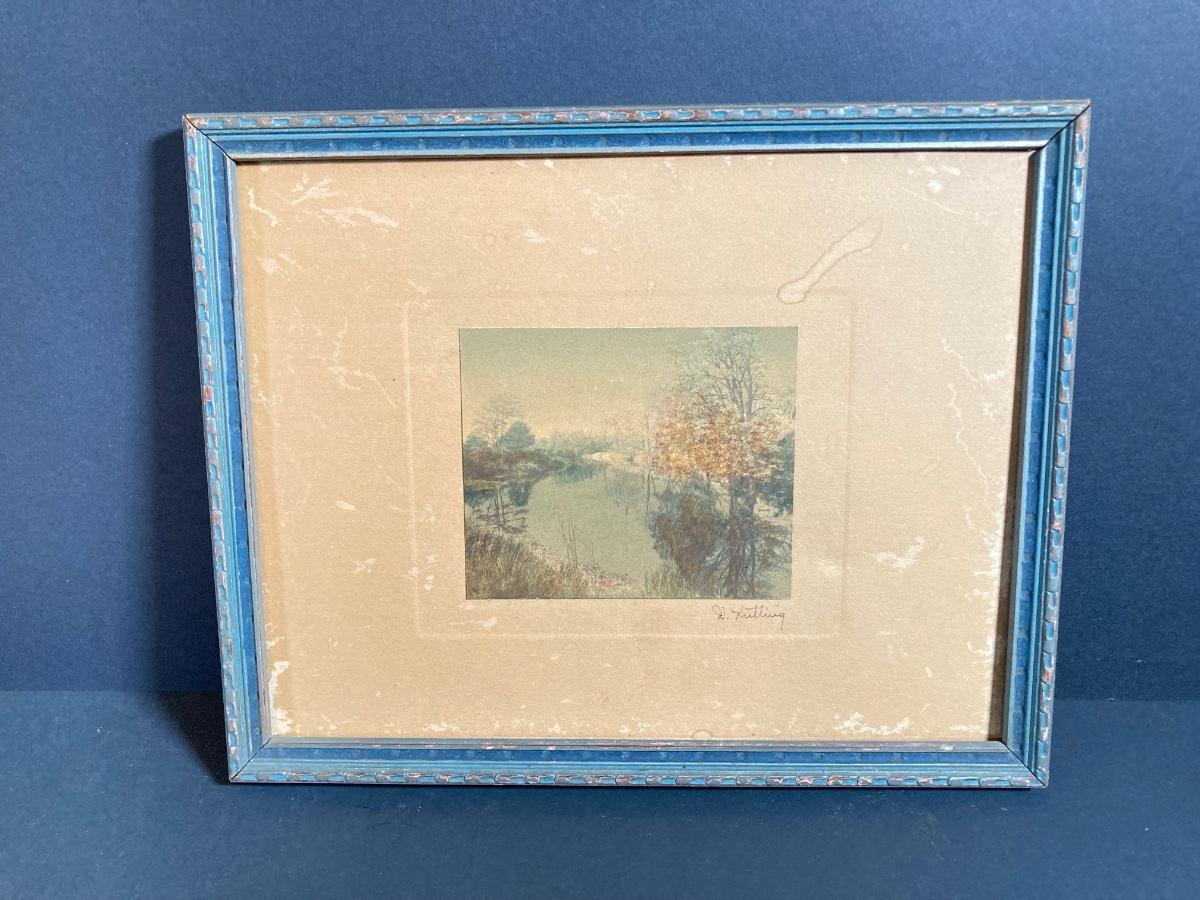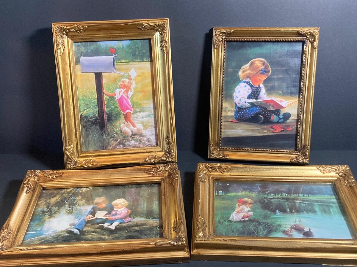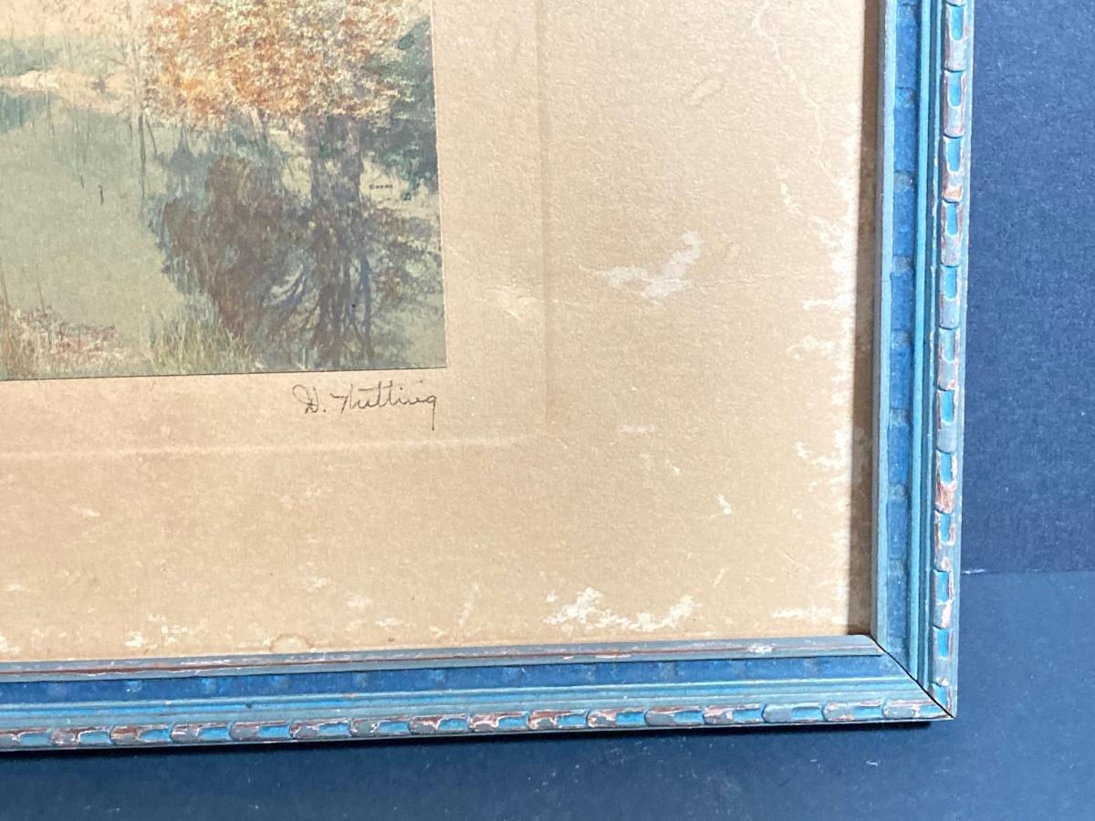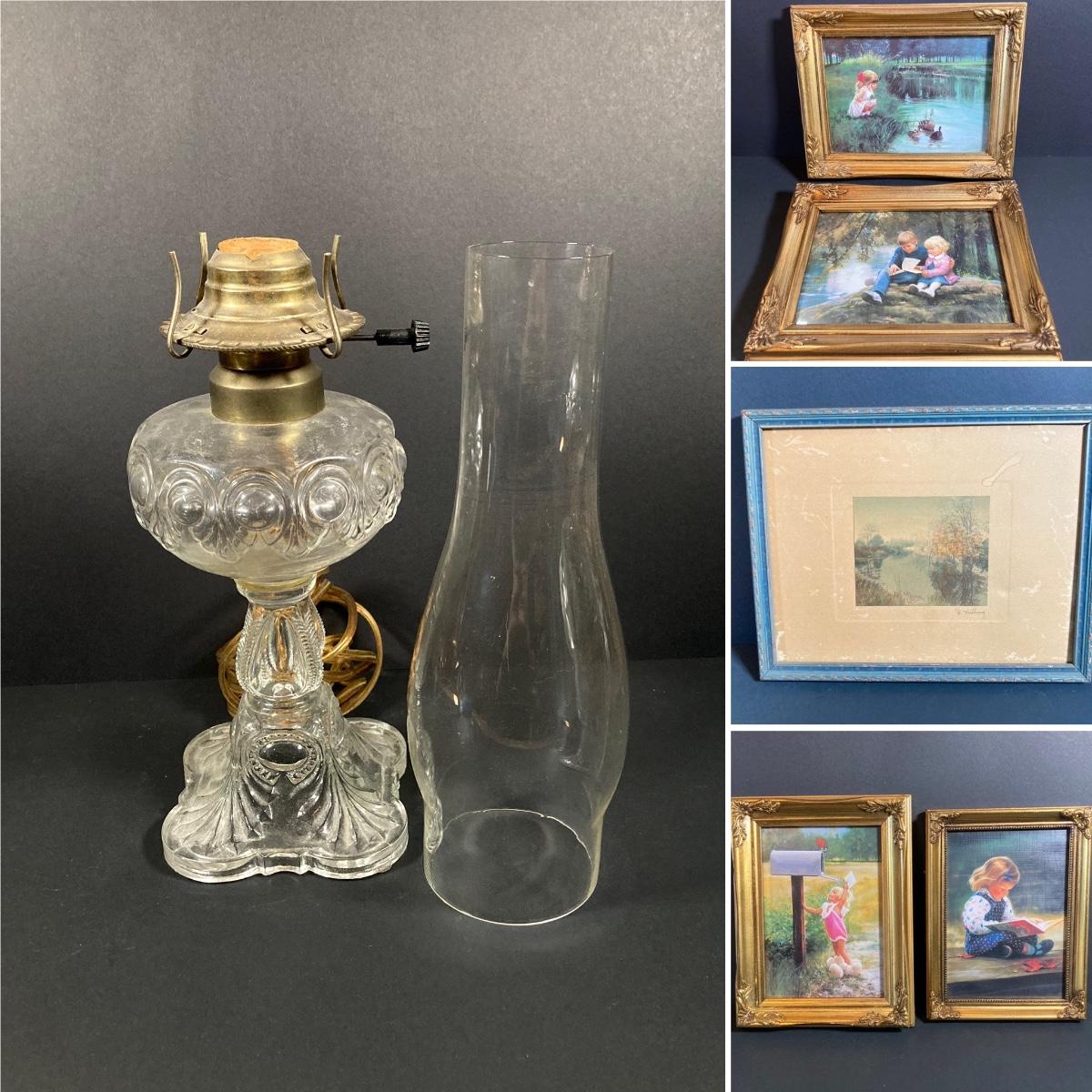 LOT 240: Vintage Glass Lantern Lamp, Vintage Wallace Nutting Wall Hanging and Four Donald Zolan Framed Prints