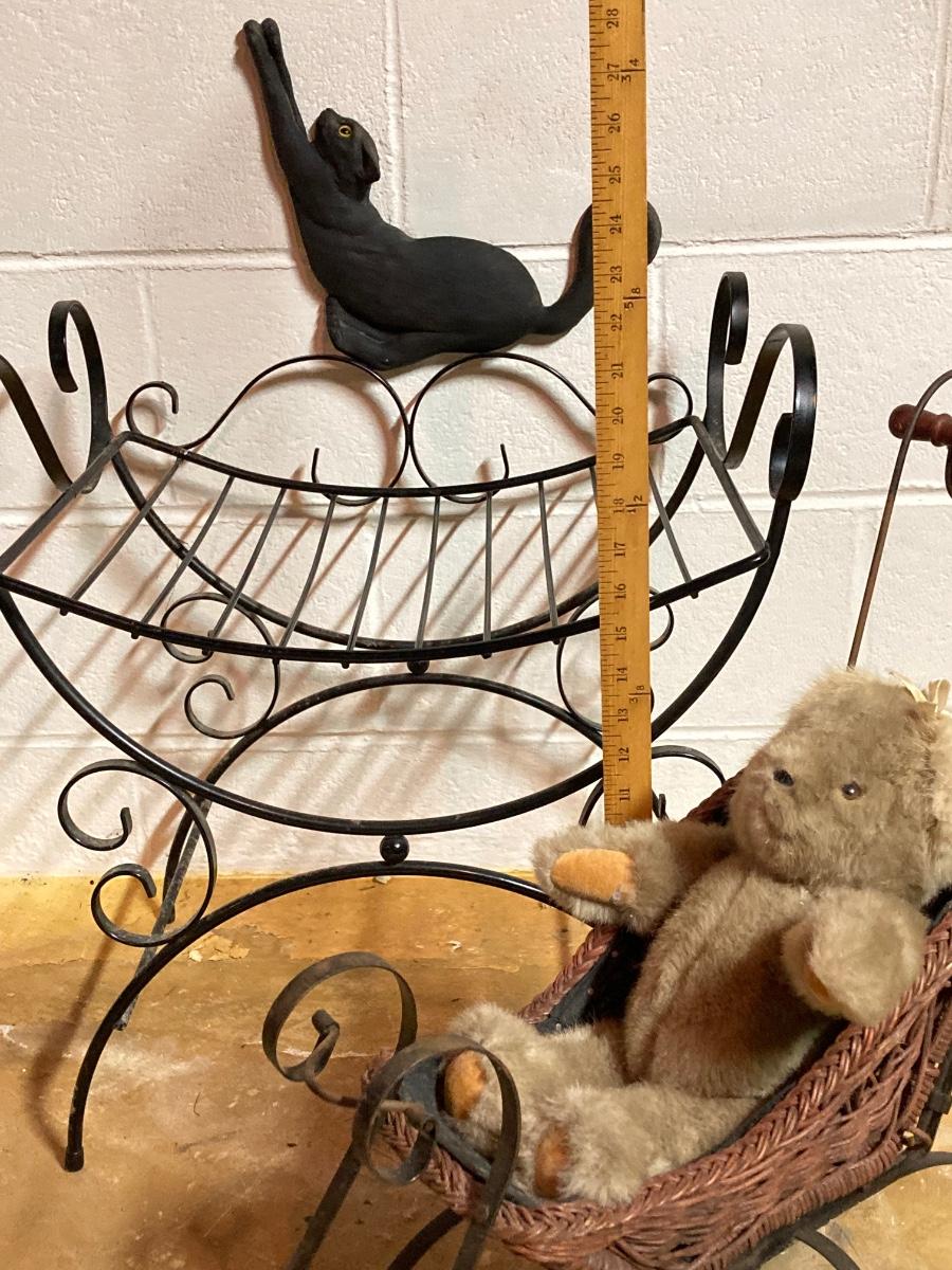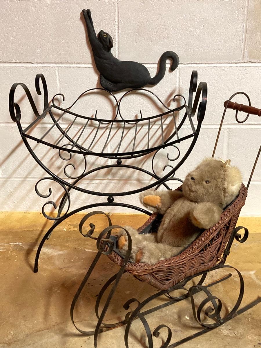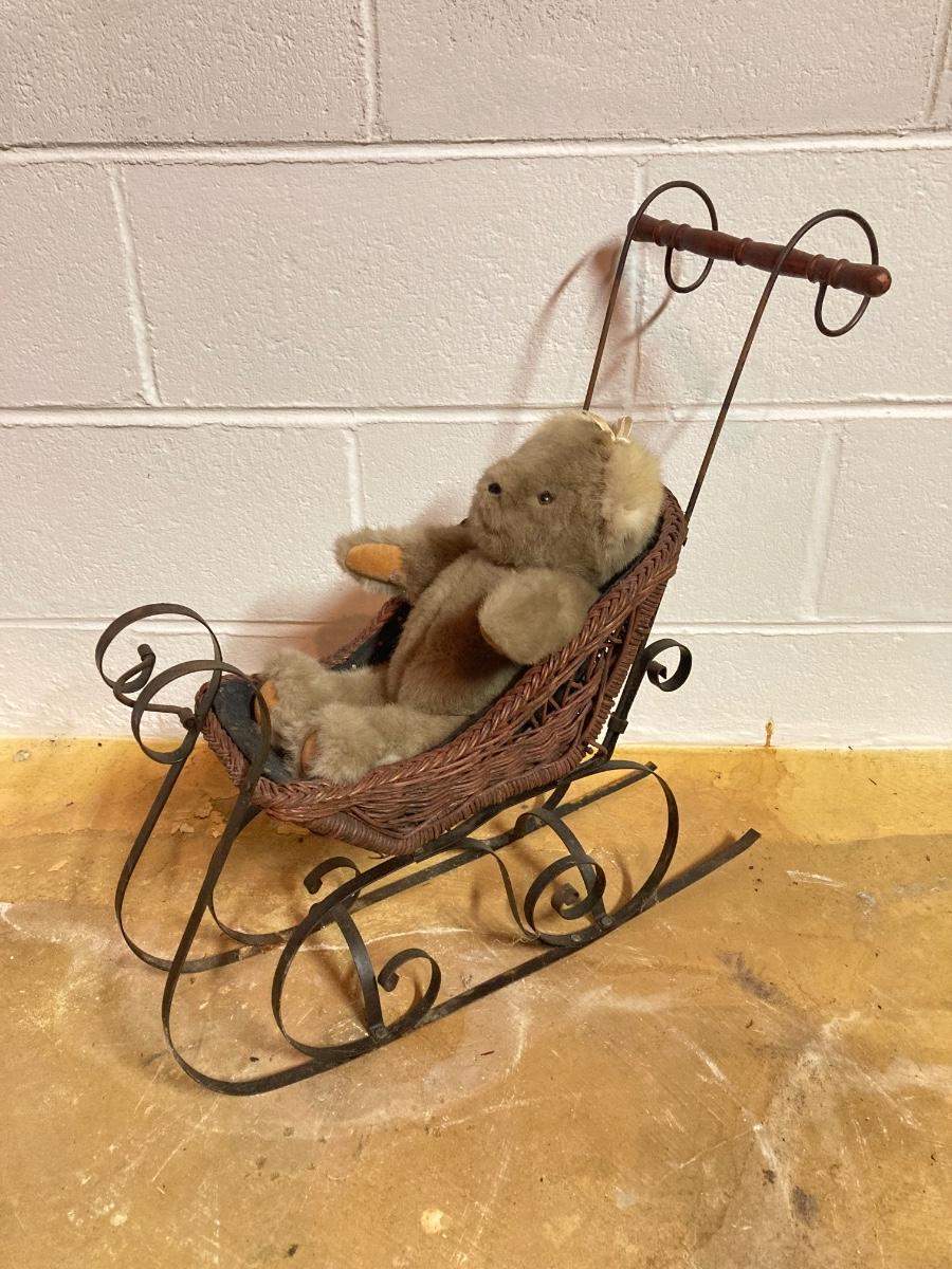 LOT 243: Vintage Metal Vanity Stool, Children's Decorative Doll Sleigh, Handmade Teddy Bear and More