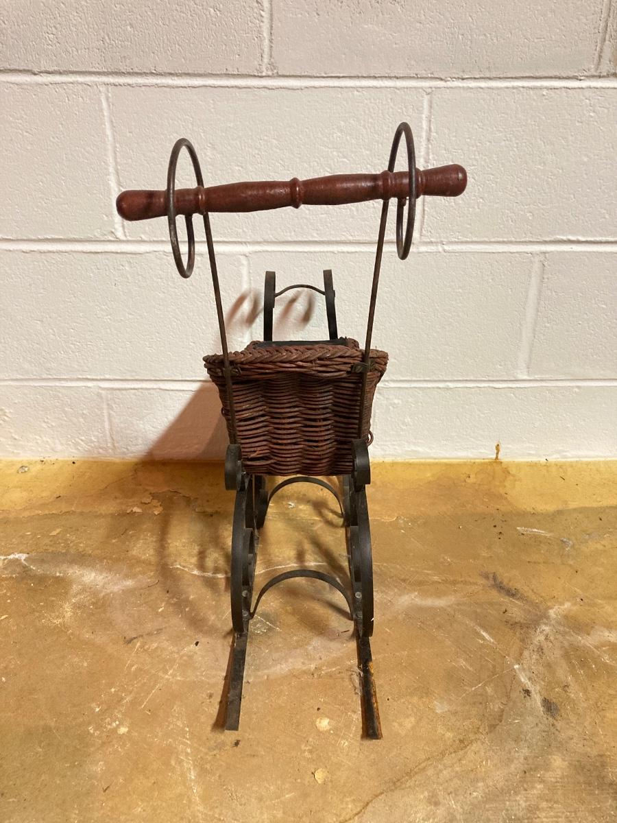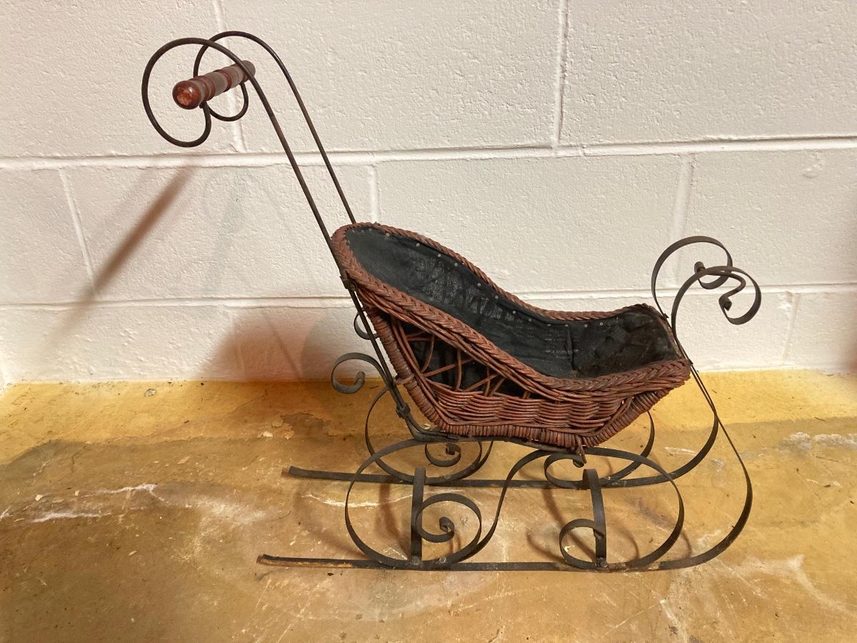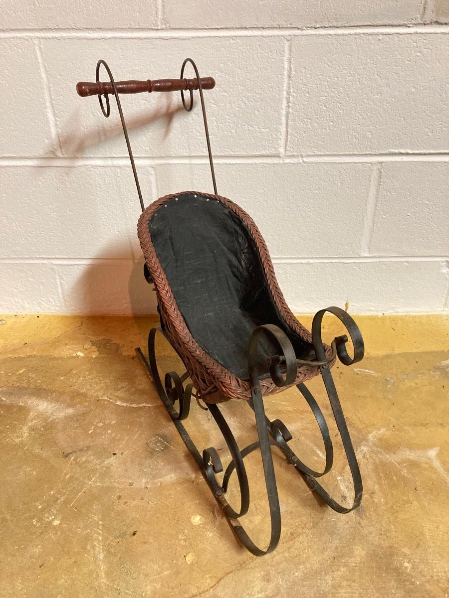 LOT 243: Vintage Metal Vanity Stool, Children's Decorative Doll Sleigh, Handmade Teddy Bear and More