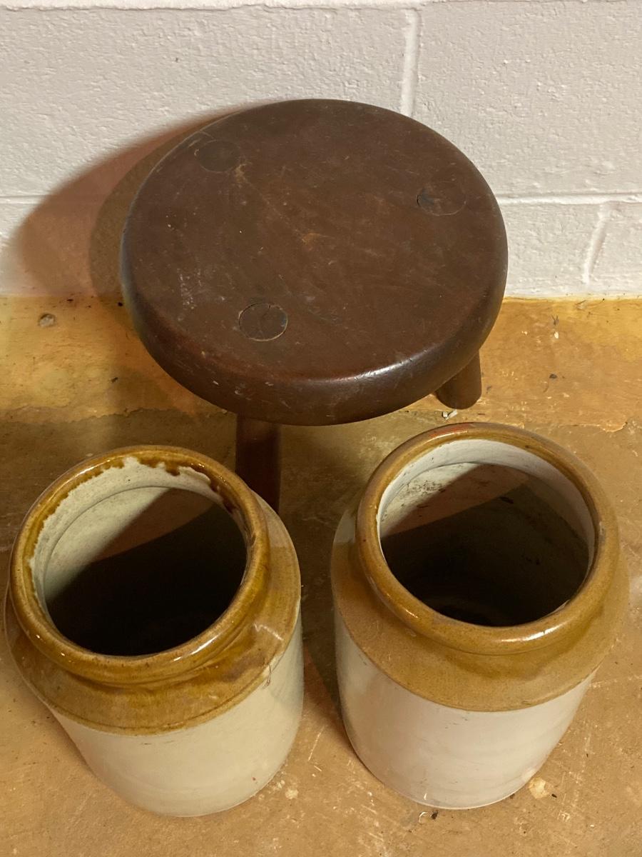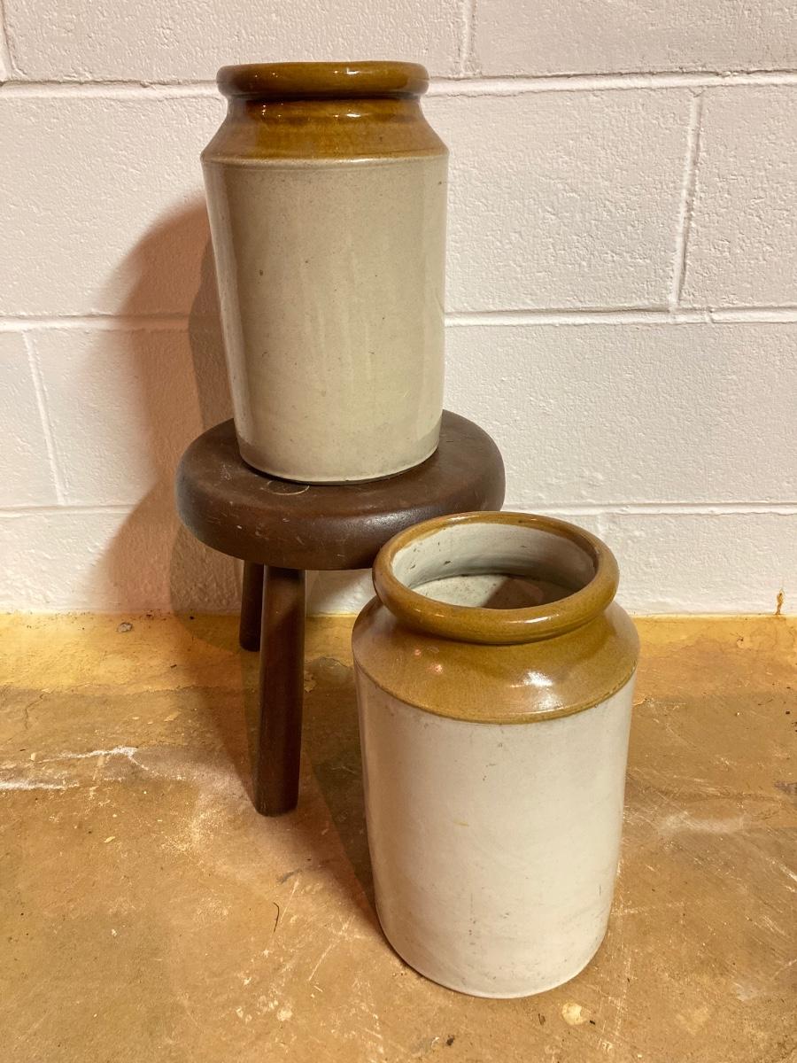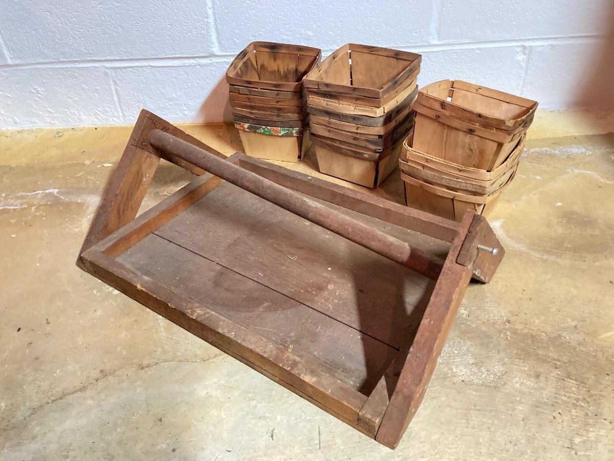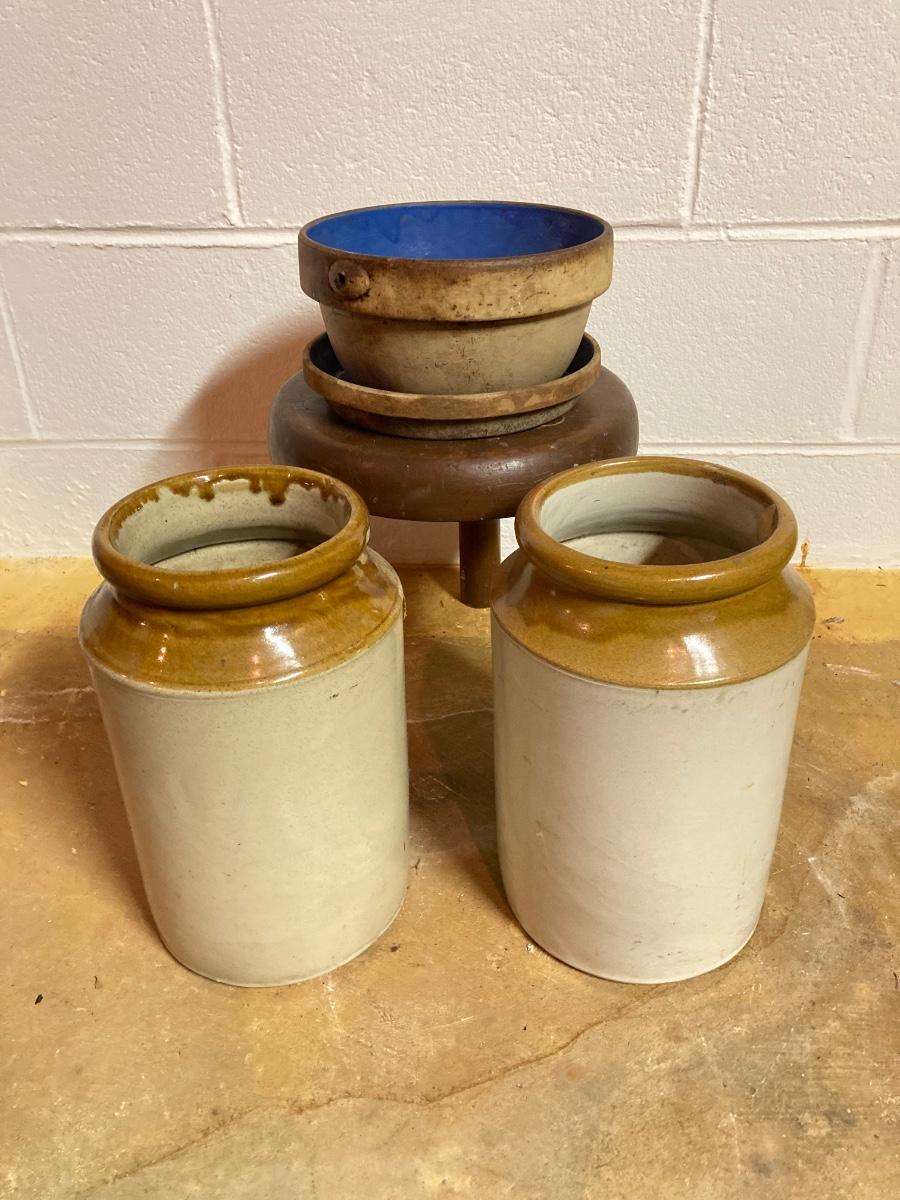 LOT 245: Vintage Farmhouse Collection - Cobalt Blue Ideal Pottery, Two Tone Stoneware, Wood Berry Crates and More