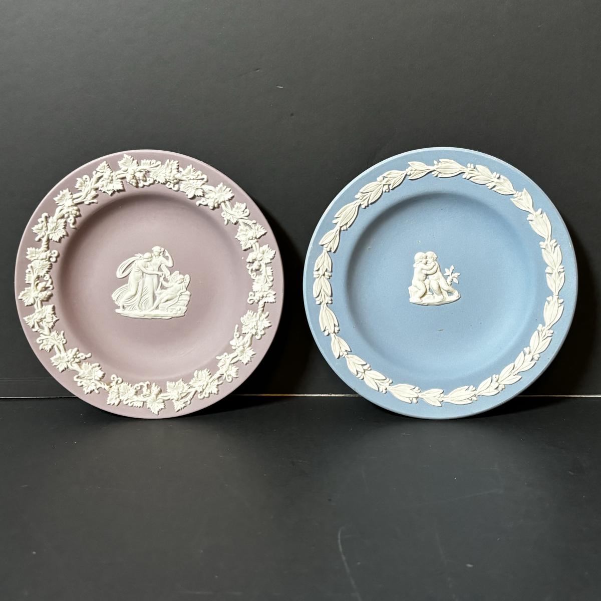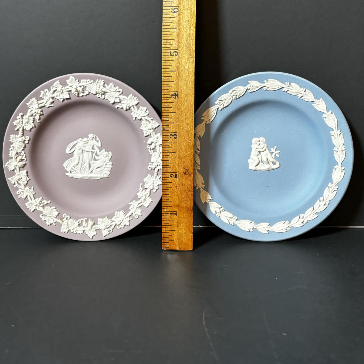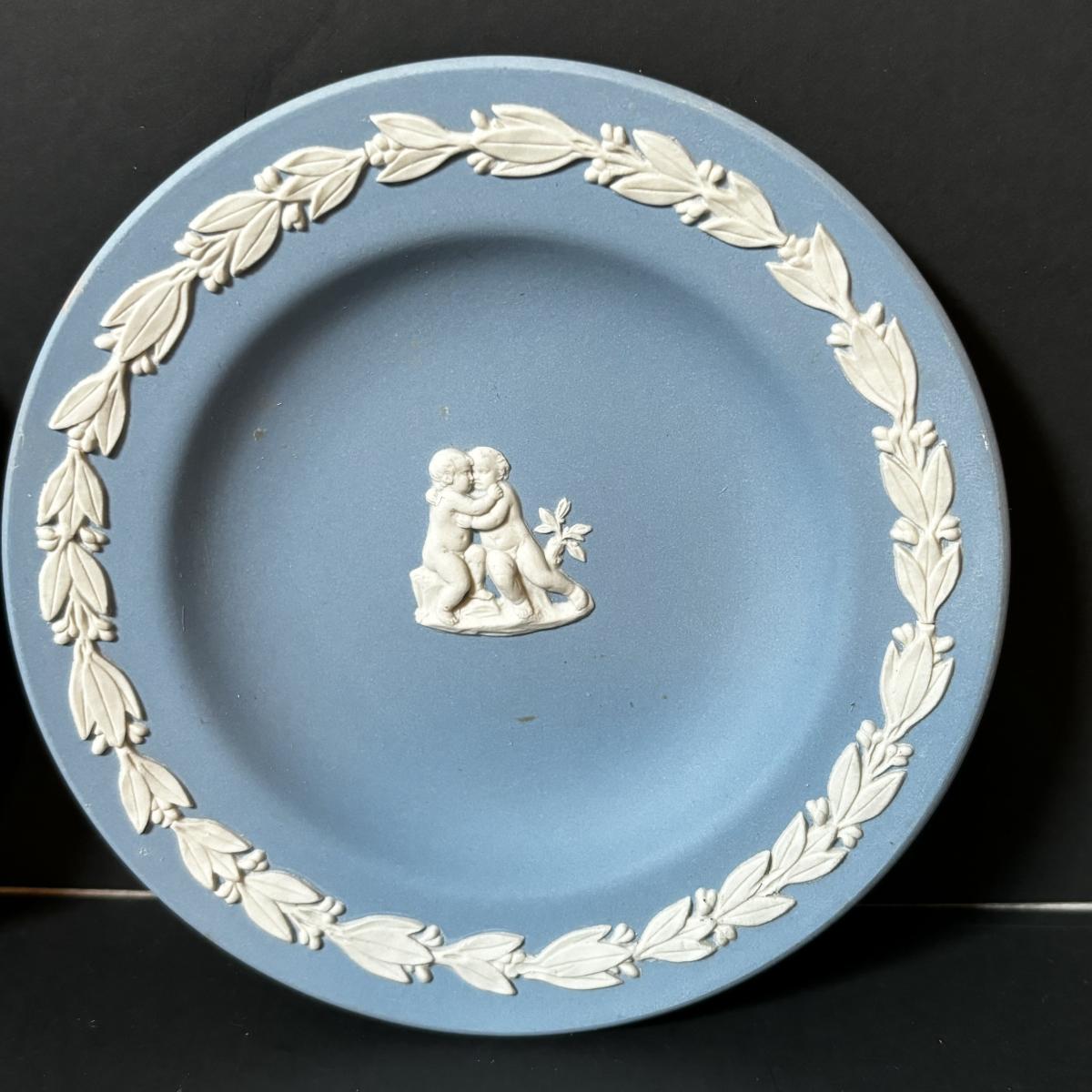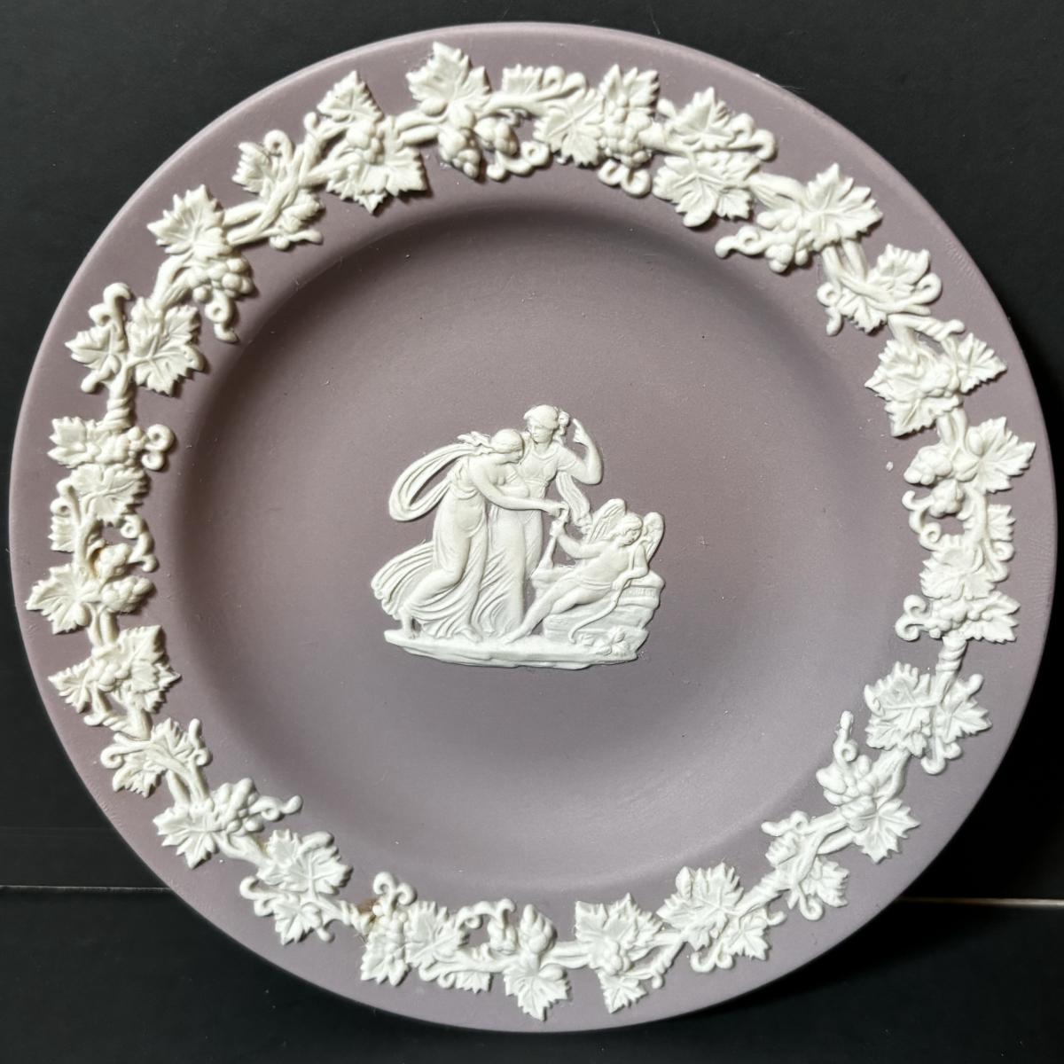 LOT 282: Westmoreland Mary Gregory Painted Skating Boy & Girl Black Glass Plates, Villeroy & Boch Mettlach Germany Wall Plaque Muttertag 1978w/Original Box, Wedgewood Trinket Box & Plaques