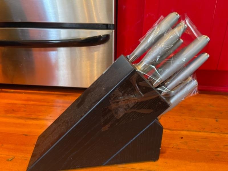 Lot 104K. Complete set of knives in block--$125