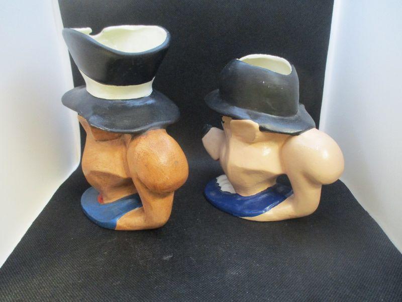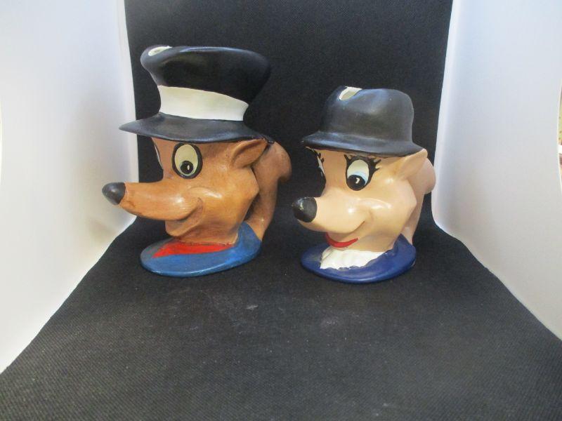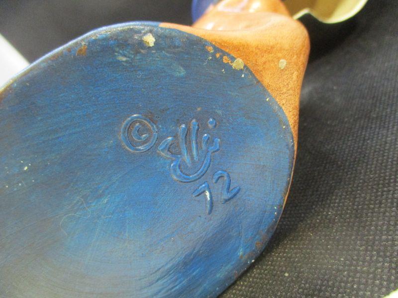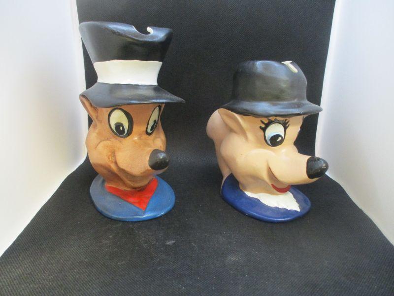 I'm not really sure if these are supposed to be mugs or pitchers. Mr. Fox is 6.5" tall and marked "Ellis 72". Mrs. Fox is about 5.5" tall and marked "1977 R. Ellis". Both are in very good condition.