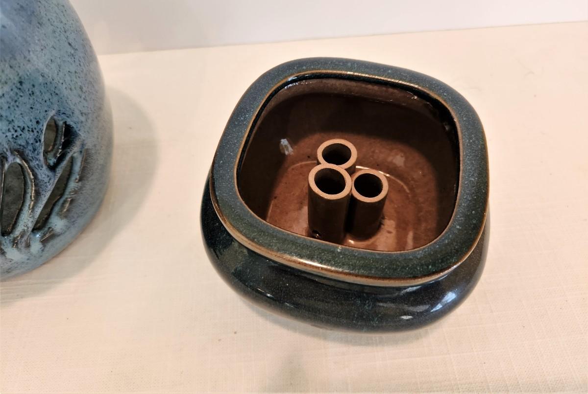 2 nice pieces of contemporary studio pottery - pierced vase (6.25" tall) and bud vase (2.75" tall) - no maker noted - good condition.