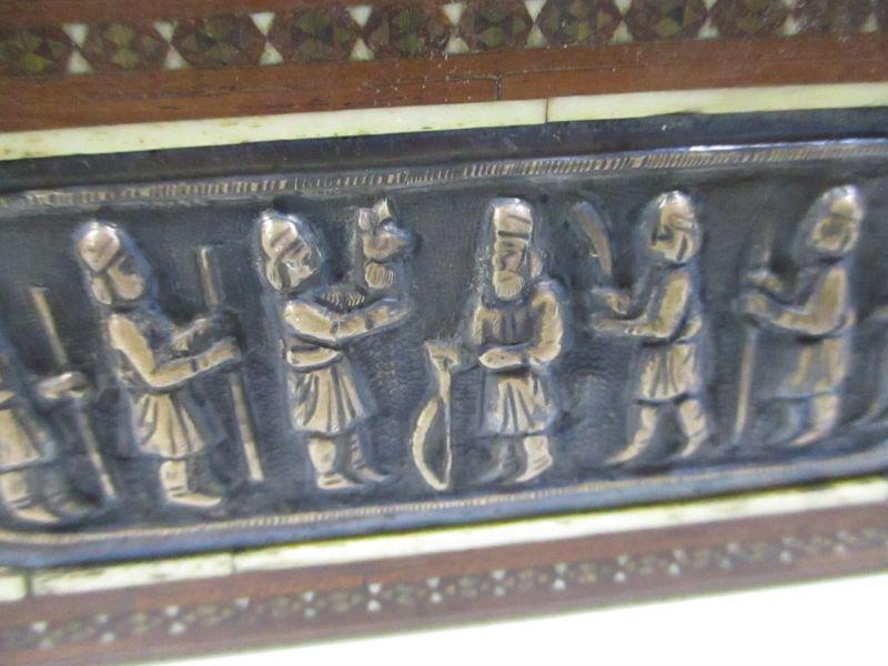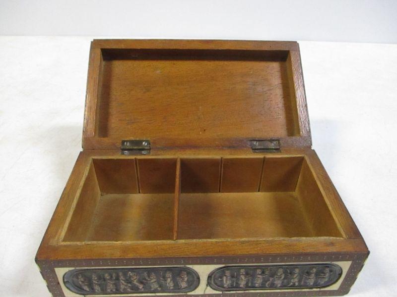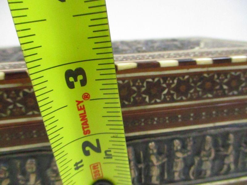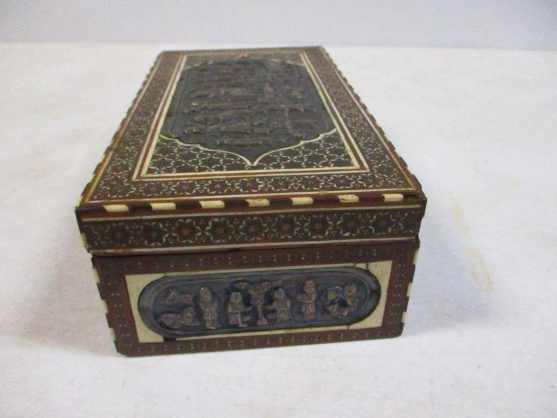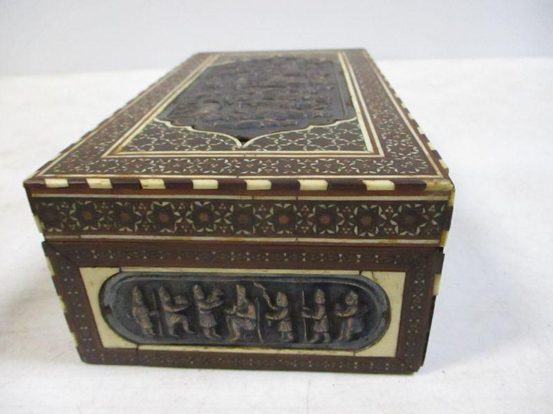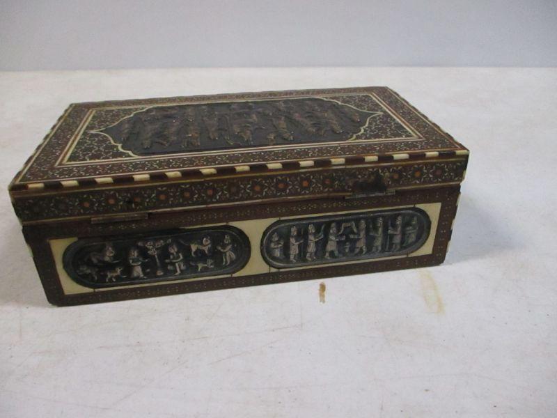 Lot 105 - Antique Hand Carved Box with Mother of Pearl Inlay 8"x3"