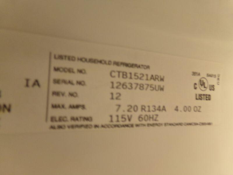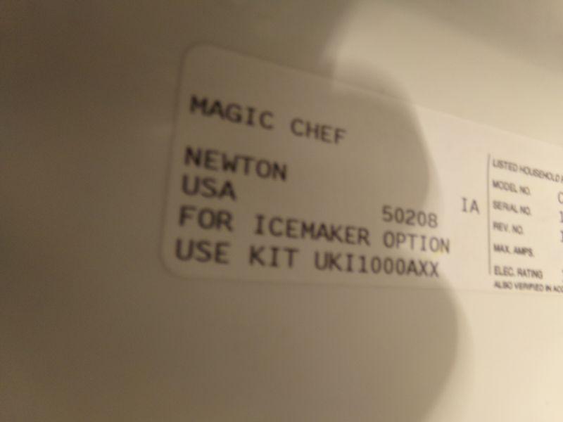 MAGIC CHEF GARAGE REFRIGERATOR. SET UP FOR AN ICE MAKER NOT INCLUDED