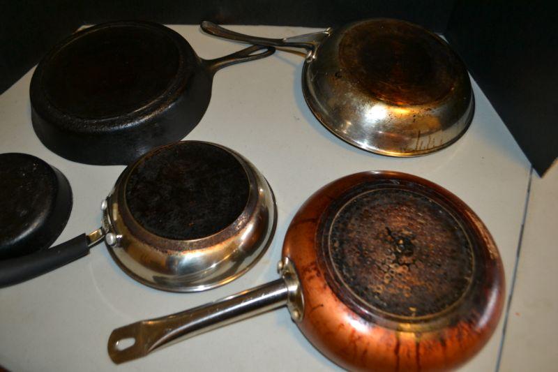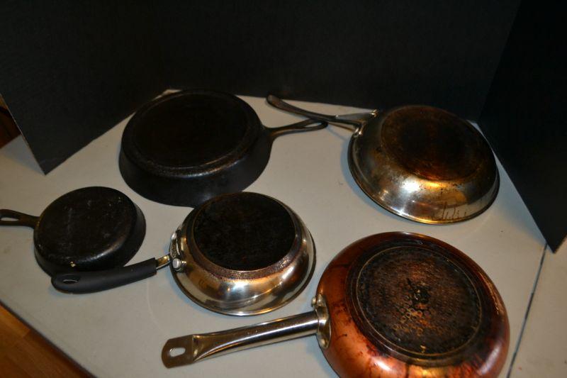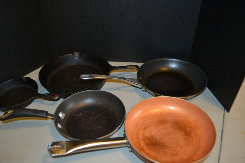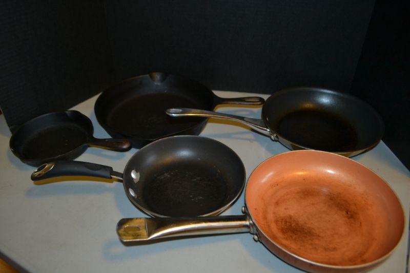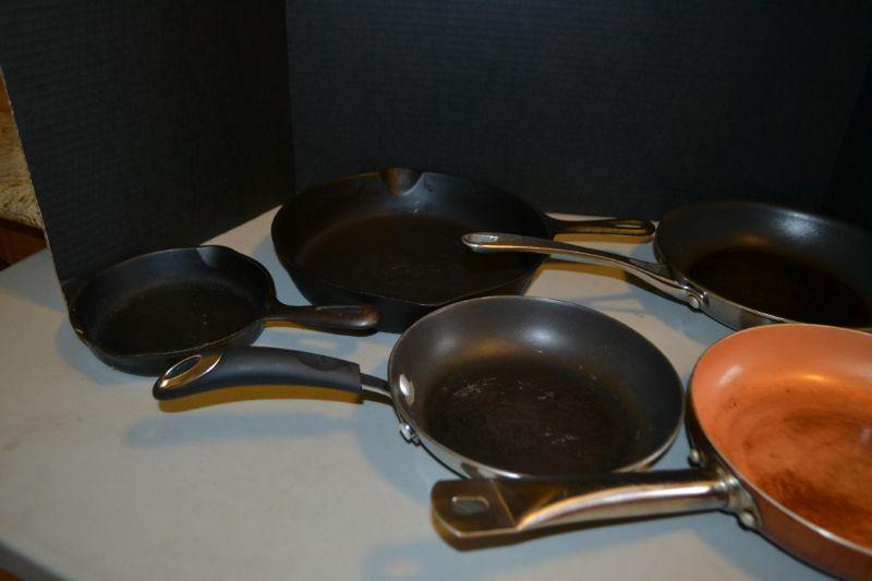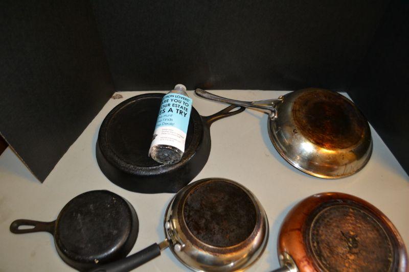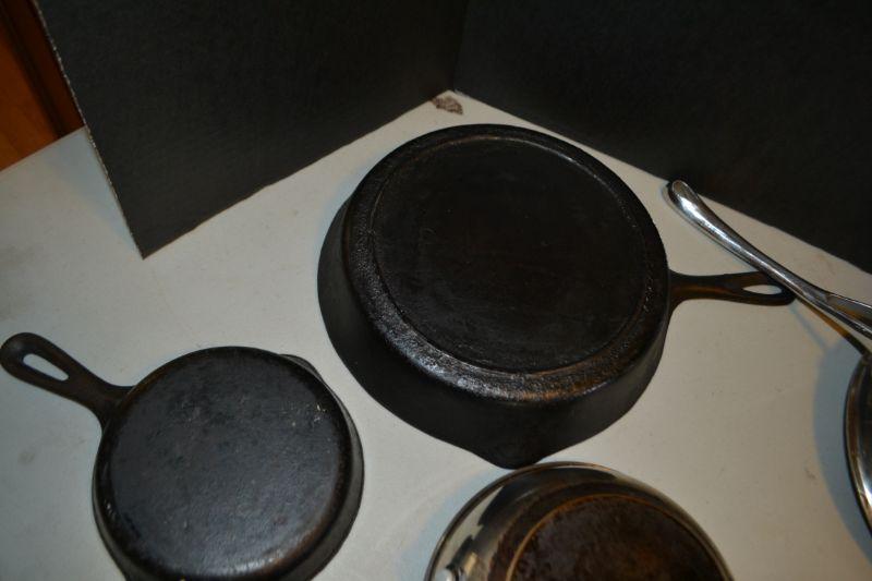 LOT 105 CAST IRON PANS PLUS OTHER PANS