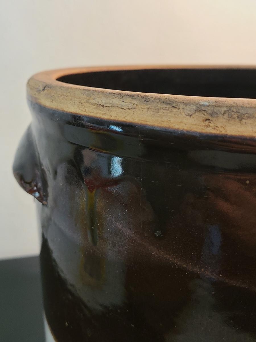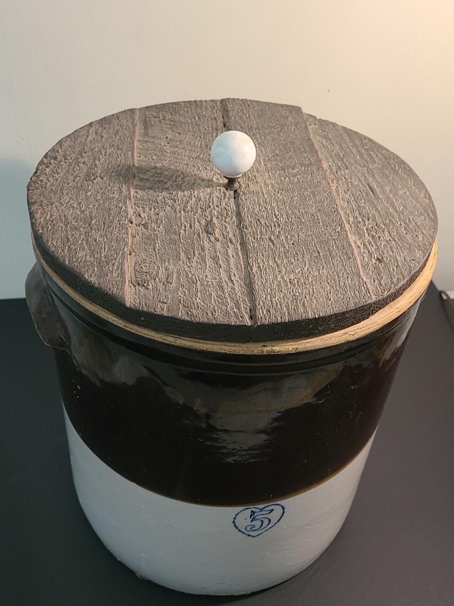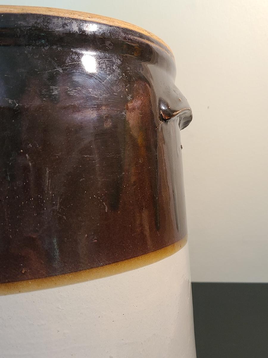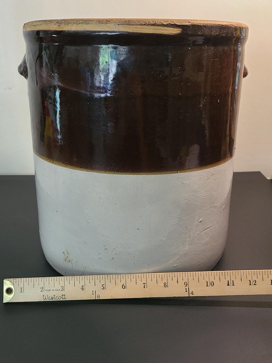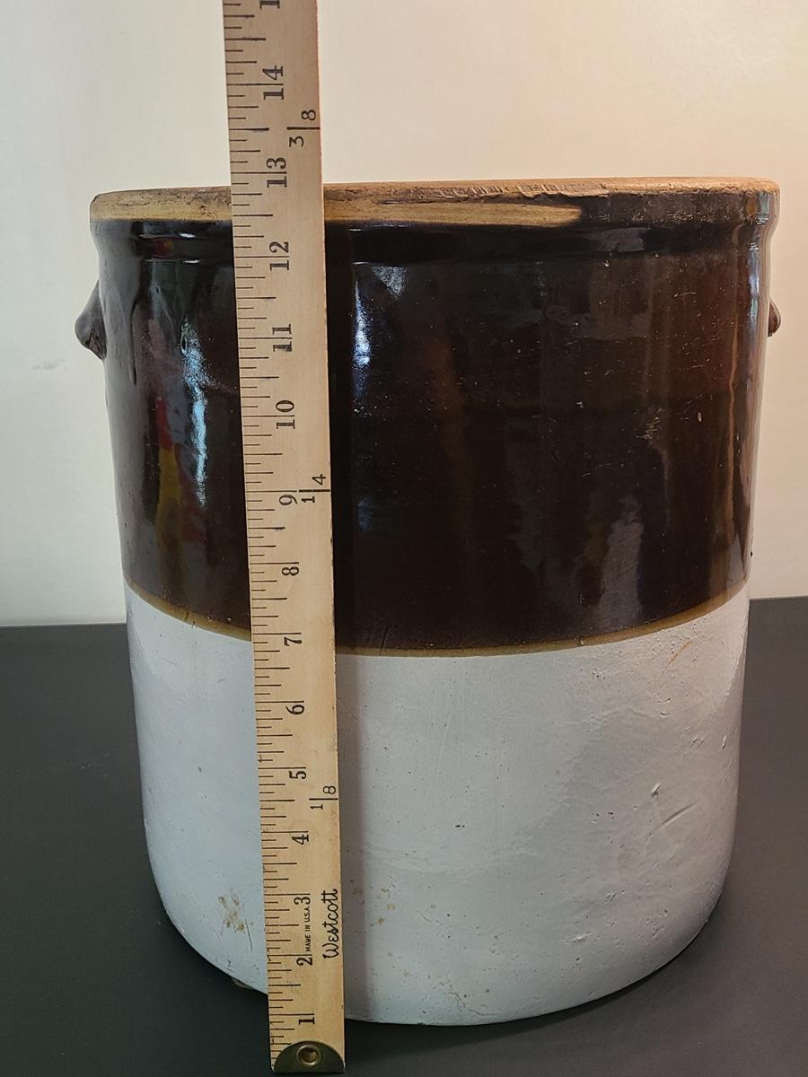 Research shows that this is most likely made but Burley and Winter Co, due to the heart emblem on front which is signature of the company. Otherwise this large crock is unmarked. The glaze is gorgeous and for its age this is in wonderful condition with only a chip in the bottom edge. It comes with a fitted wood lid that does not look to be original. Pictures are the best representation of the item in the lot, the condition of the items in the lot, and the size if measurements were taken. All items are sold as-is, since they are pre-owned and antiques. We are not experts and do our best to describe and pictures have been taken from every angle. Thank you for looking and have fun bidding.