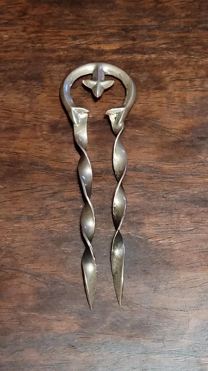 Lot 105: Very Rare! Navajo Sterling Squash Blossom Hair Pick
