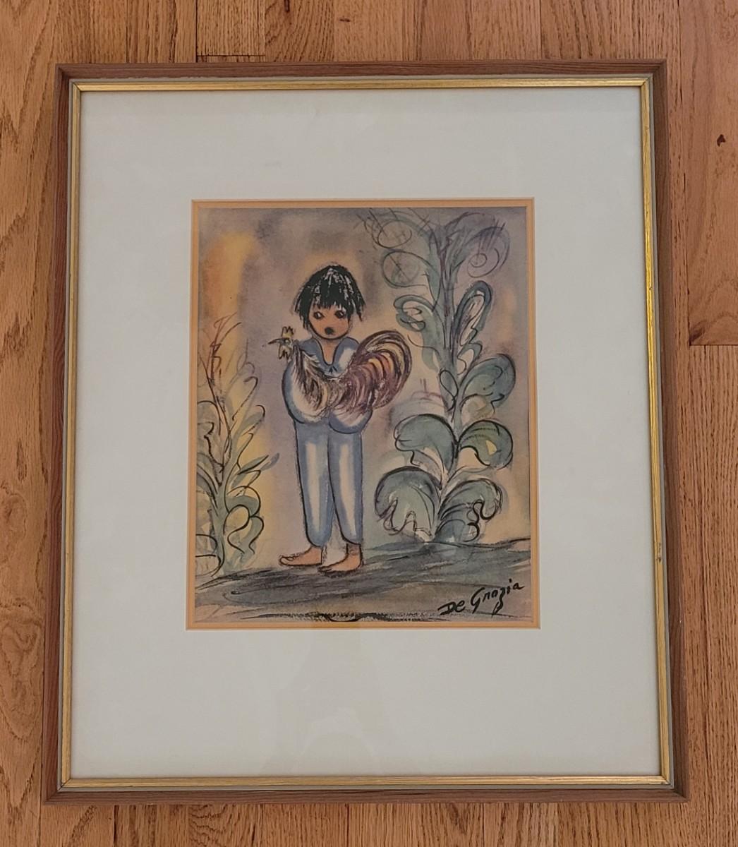 Lot 105: Vintage De Grazia Print of Boy with his Rooster