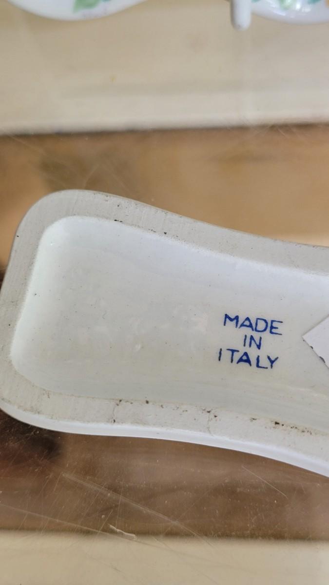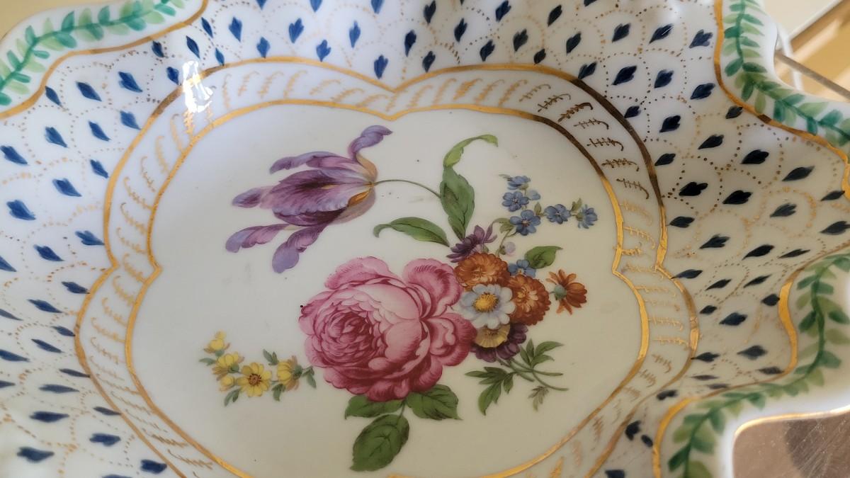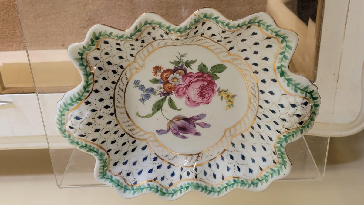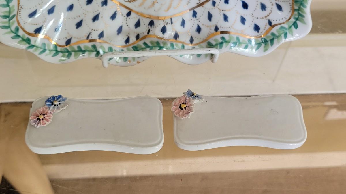 Lot 105: (2) Italian Porcelain Knife Rests and Gold Gilt Chelsea House Dish