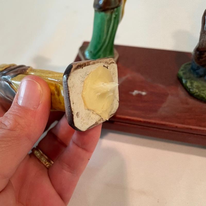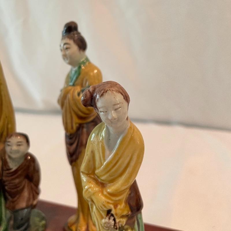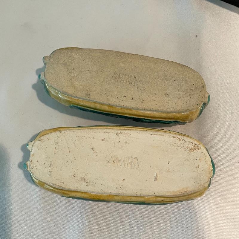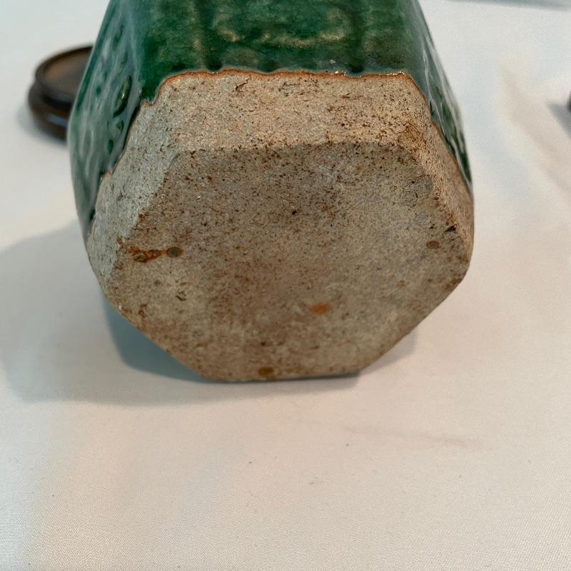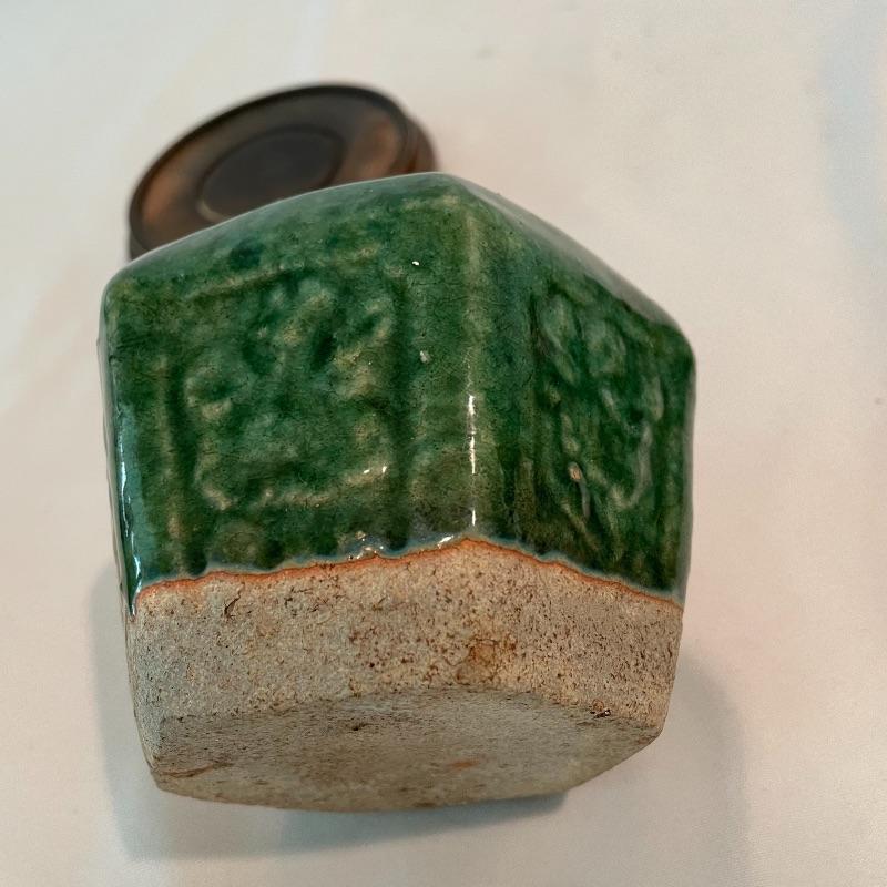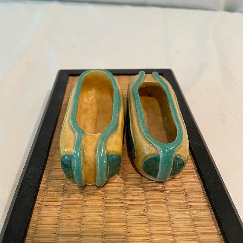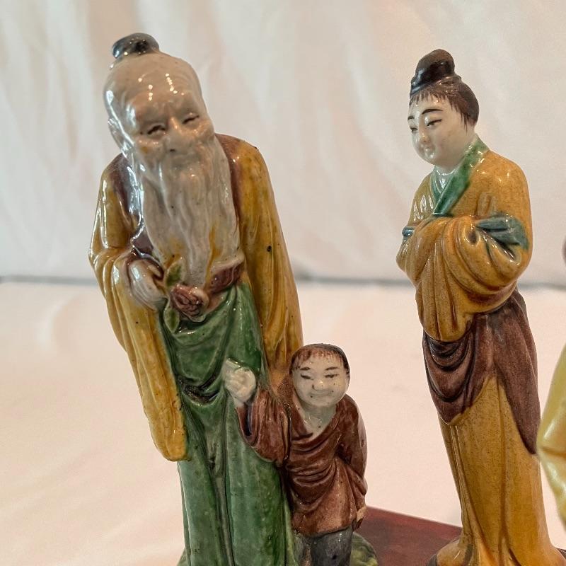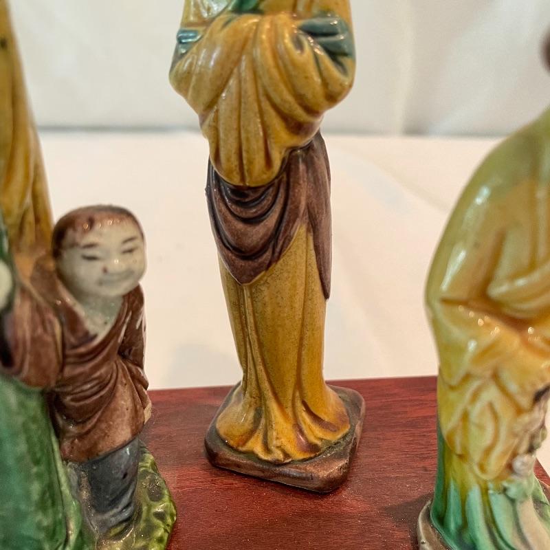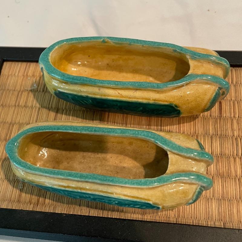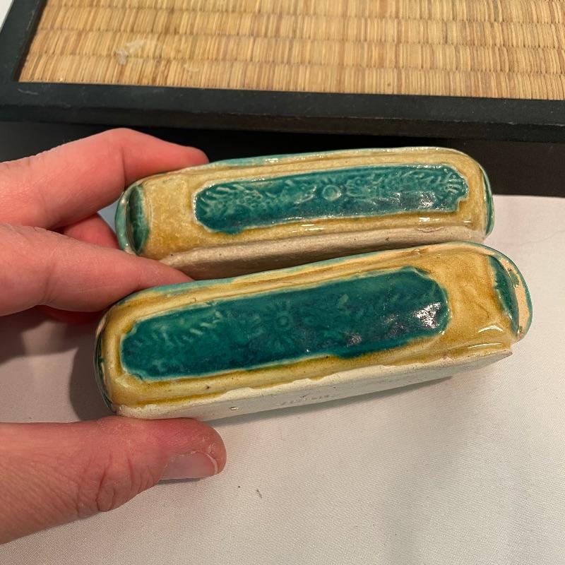 Here’s a lovely little collection of ceramics and stoneware. Three figures full of personality in a small size, the man is about 6” tall. Lot includes a beautiful yellow, black, silver colored porcelain ware bowl from both Japan and Hong Kong. A nice small 4” tall green planter and more. All stands in photos are included in lot. See photos, shipping available.