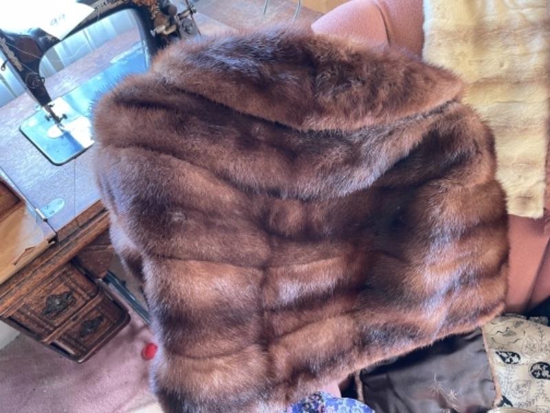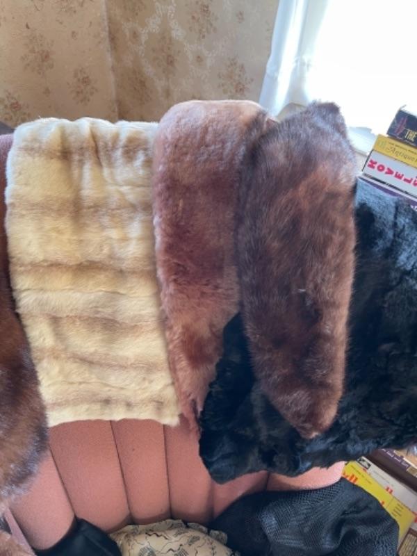Lot 105 B1. Mink stole, fur collars, scarves, shawl, and umbrellas (3 vintage, 3 new-- Was $75 - -NOW $37.50