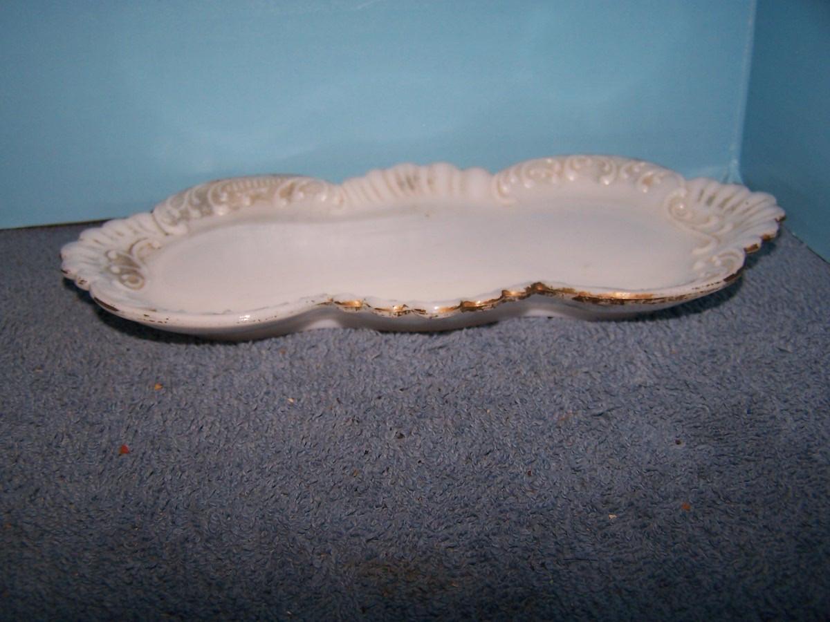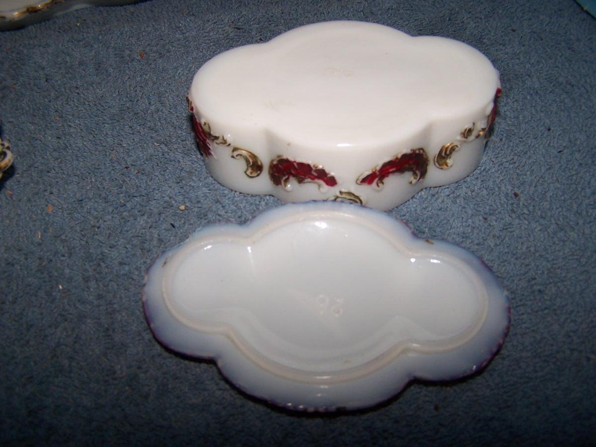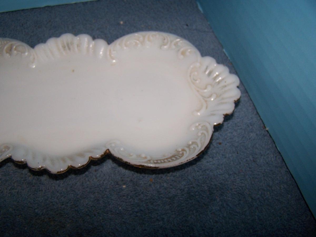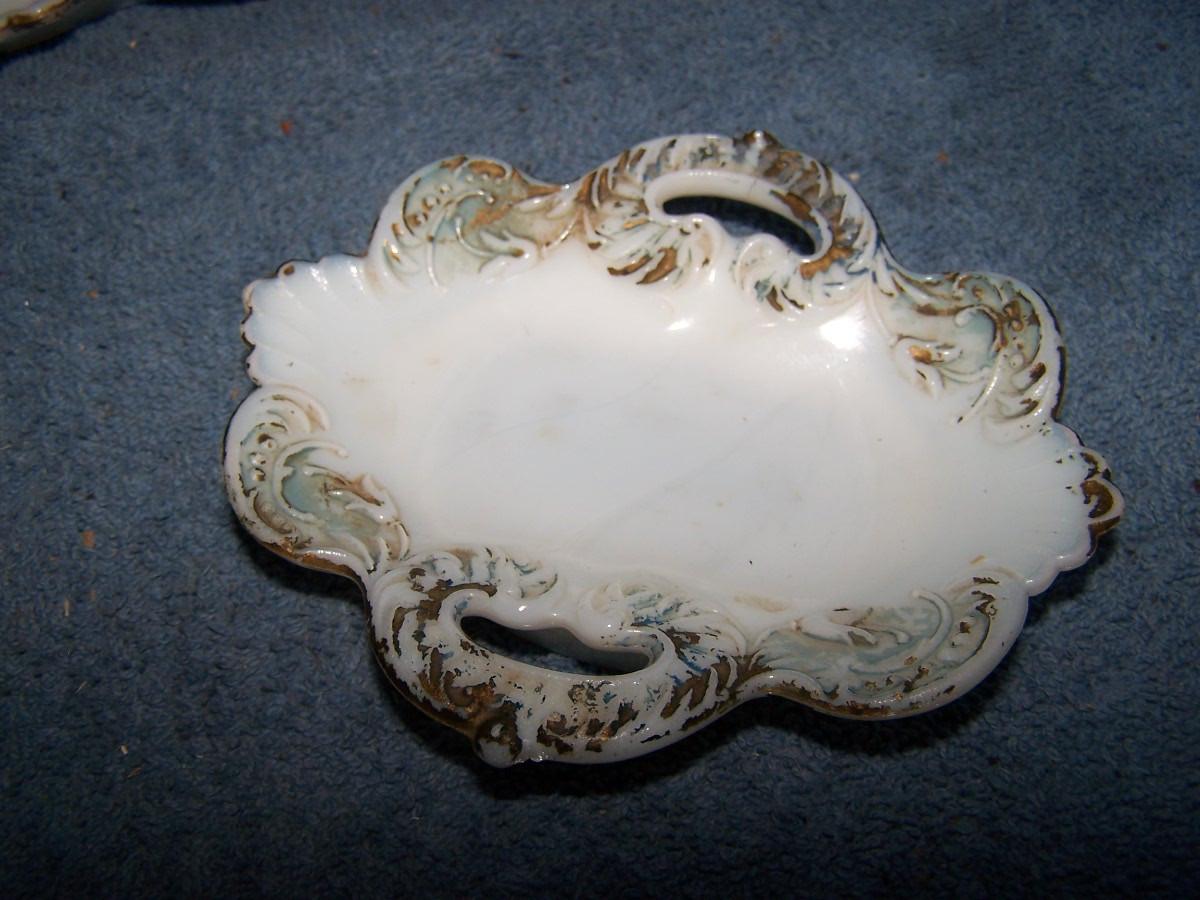 THESE ARE BEAUTIFUL VERY OLD MILK GLASS PIECES!!! SEVERAL ARE MARKED.. MATCHED DRESSER PIECES... SOME FLAKES, SOME PAINT GONE, OTHERWISE, LIGHT WEAR..