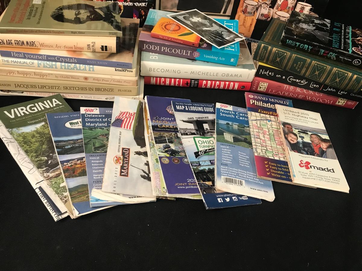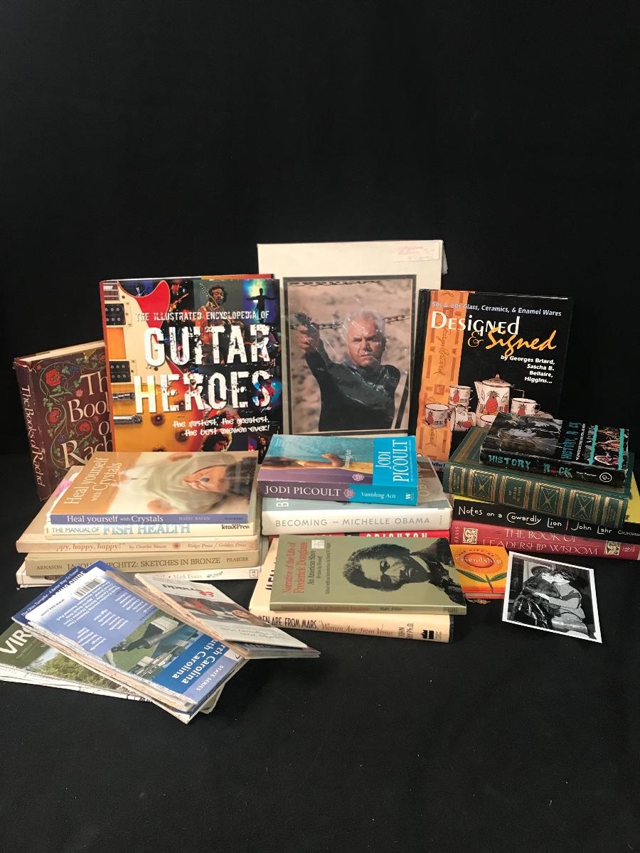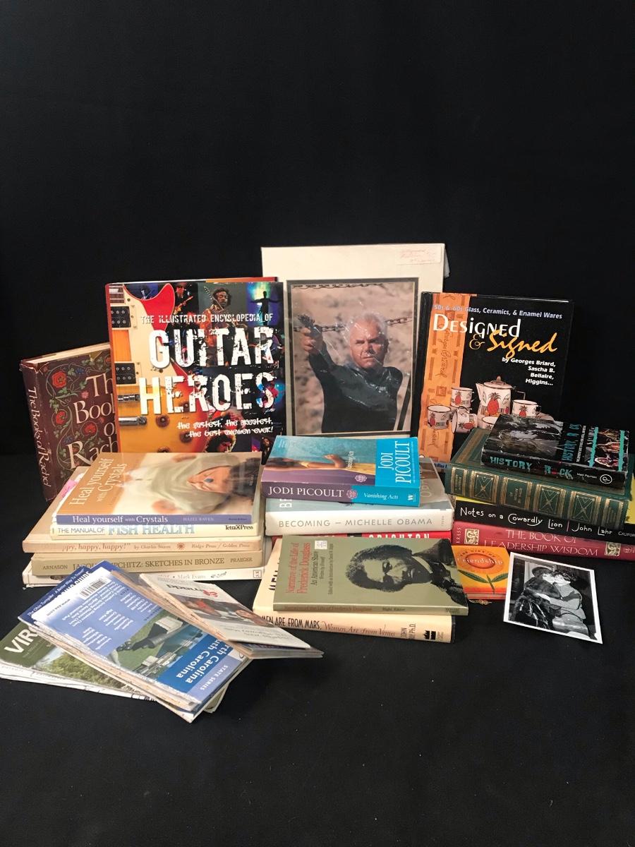 Big Lot Of Books & More. Photo of Malcom McDowell says it is autographed, but signature is barely visible.Please see all pictures as they are the best representation of the items. The pictures show condition, measurements if taken, and what is included in the lot. Due to the large amount that we photograph and the time frame, we are not always able to take measurements. All items unless noted, are pre-owned and have been used. If you purchased furniture, you must bring help. We do not allow one person to carry large furniture out on their own. Bring help, tools and a truck for the safety of our client’s homes, and your personal safety. Company policy. Thank you.