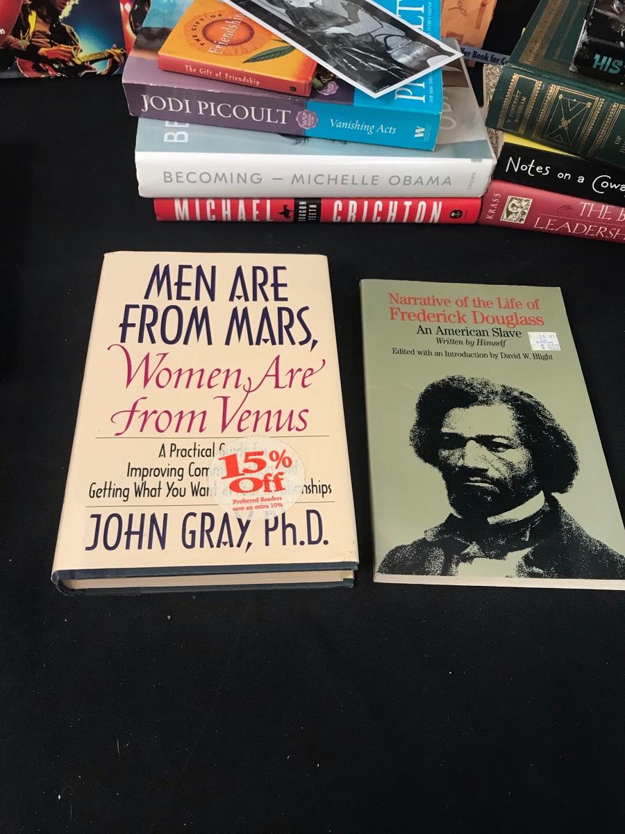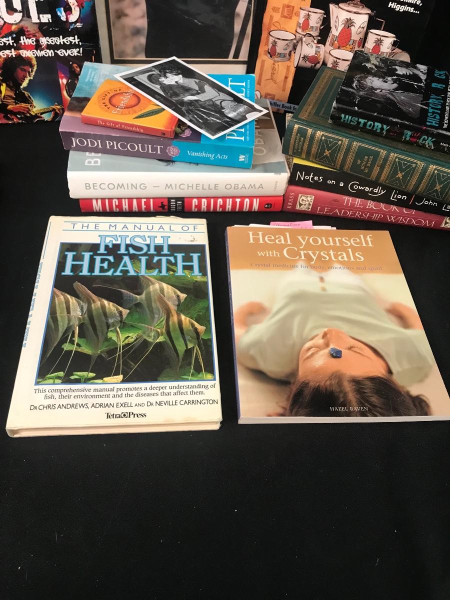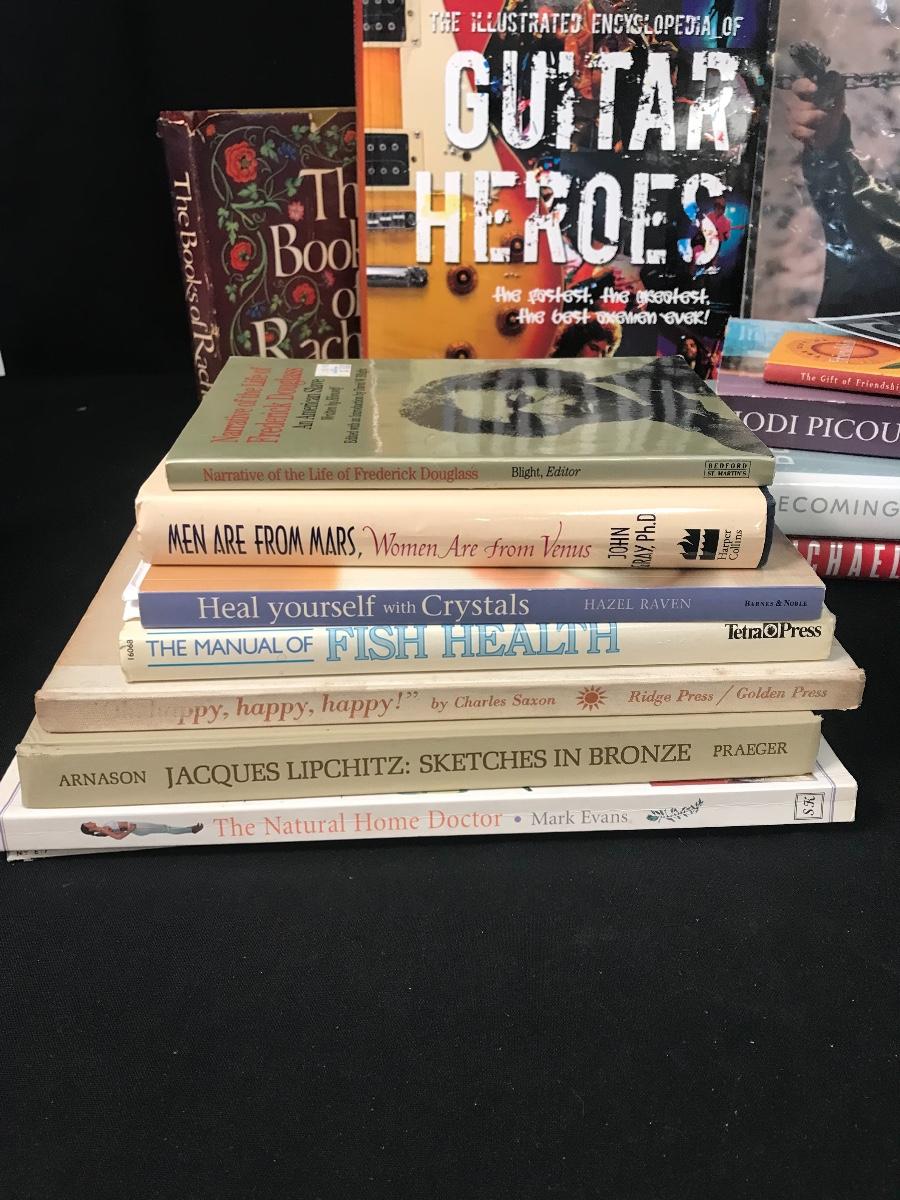 Big Lot Of Books & More. Photo of Malcom McDowell says it is autographed, but signature is barely visible.Please see all pictures as they are the best representation of the items. The pictures show condition, measurements if taken, and what is included in the lot. Due to the large amount that we photograph and the time frame, we are not always able to take measurements. All items unless noted, are pre-owned and have been used. If you purchased furniture, you must bring help. We do not allow one person to carry large furniture out on their own. Bring help, tools and a truck for the safety of our client’s homes, and your personal safety. Company policy. Thank you.