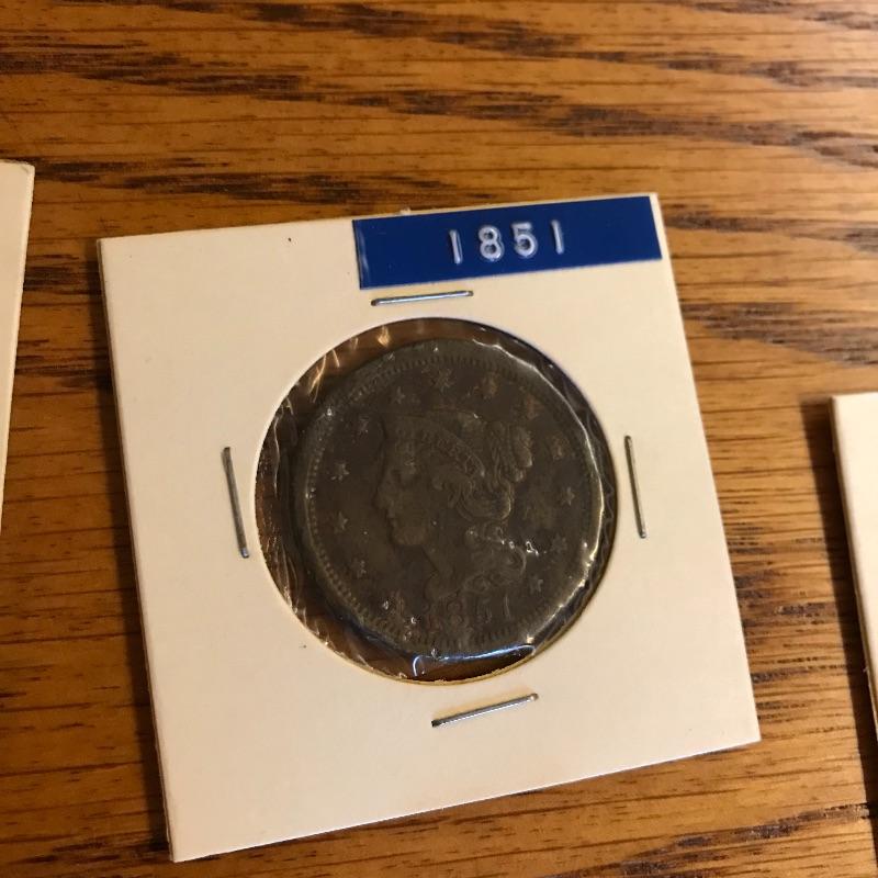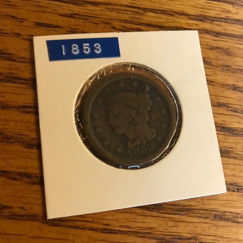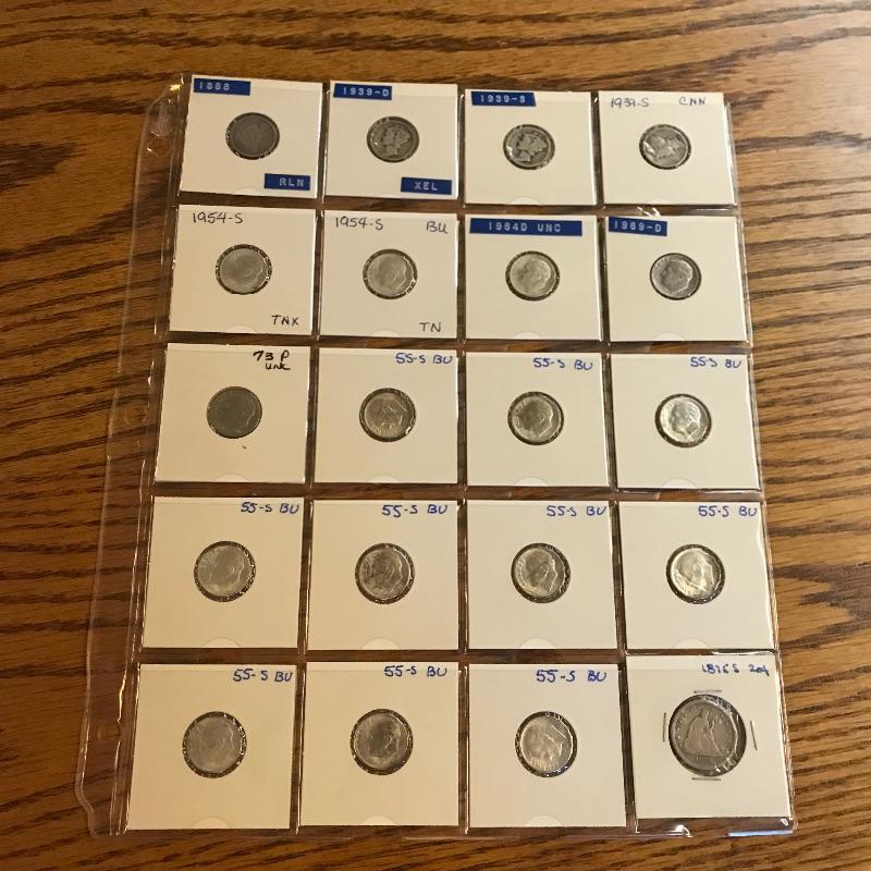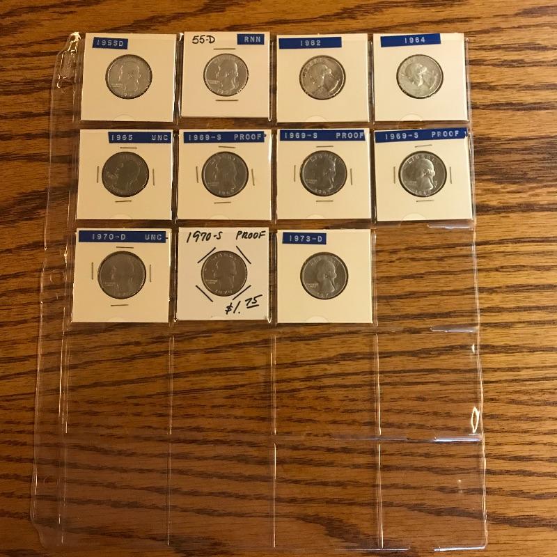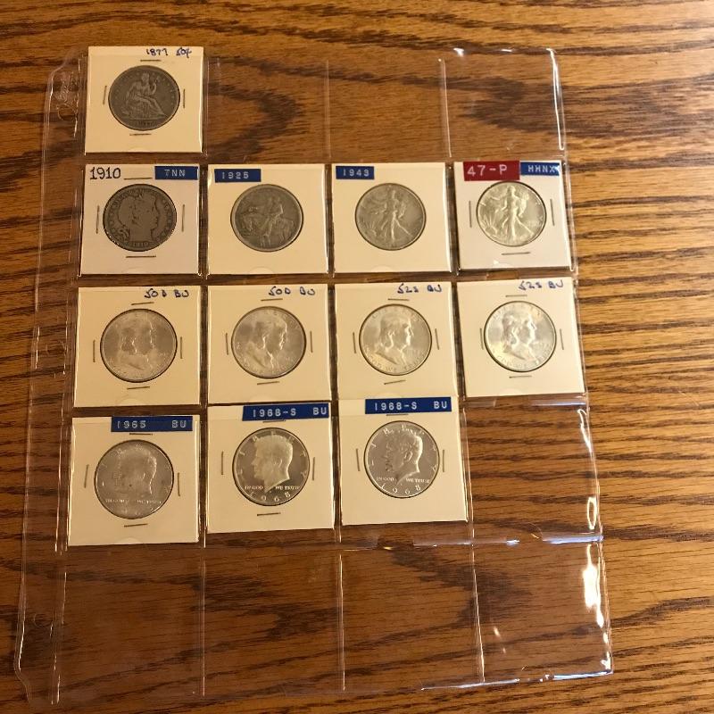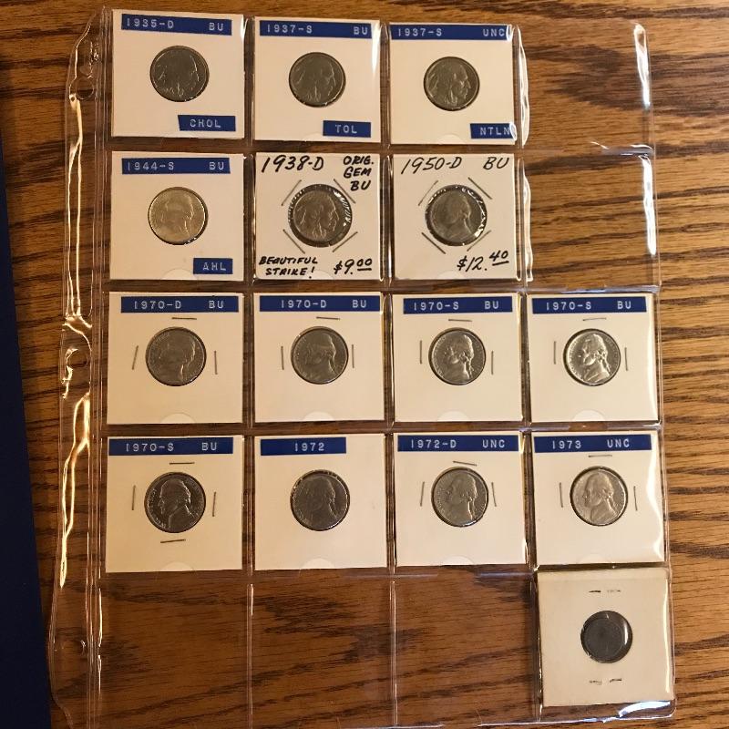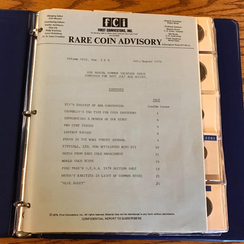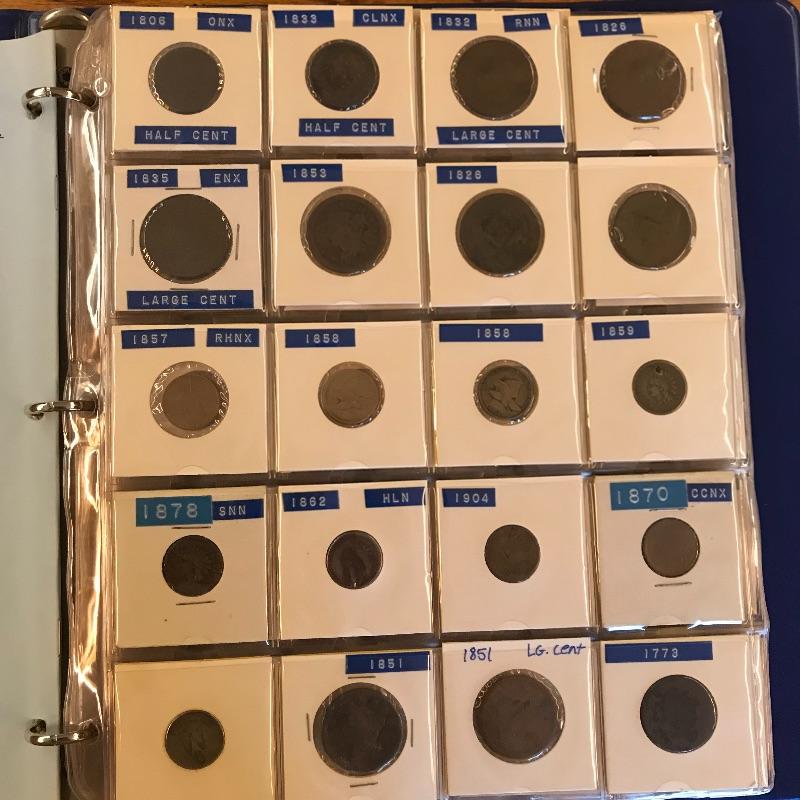 Binder with US coins from early half cents, large cents, small cents, nickels, dimes, quarters, halves and dollars.